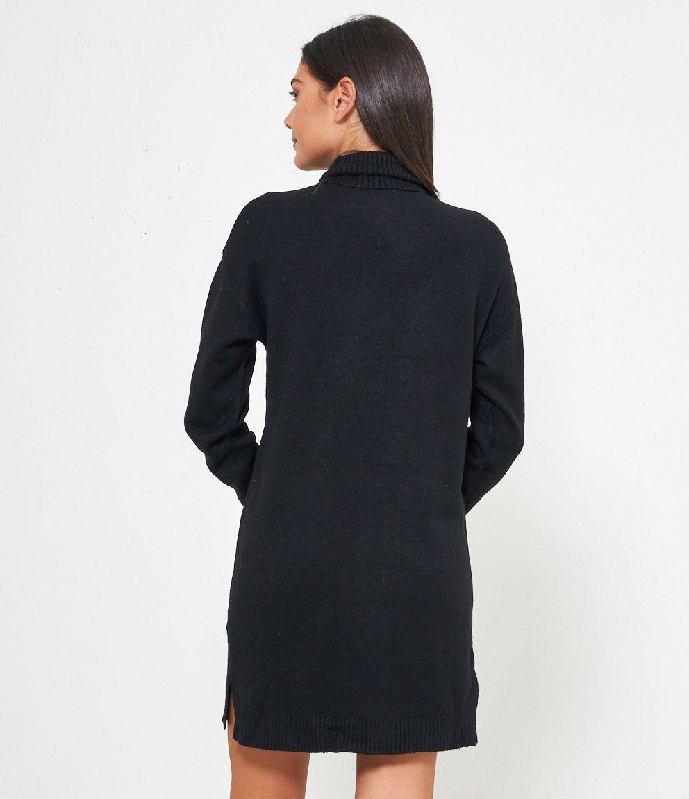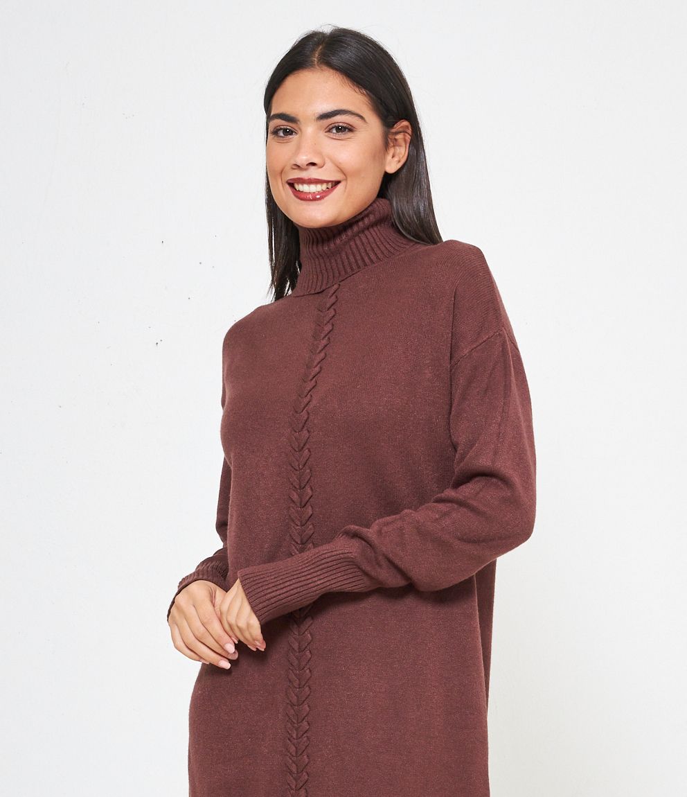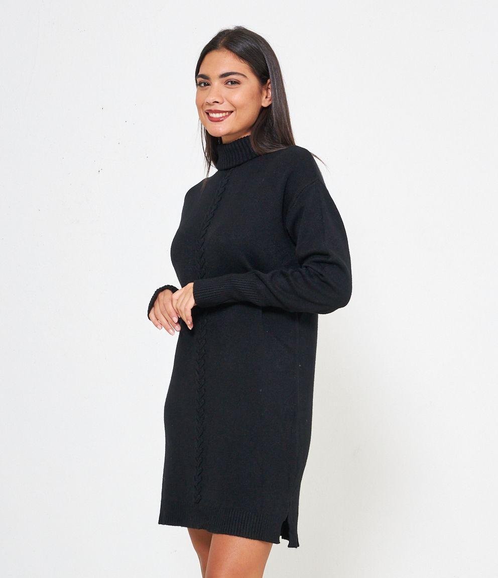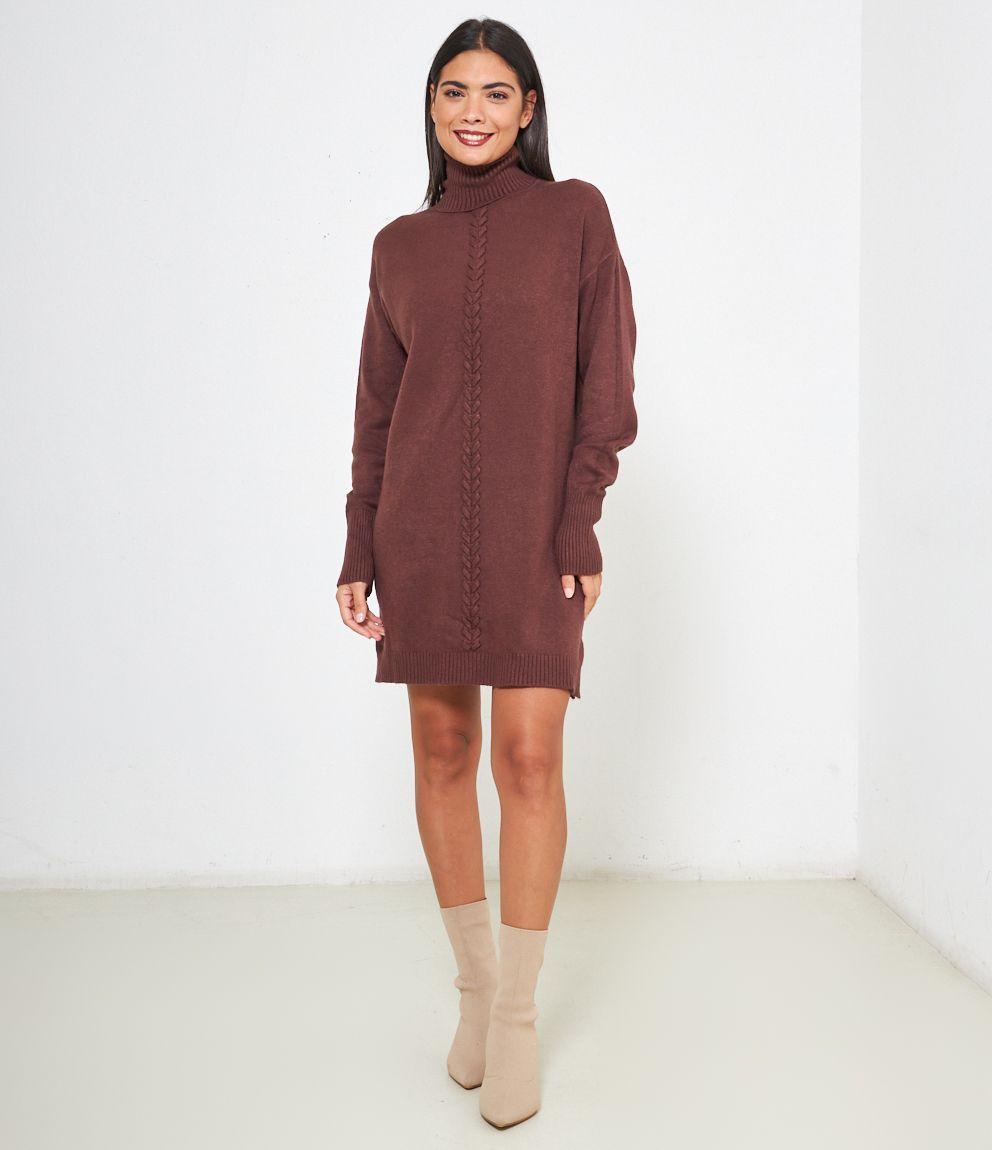 Abito in maglia modello mini, trama a rilievo frontale e bordi a costine.