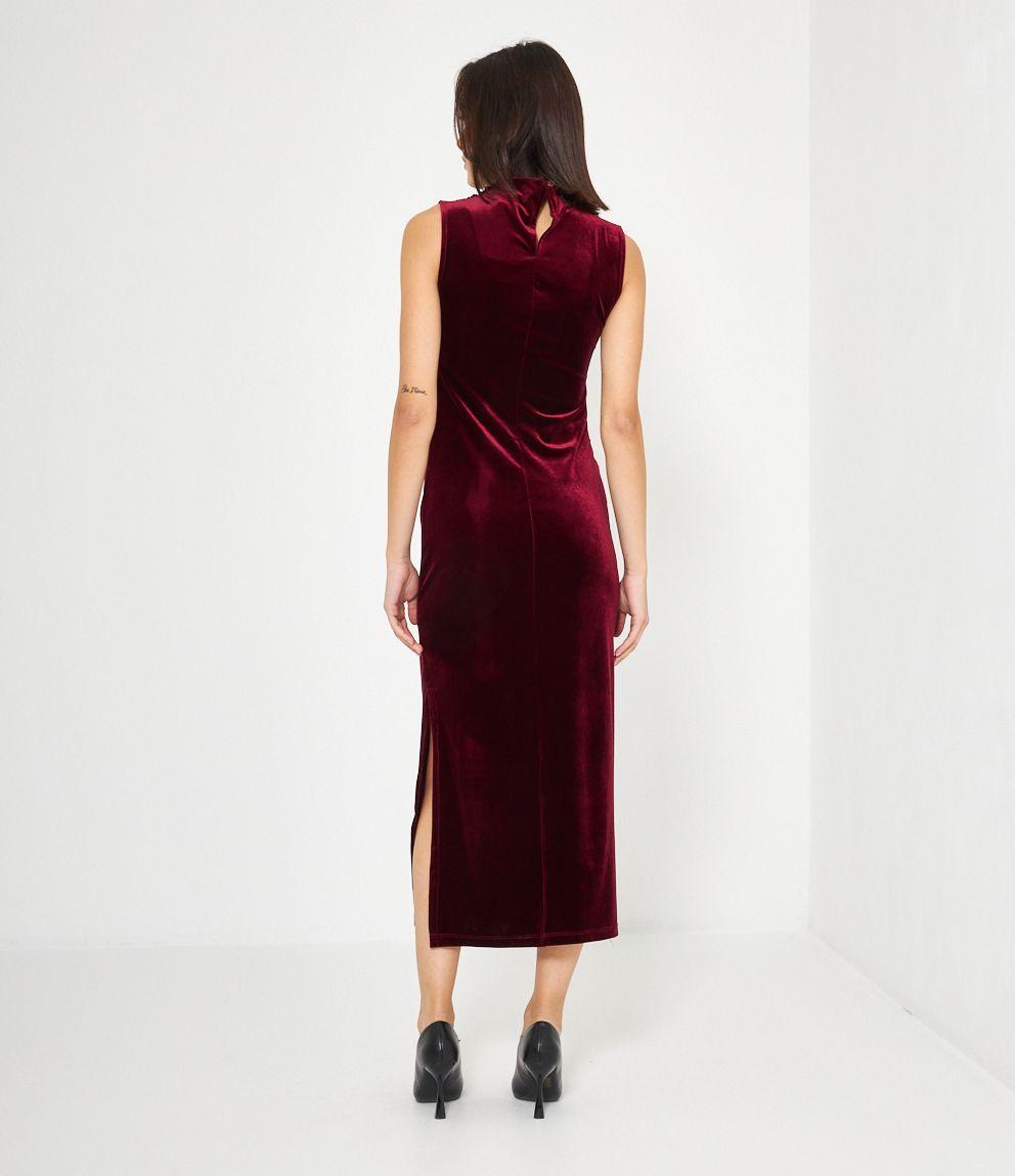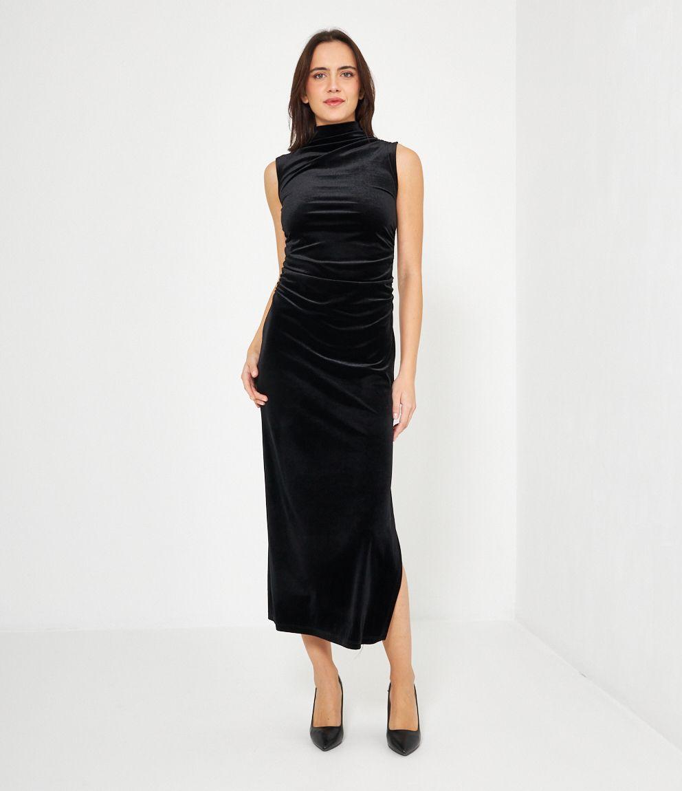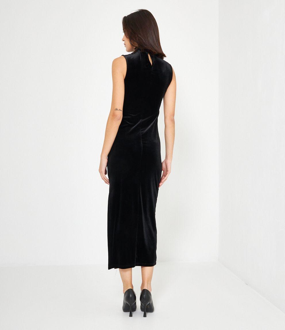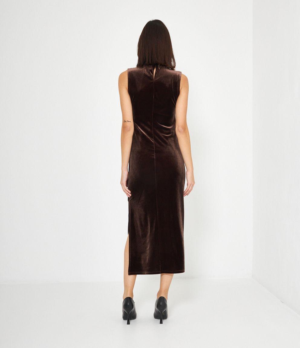 Abito midi in ciniglia a mezzo collo con spacco laterale.