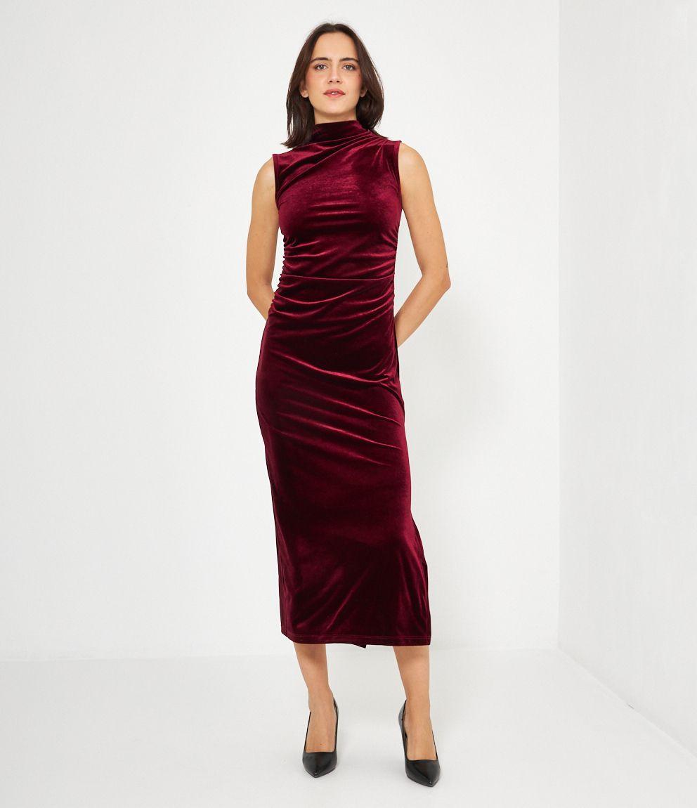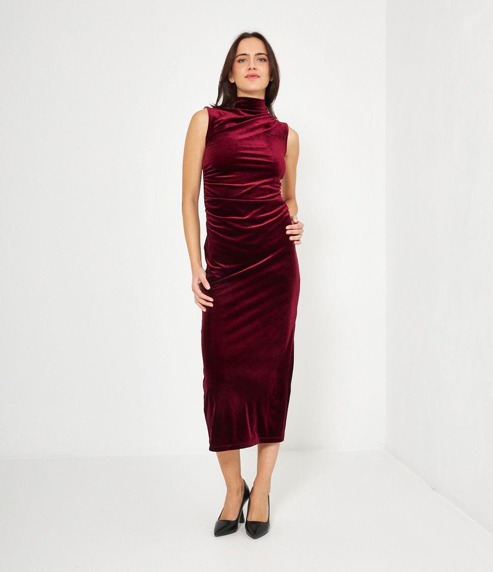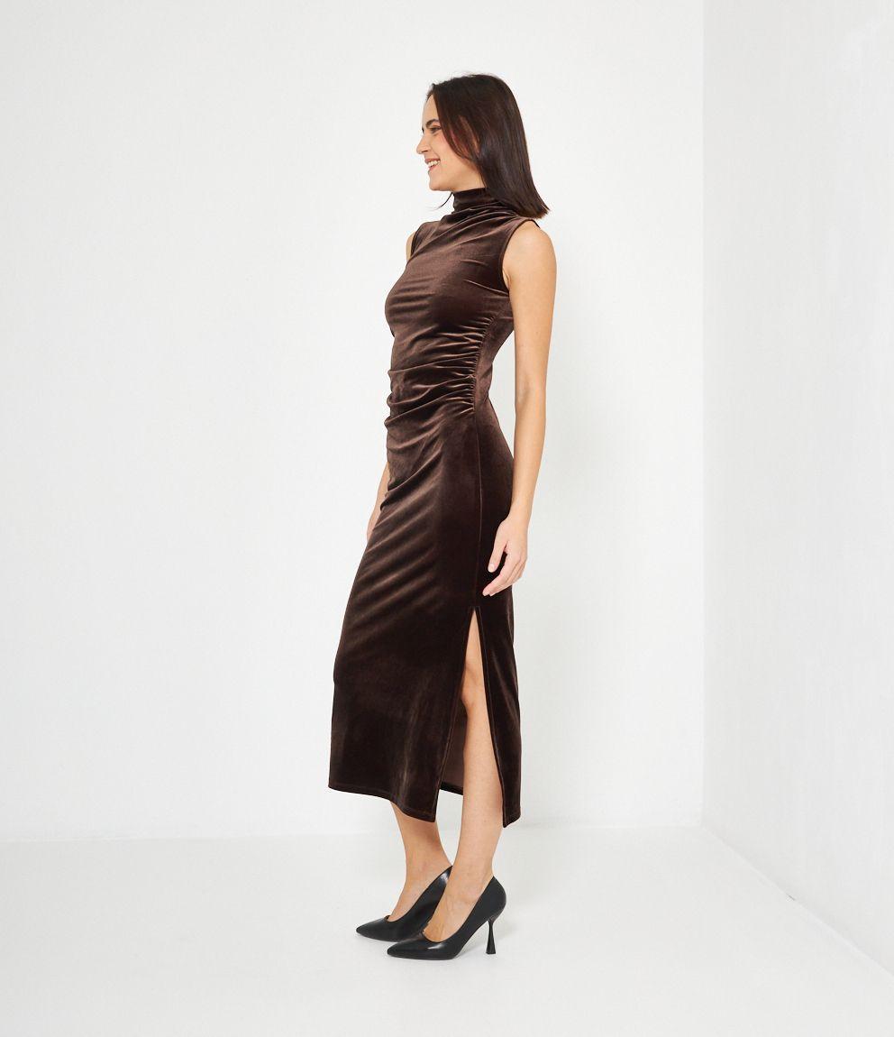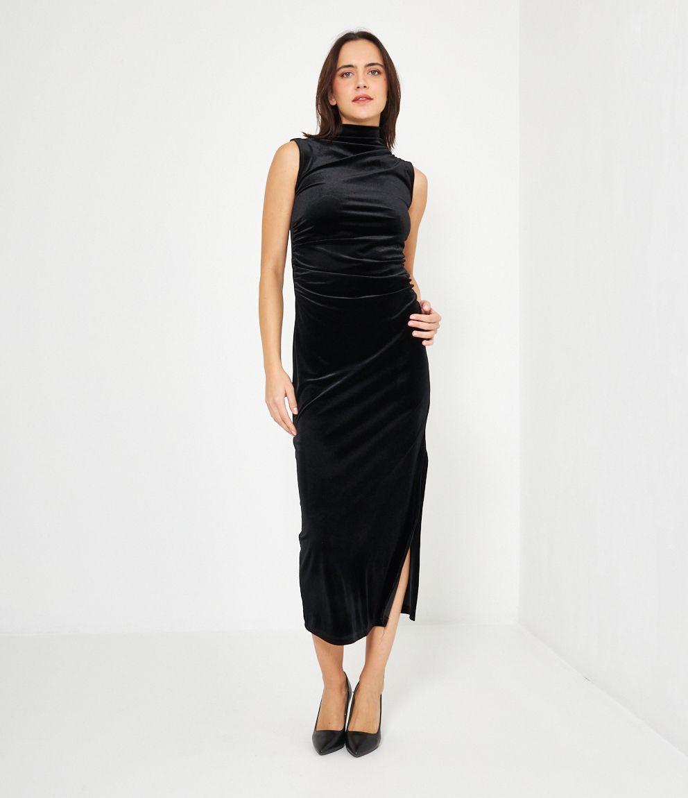 Abito midi in ciniglia a mezzo collo con spacco laterale.