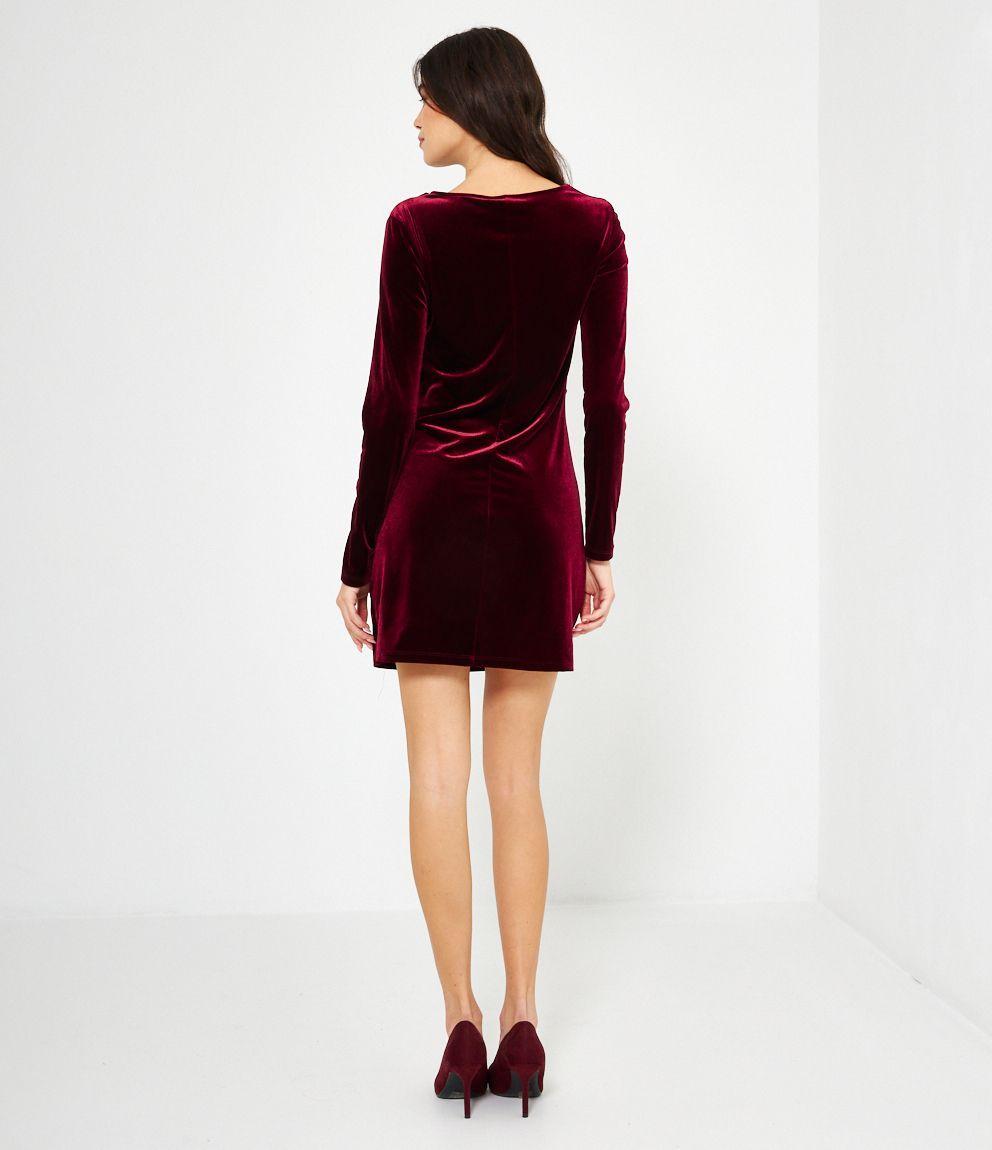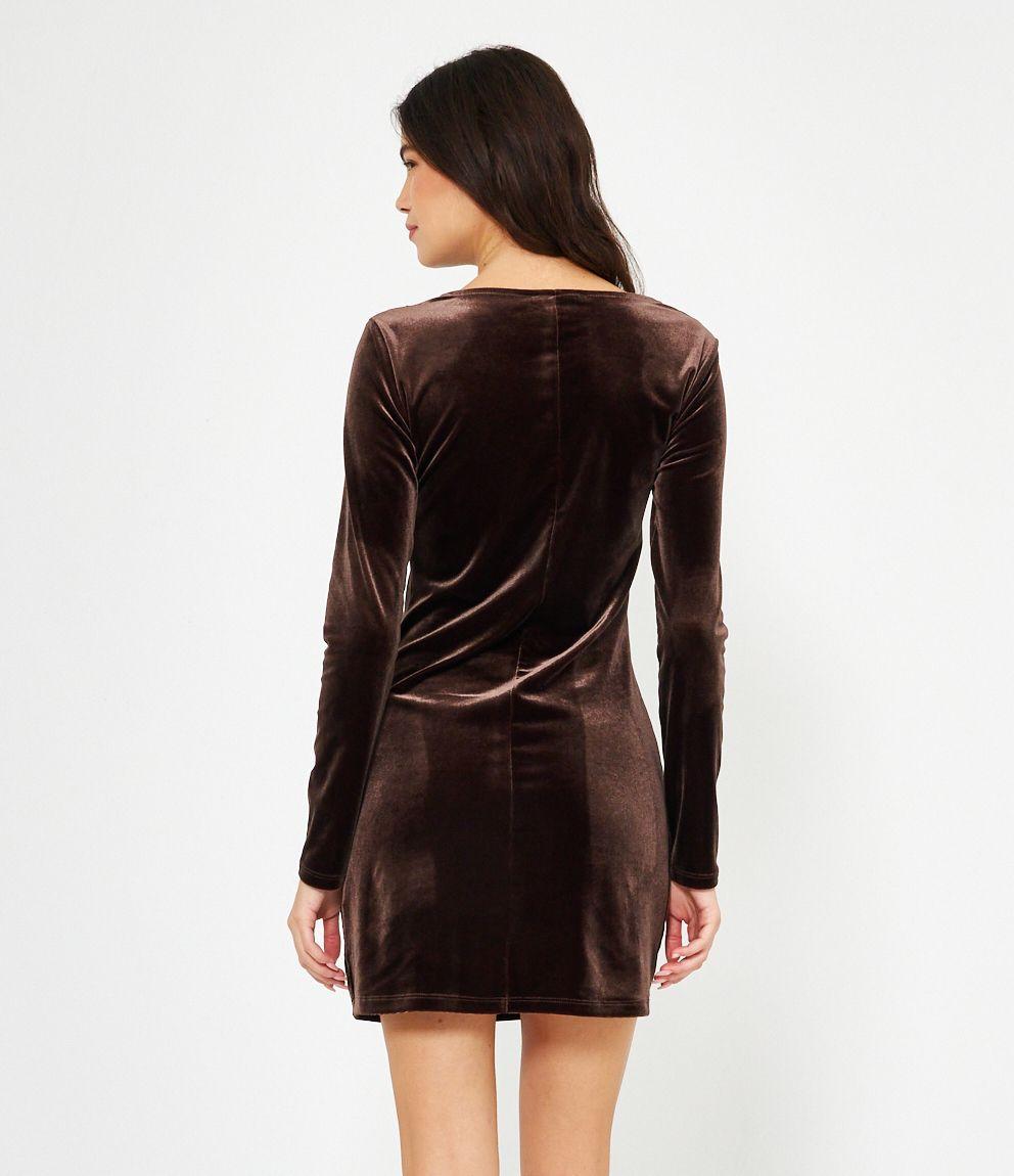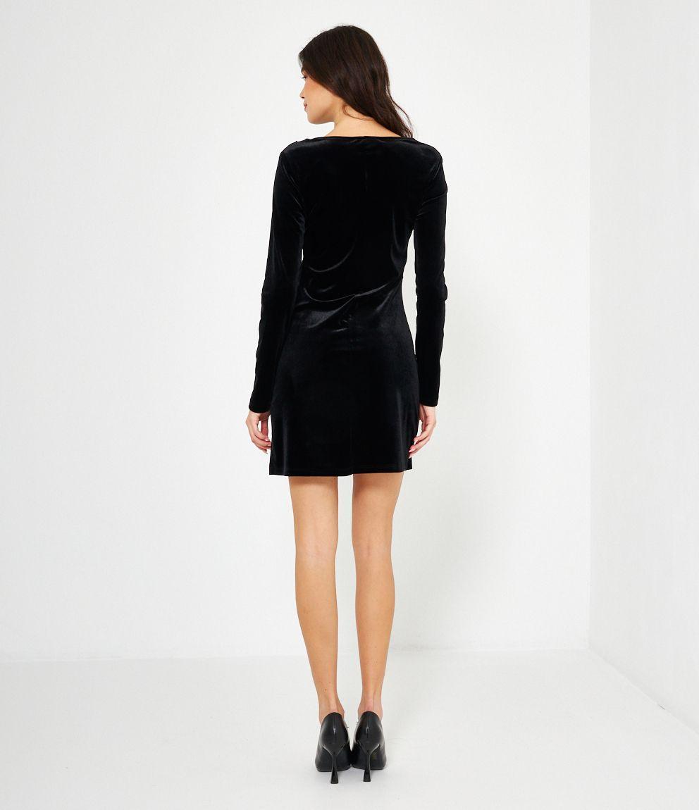 Abito modello mini in ciniglia con scollo asimmetrico.
