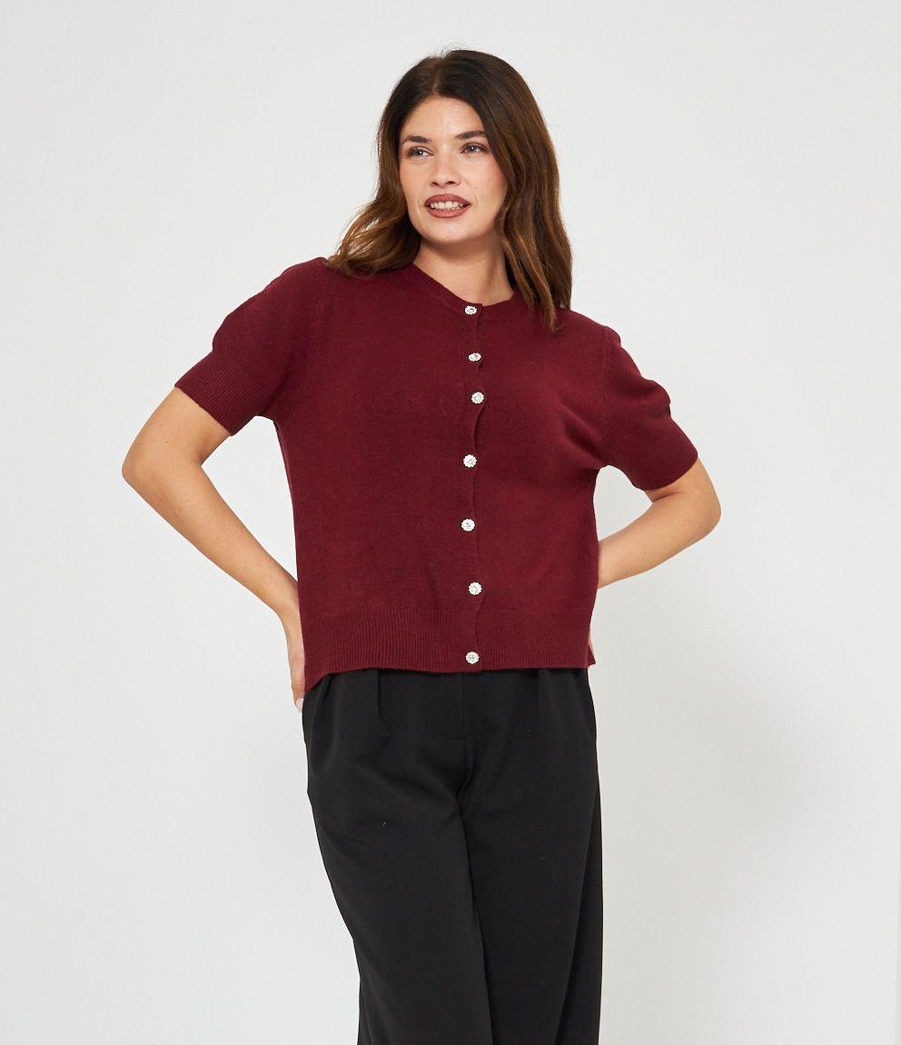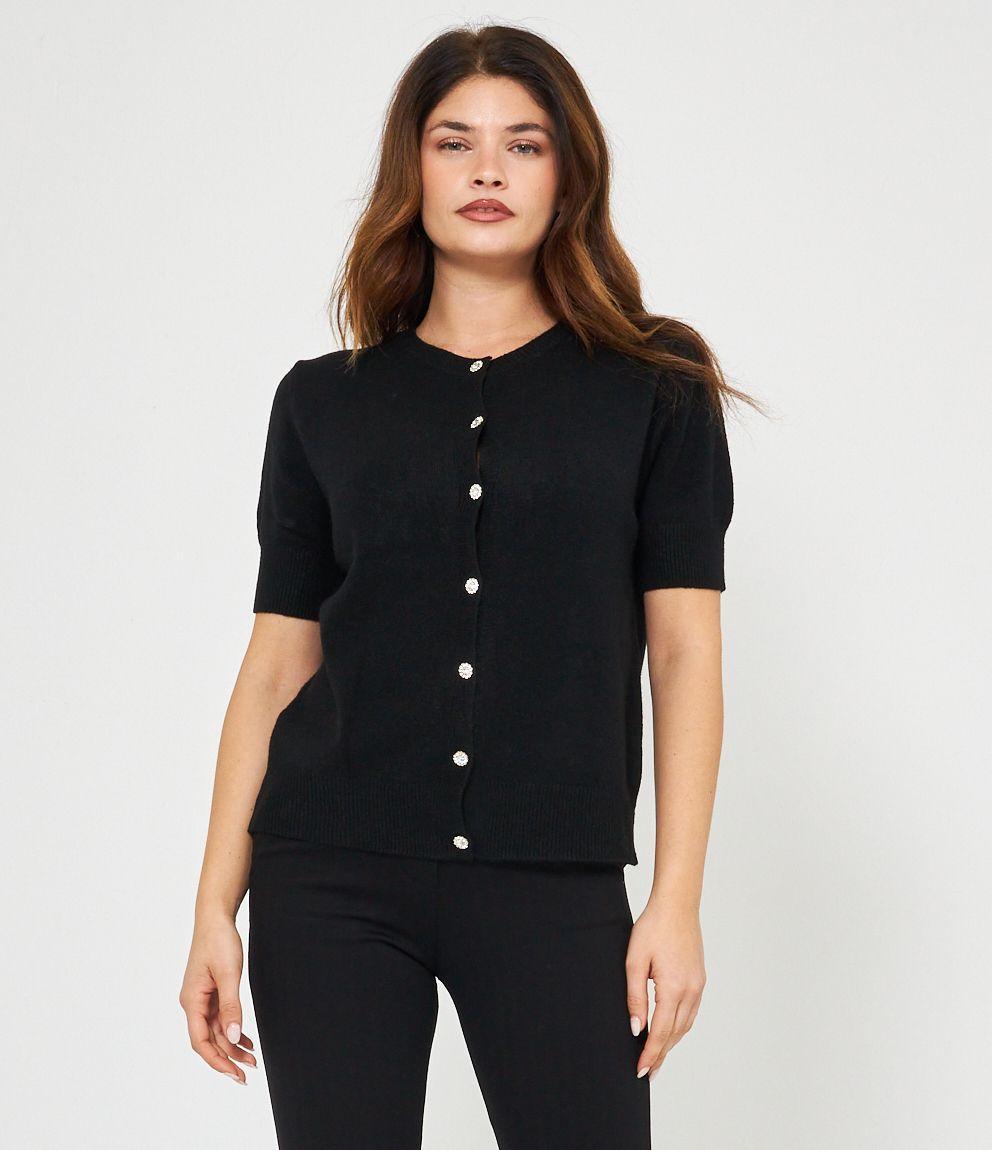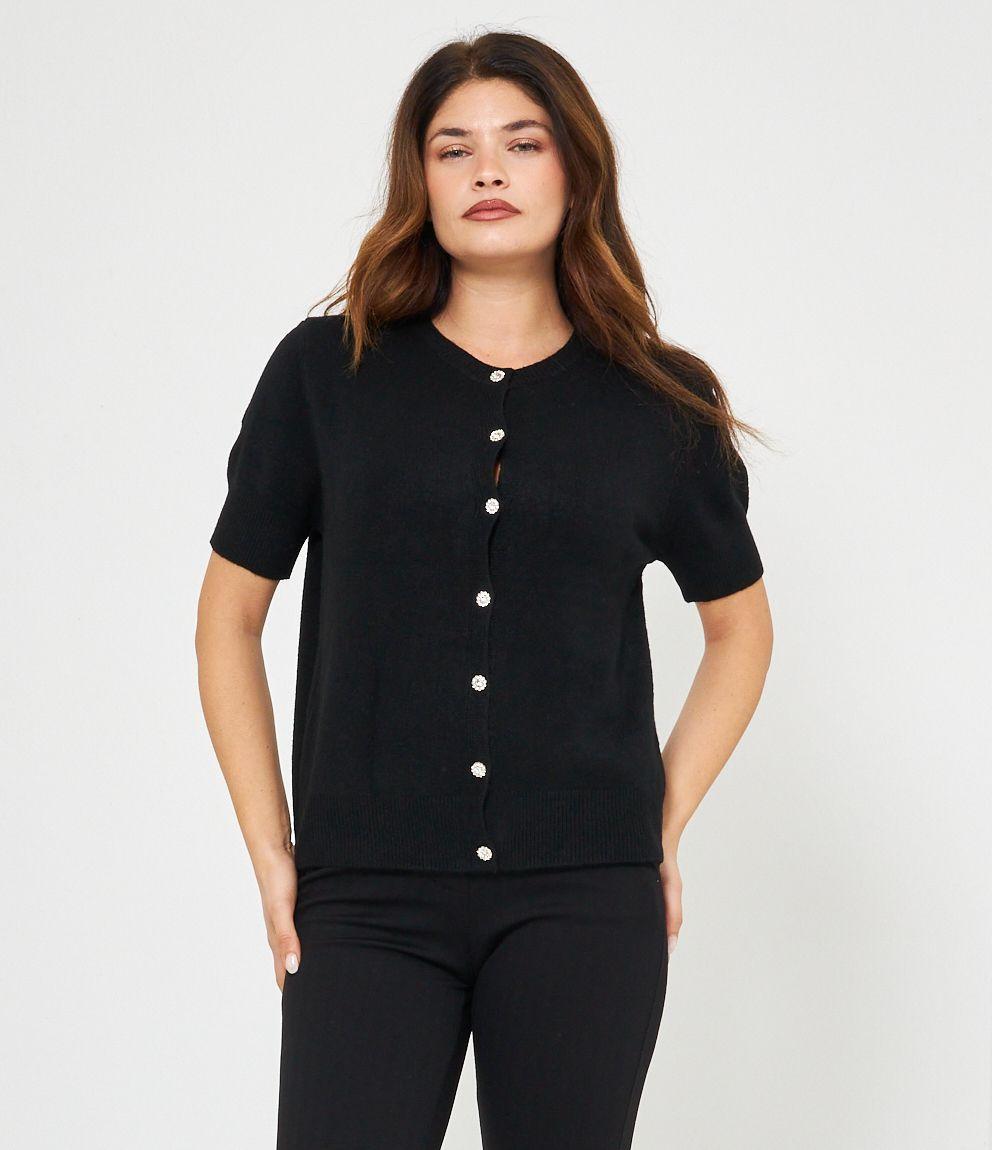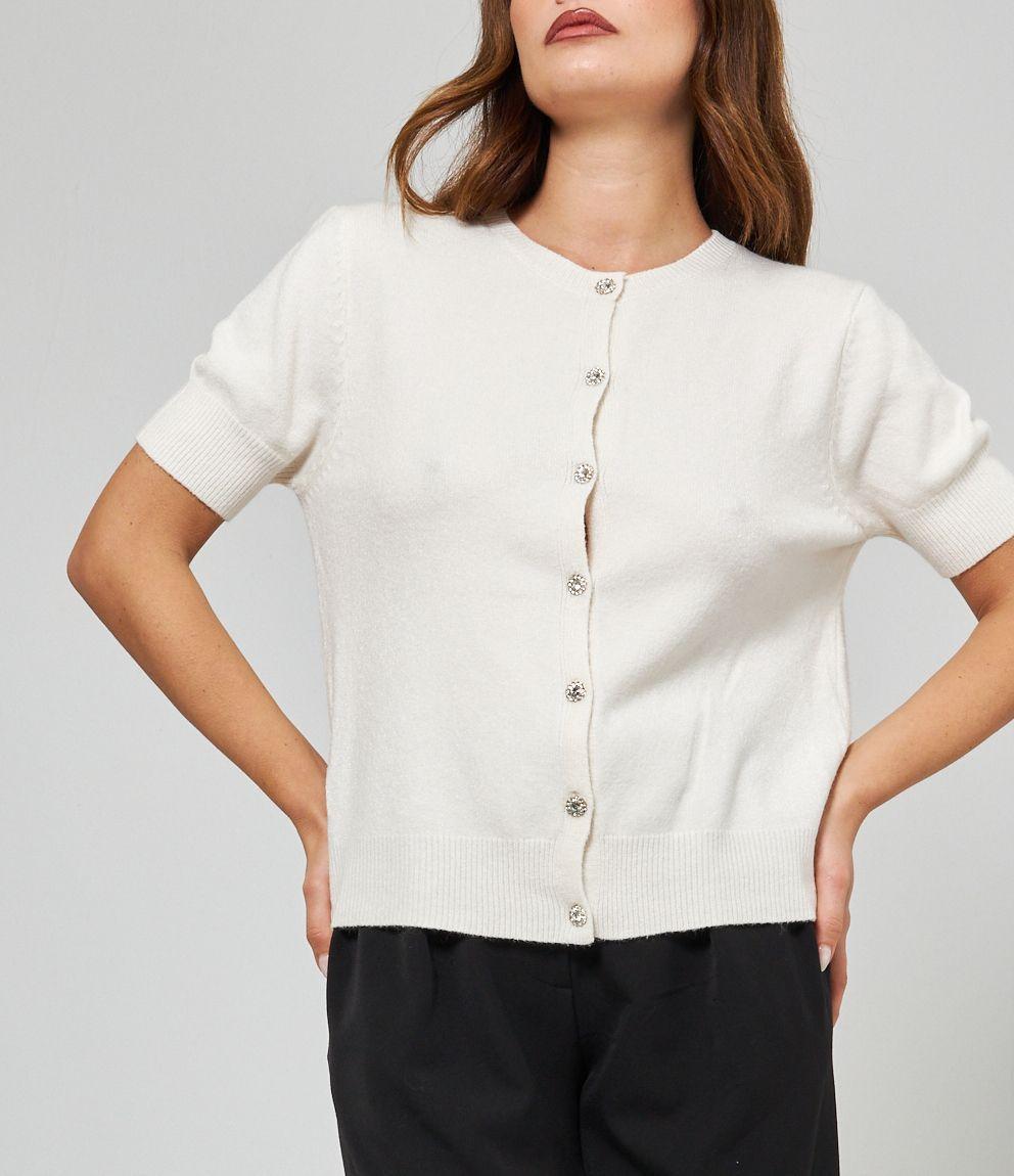 Cardigan in viscosa modello comfy con bottoni gioiello a girocollo.