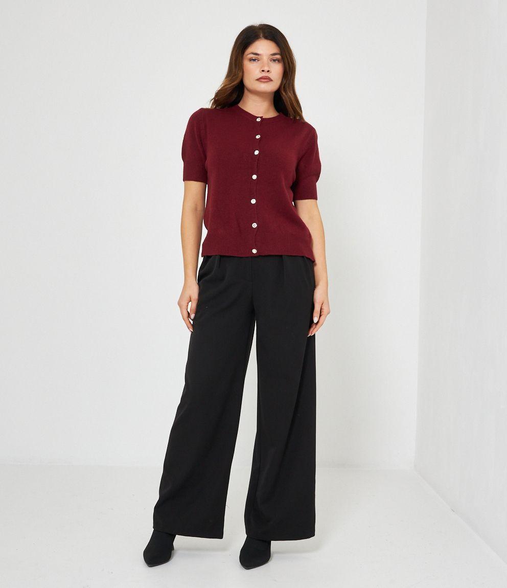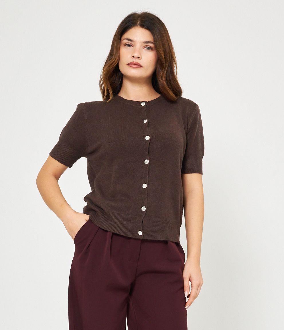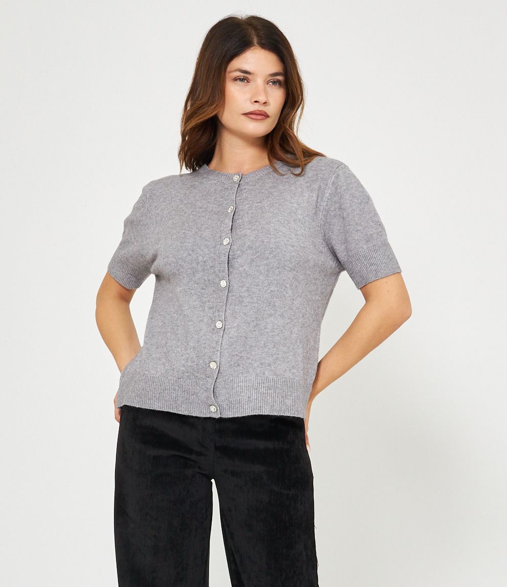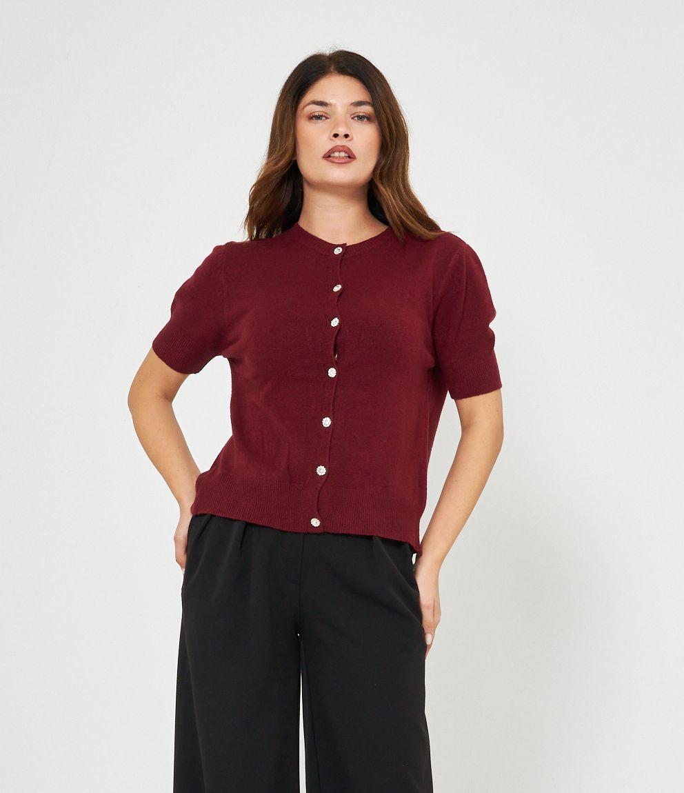 Cardigan in viscosa modello comfy con bottoni gioiello a girocollo.