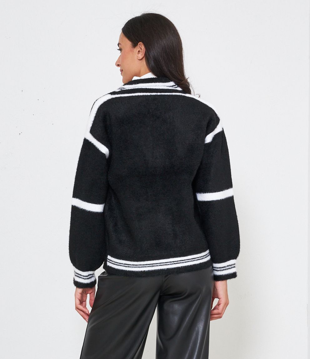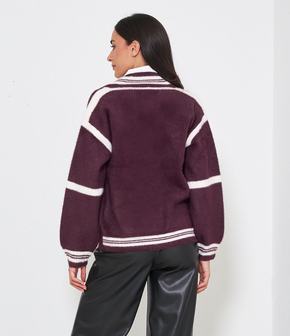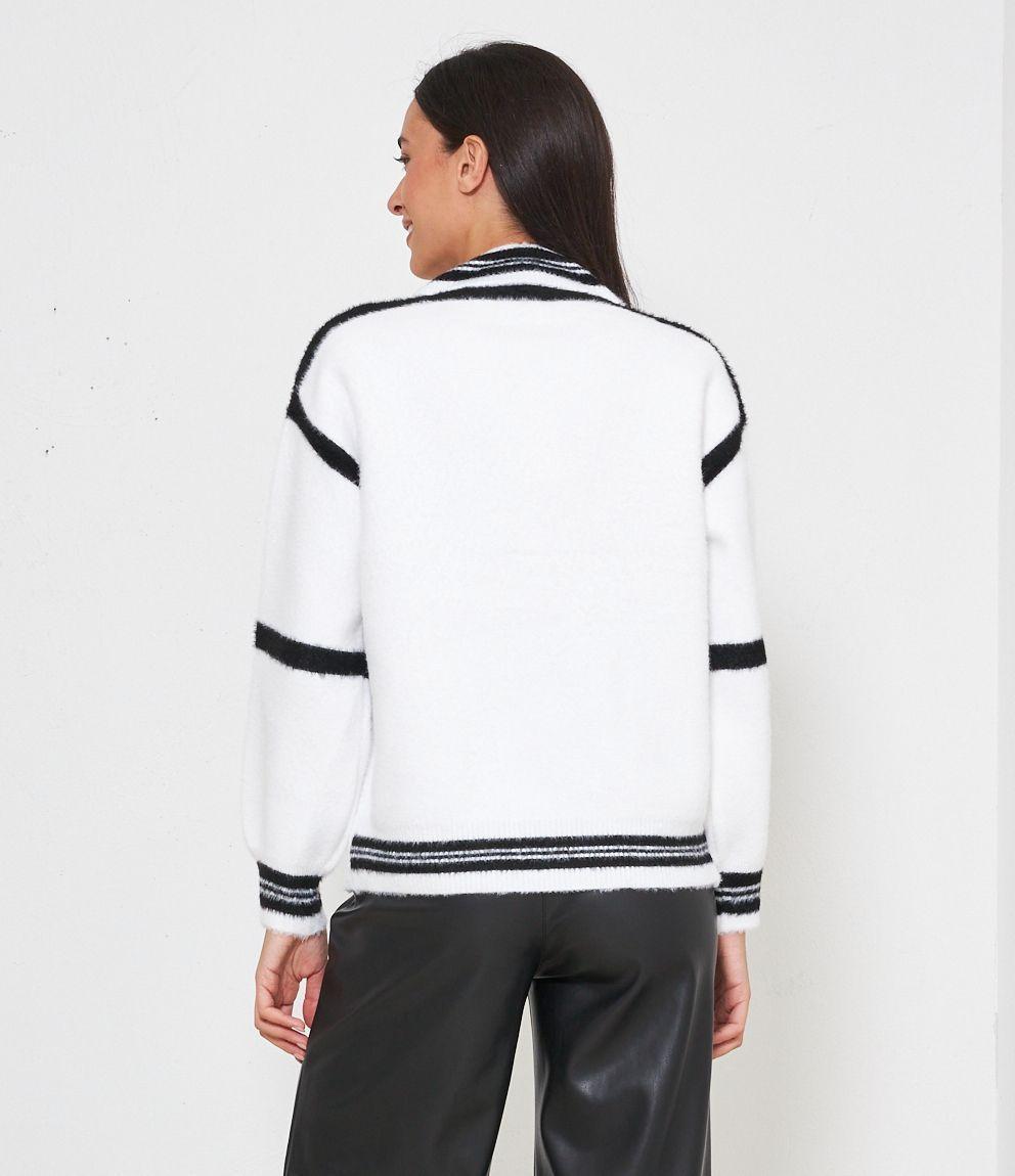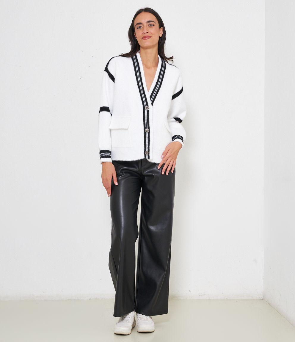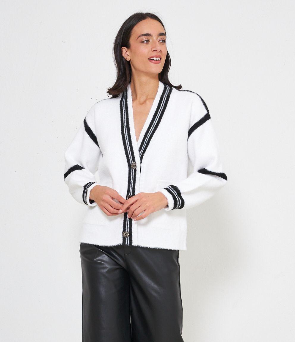 Cardigan modello over con scollo a V e bottoni gioiello. Tasche con patta.