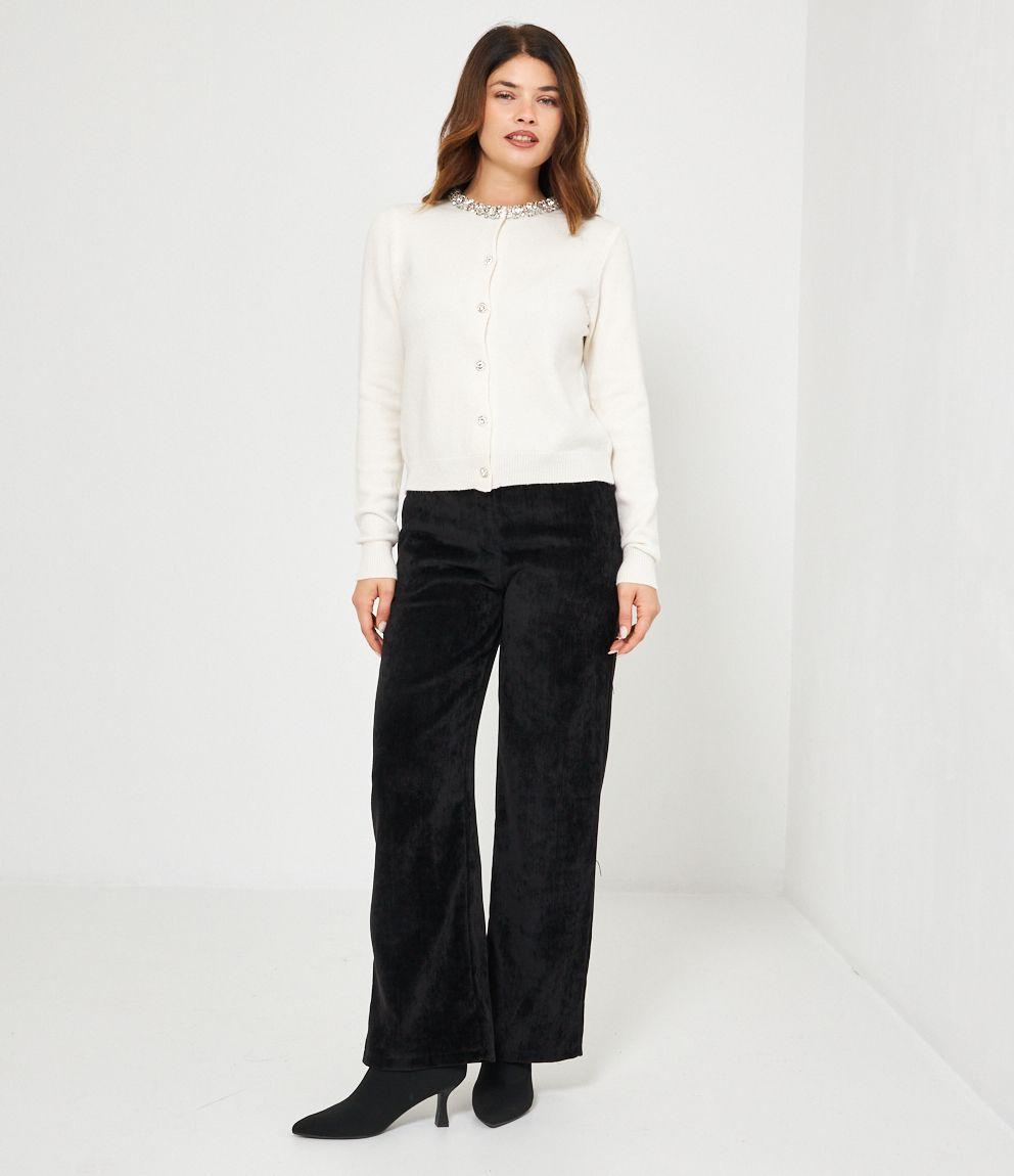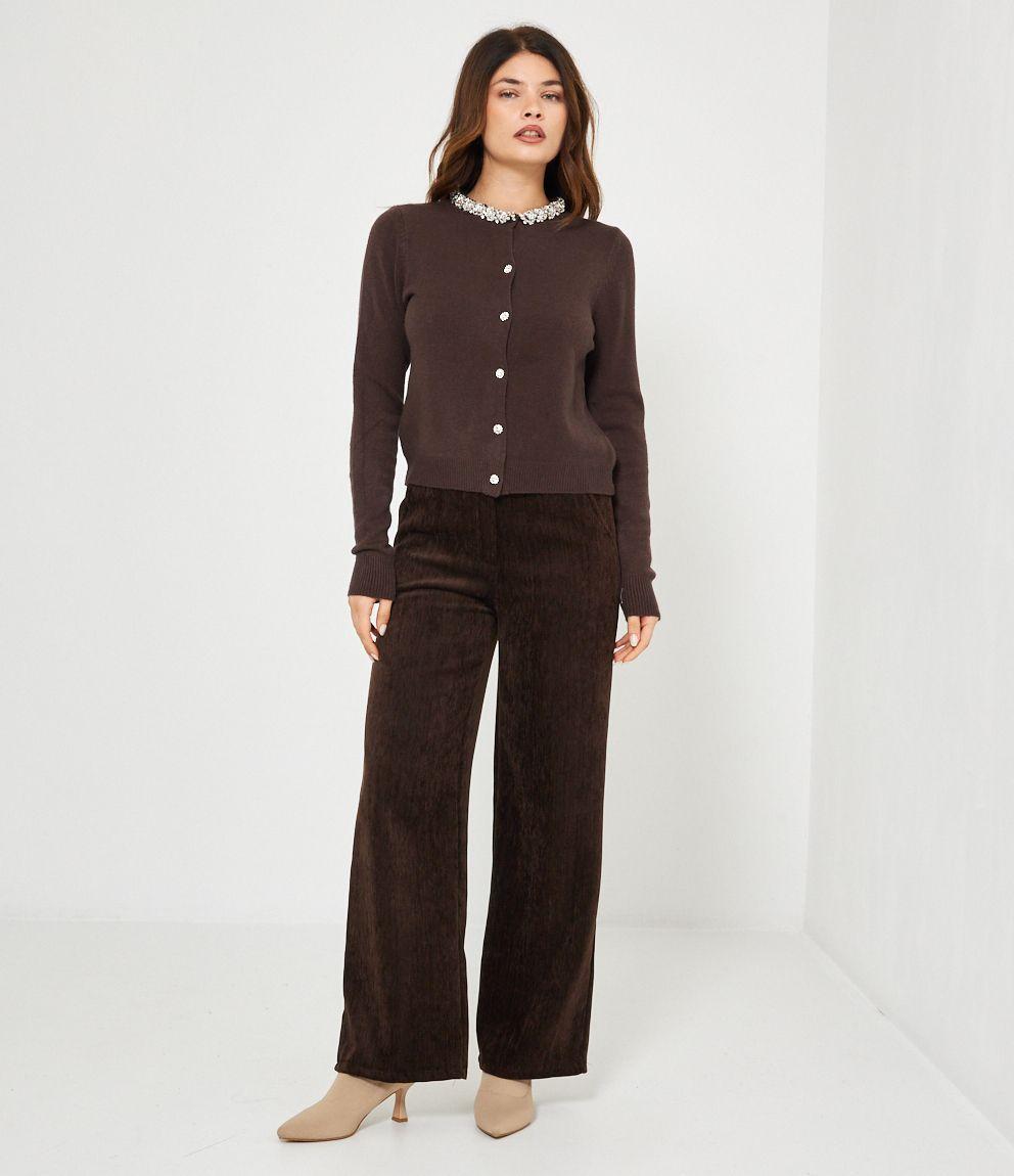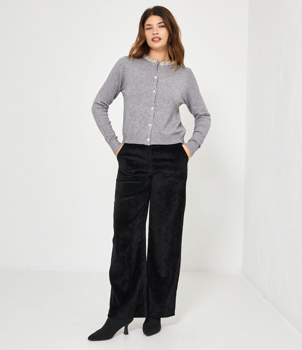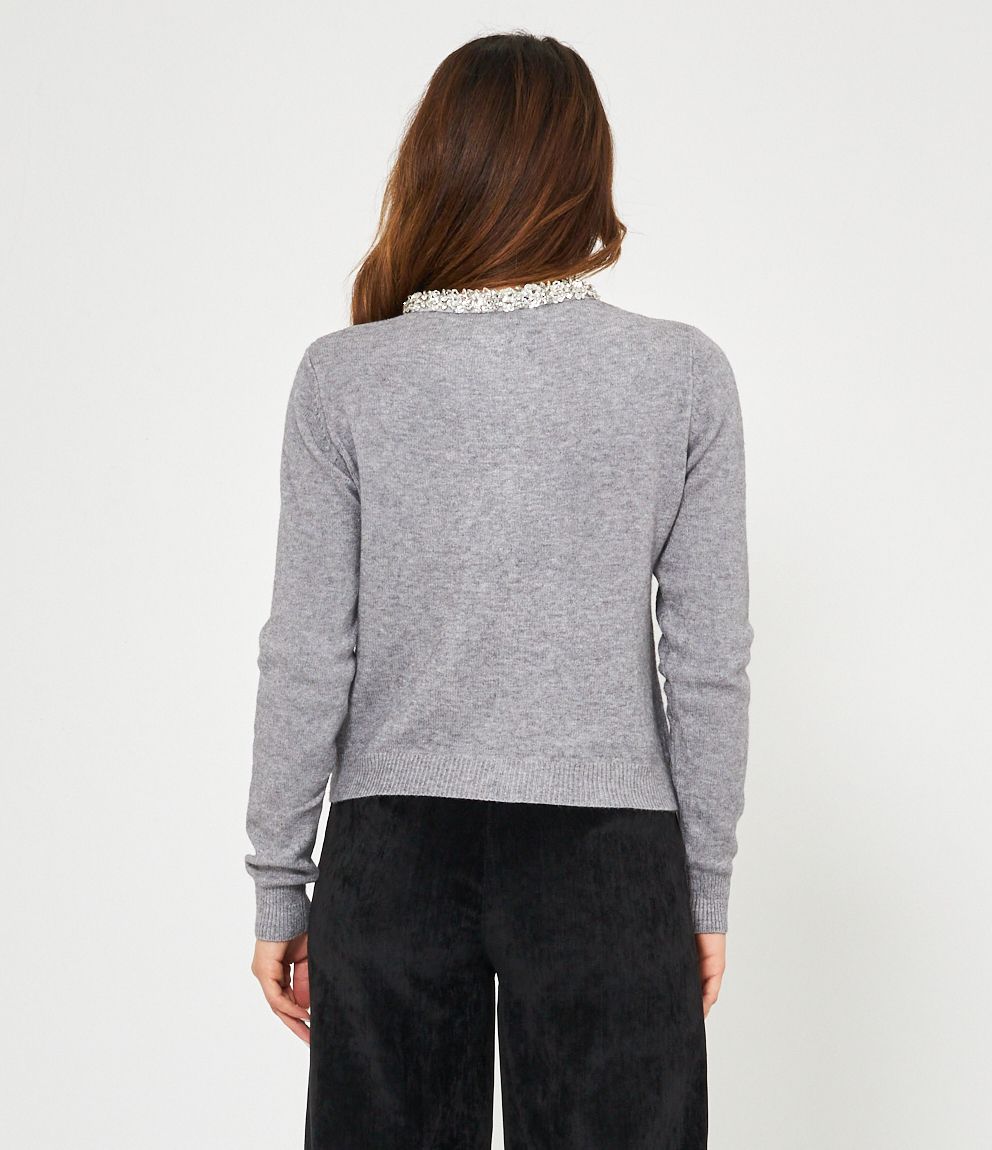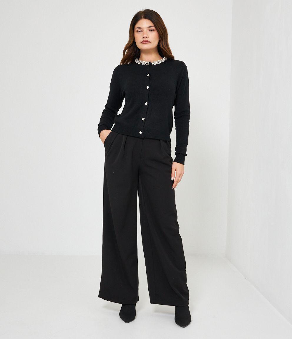 Cardigan con scollo di strass e bottoni a scatto gioiello.