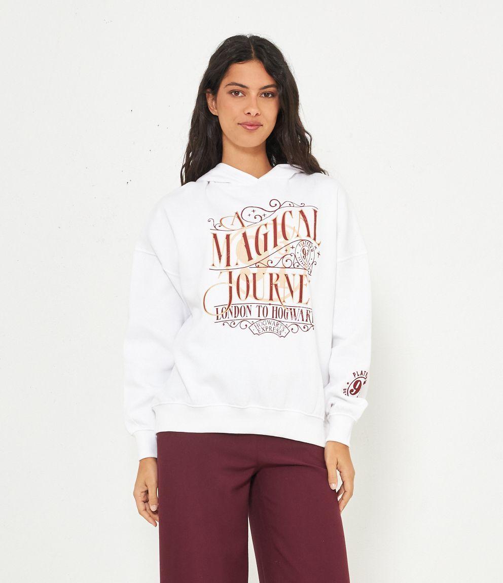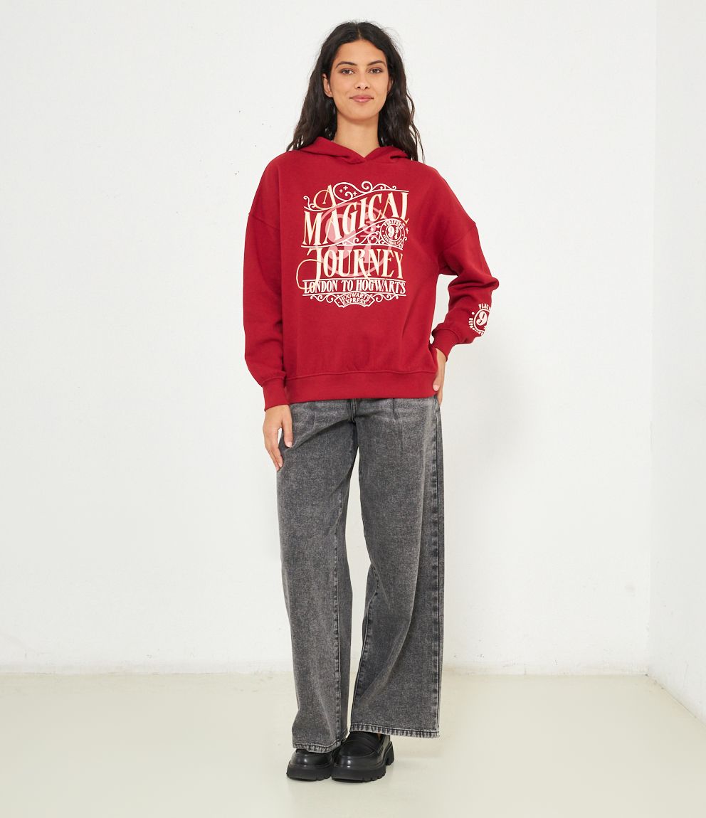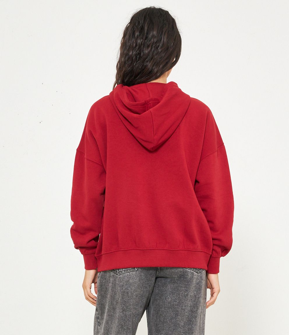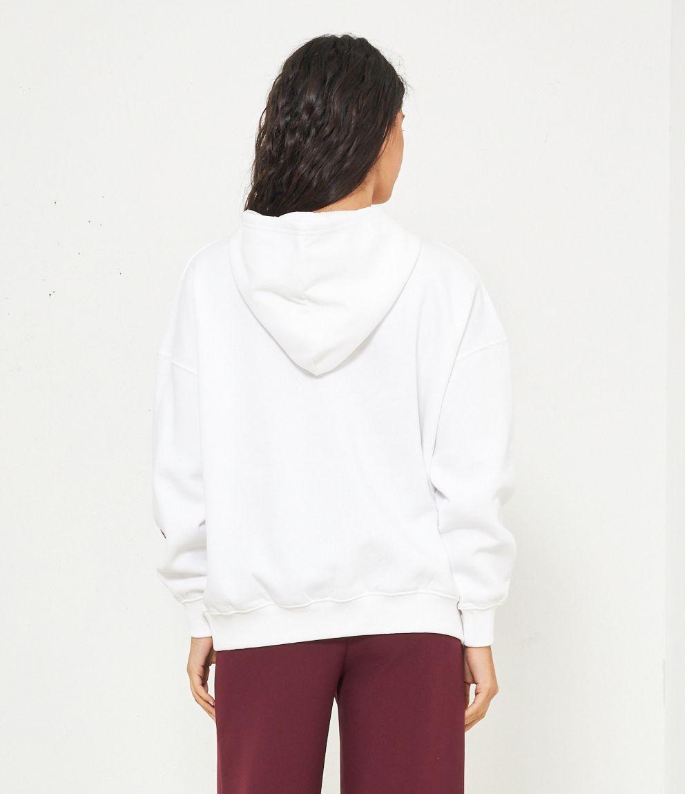Felpa modello over con cappuccio e stampa grafica frontale.