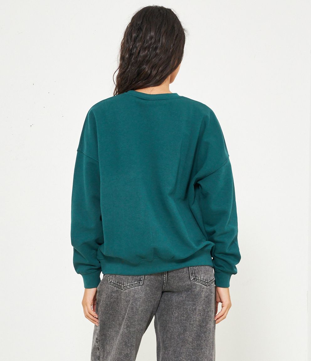 Felpa modello over con stampa grafica frontale e bordi a costine.