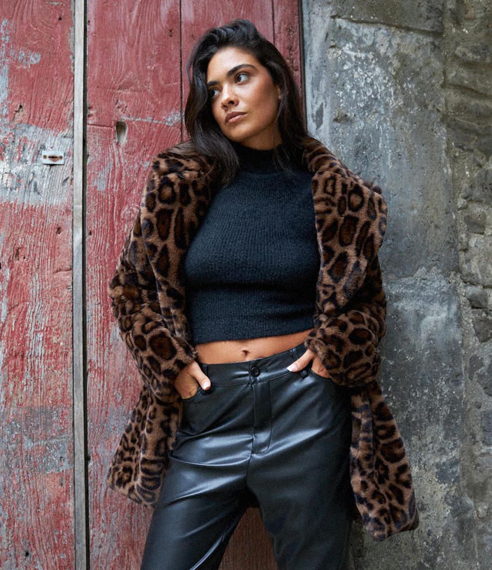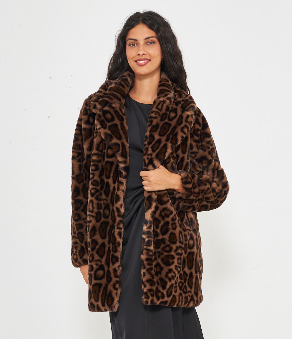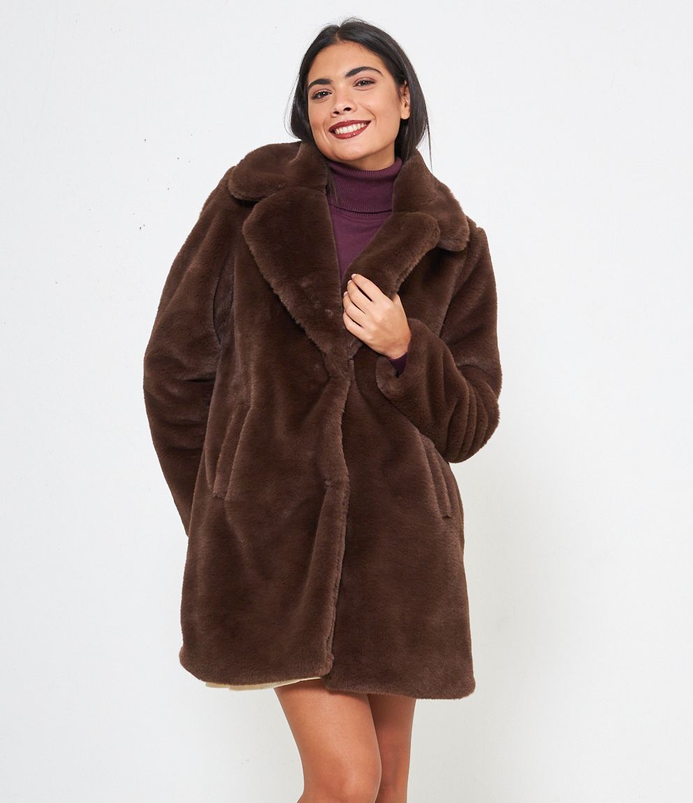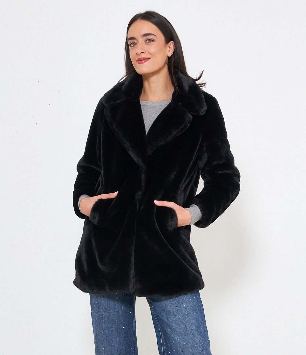 Pelliccia modello midi, vestibilità regular con collo revers.
