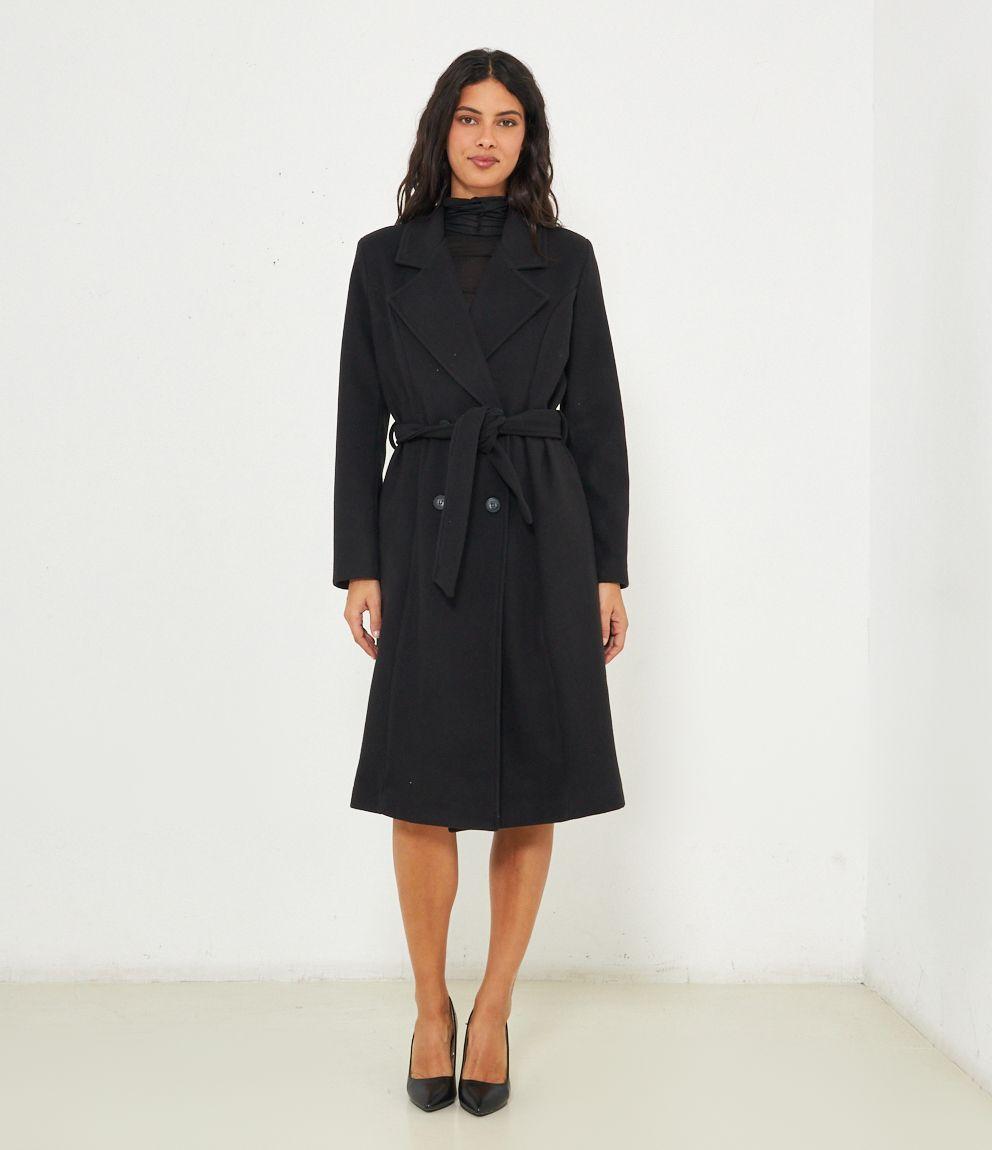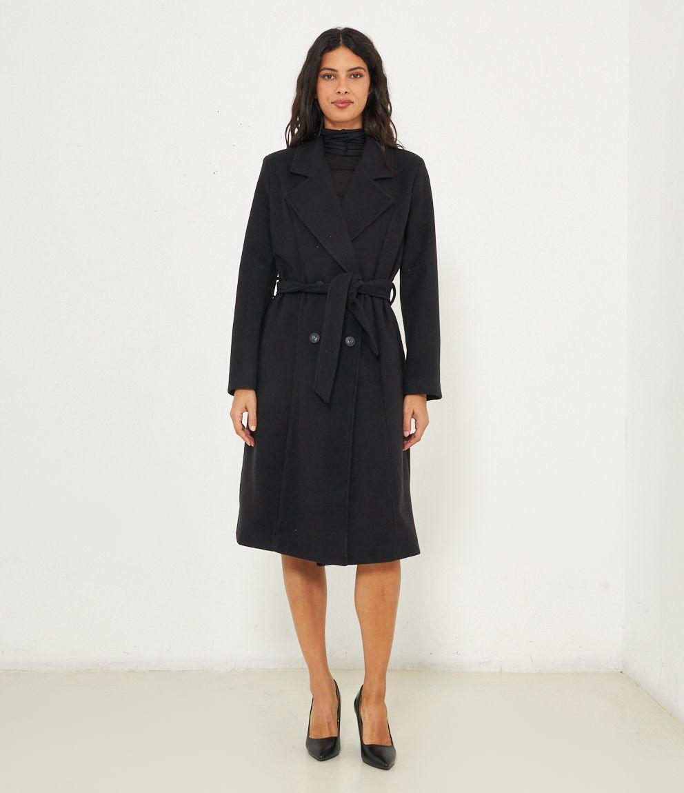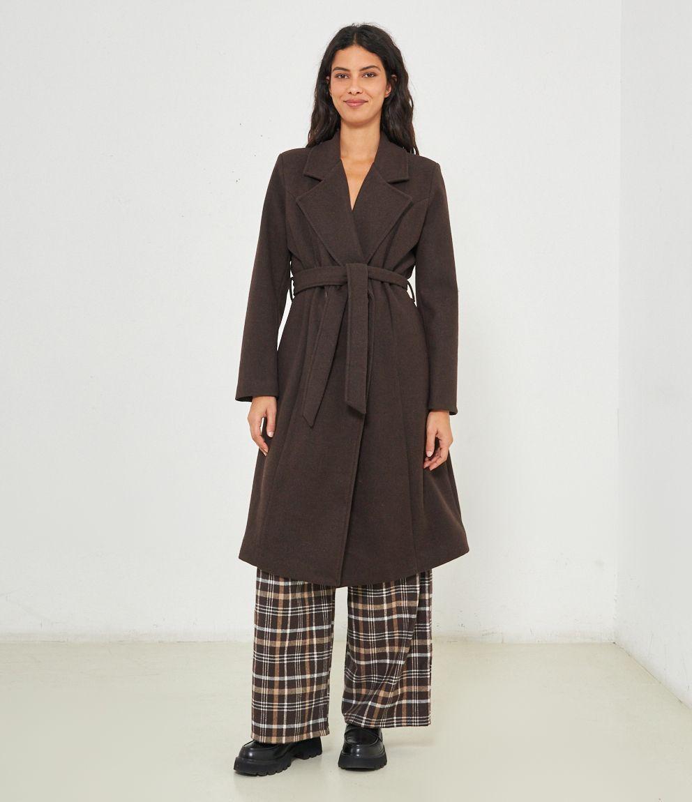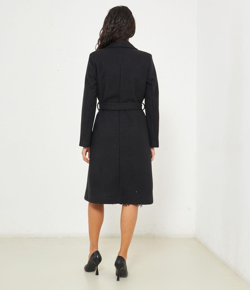 Cappotto midi con quattro bottoni, collo revers e cintura in vita.