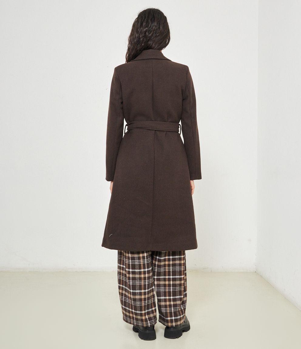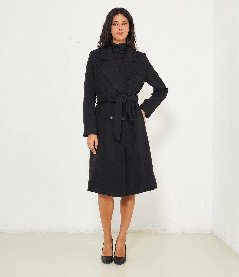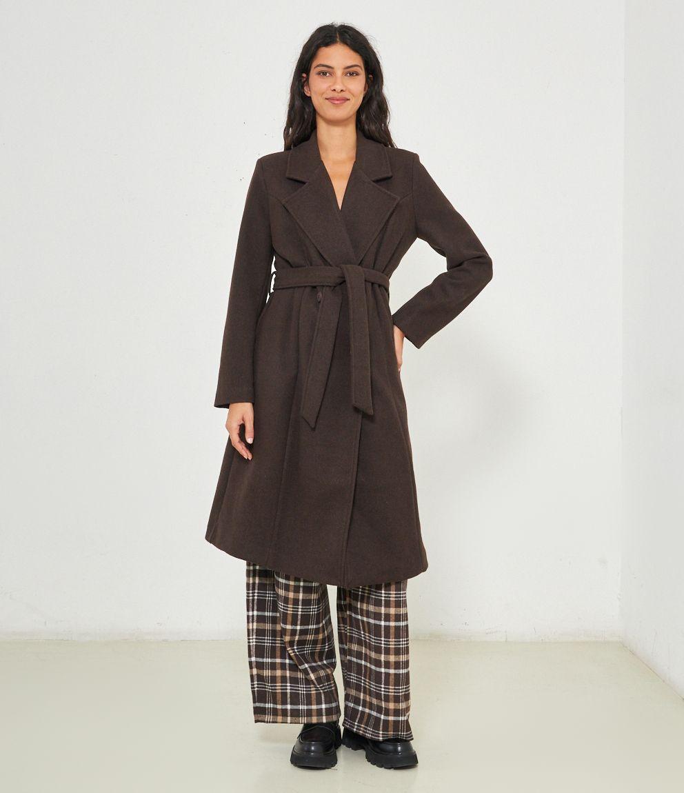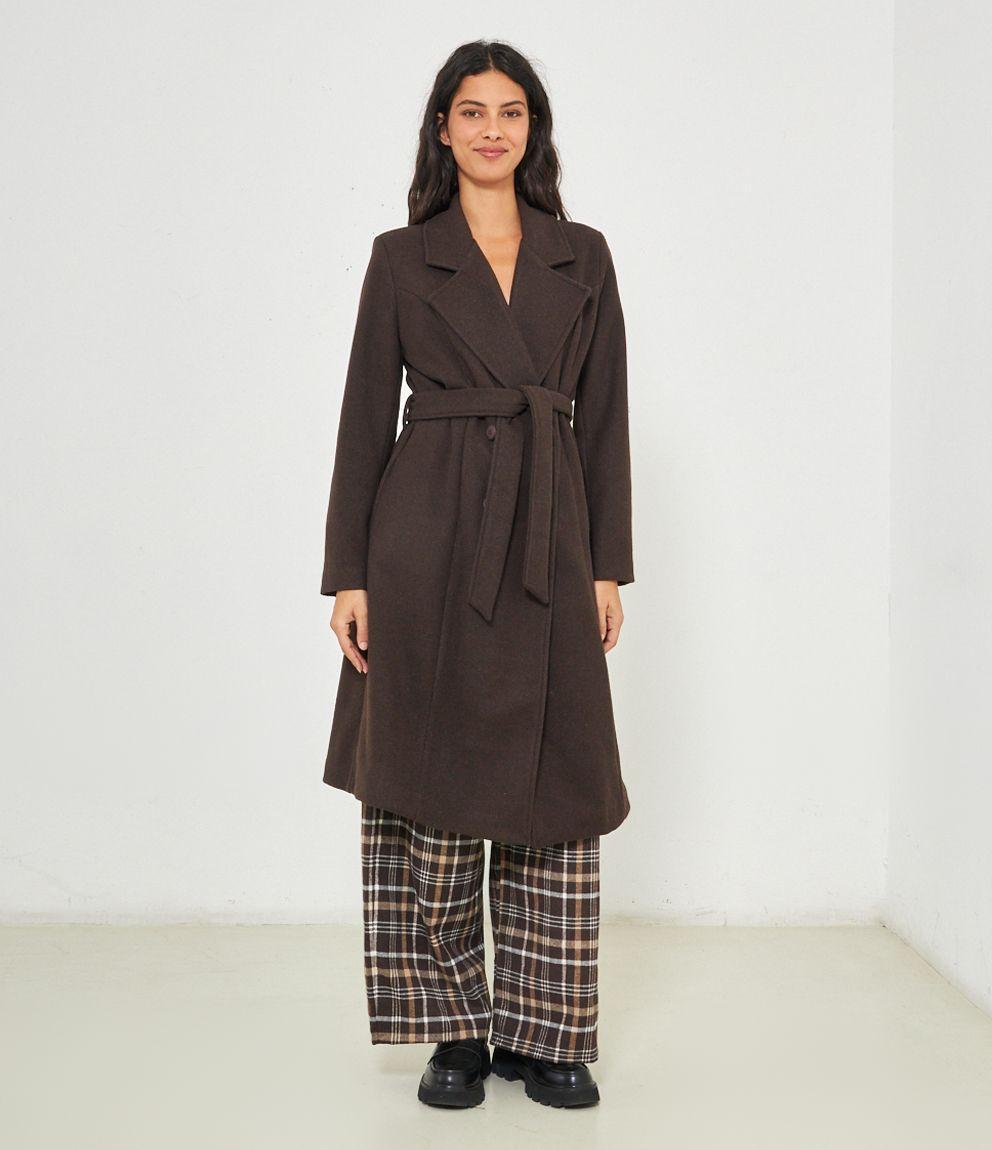 Cappotto midi con quattro bottoni, collo revers e cintura in vita.