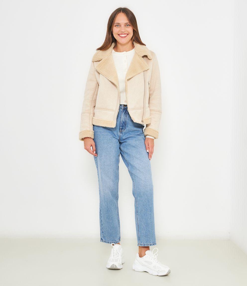 Giubbino modello comfy con interno in teddy, tasche laterali e chiusura con zip.
