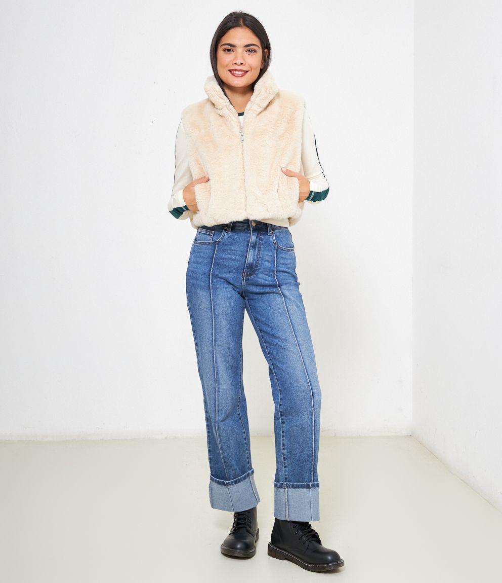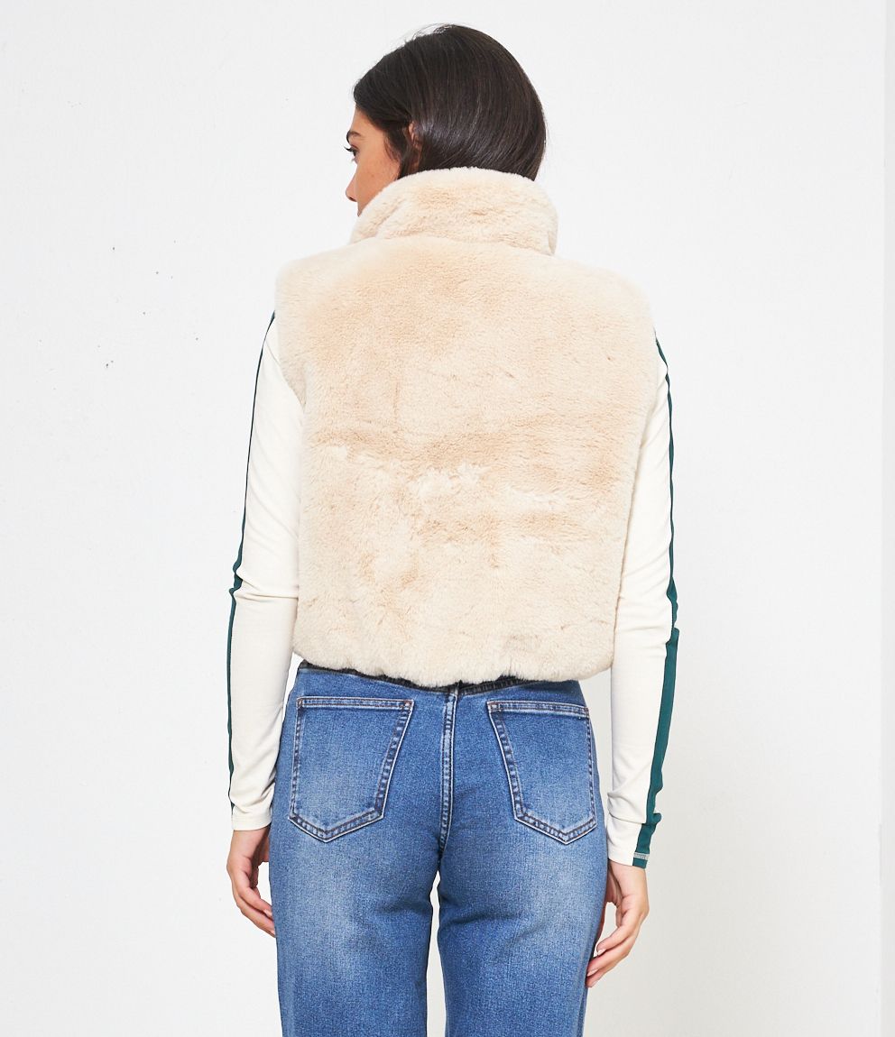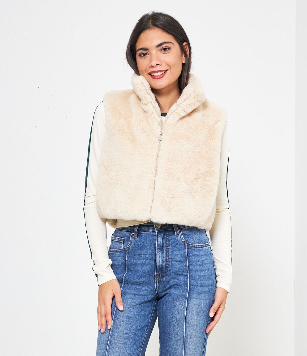 Gilet in pelliccia a collo alto con zip.
