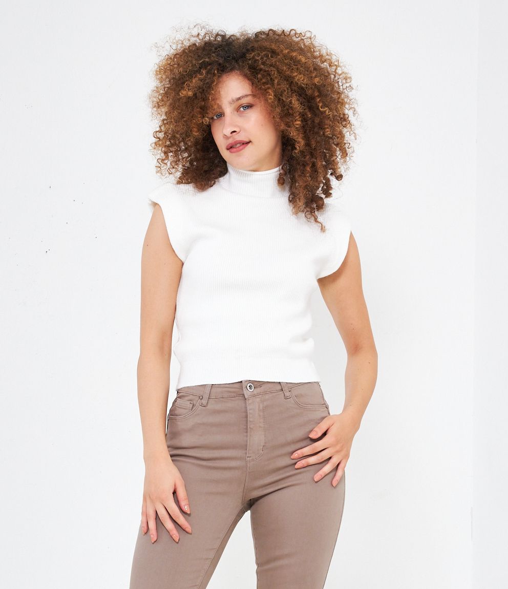 Gilet a costine con spalline imbottite e mezzo collo.