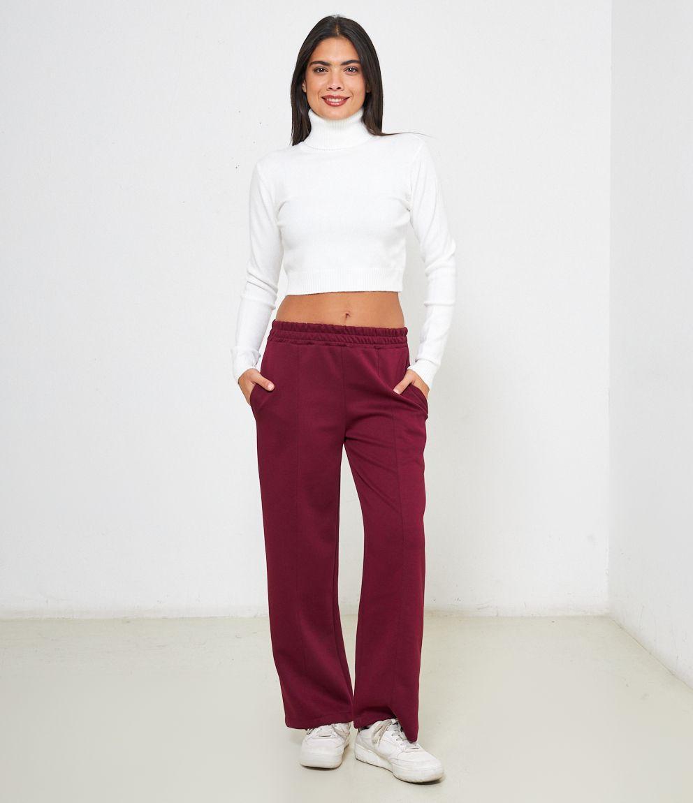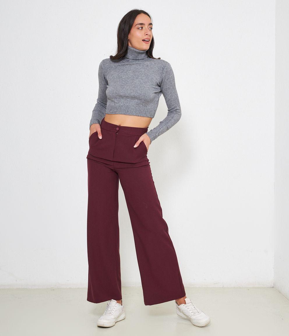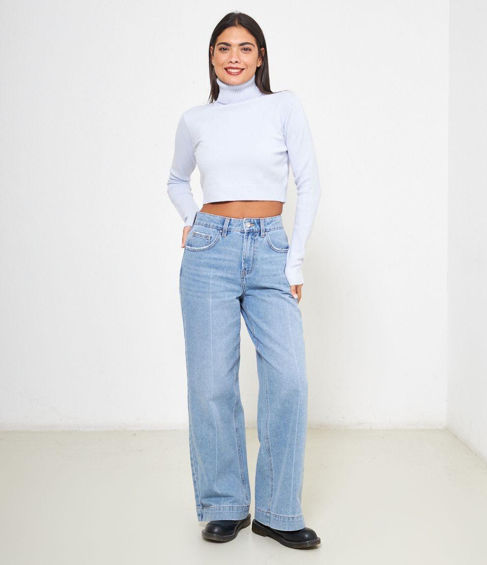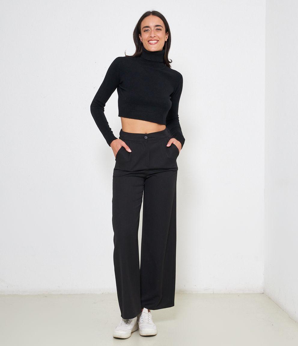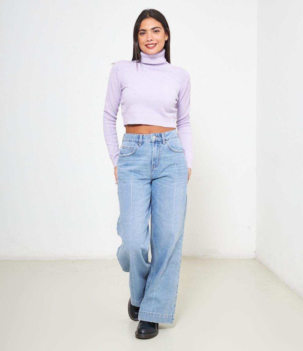 Maglia modello crop a collo alto con risvolto e bordi a costine.