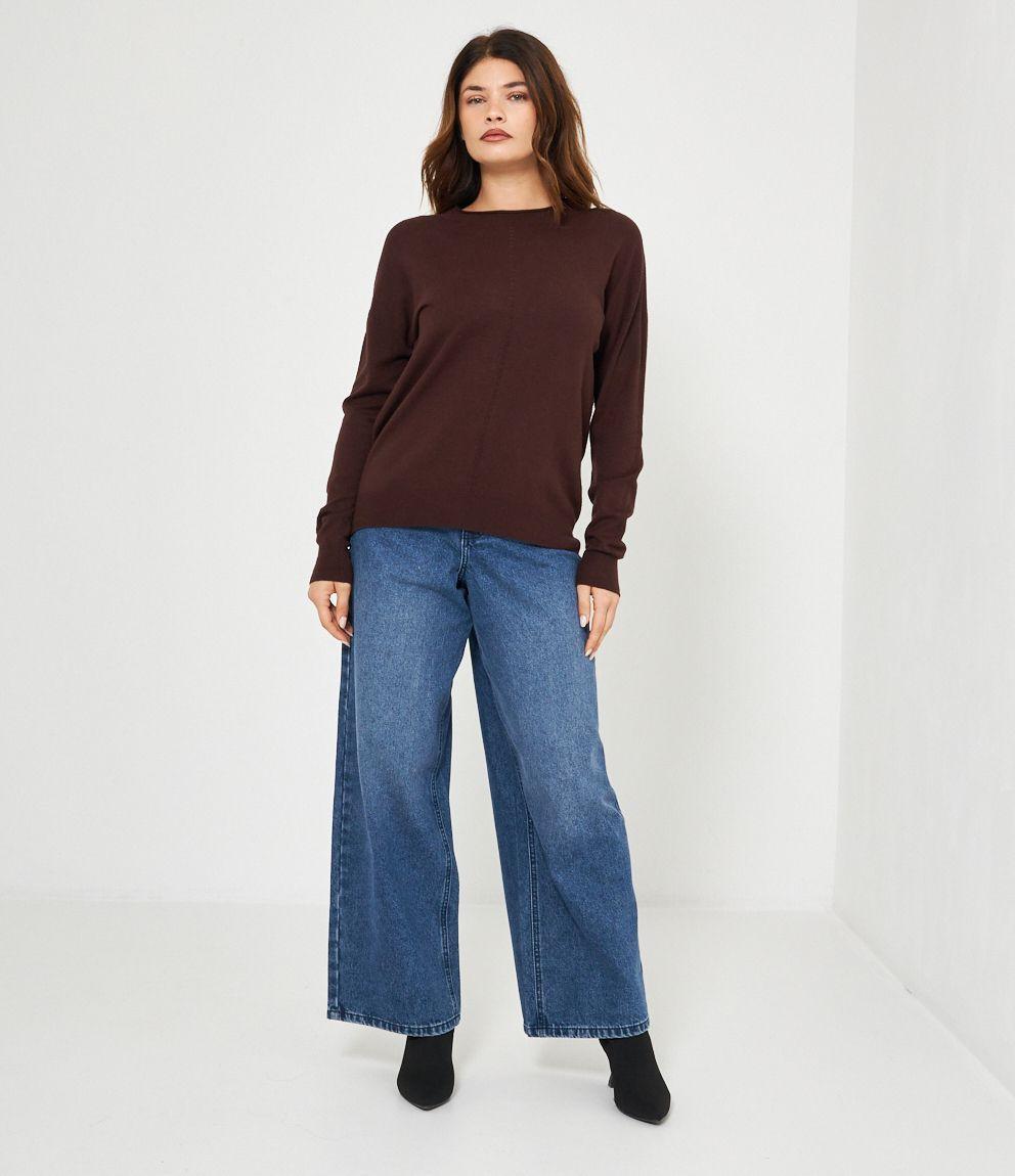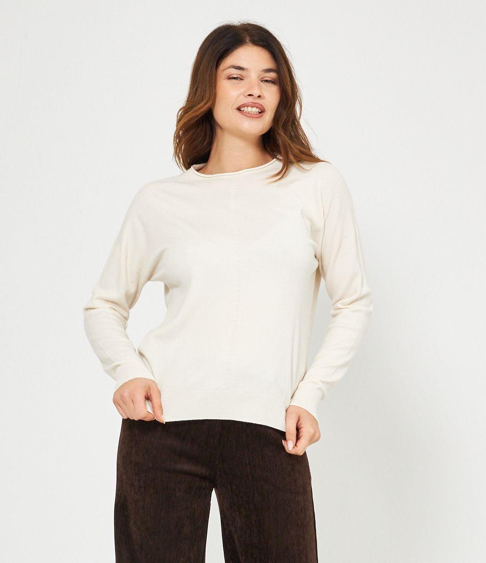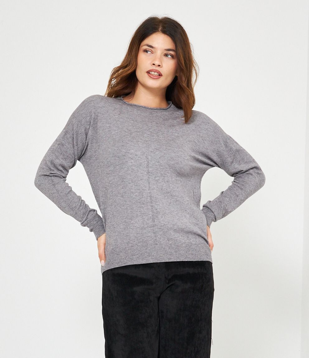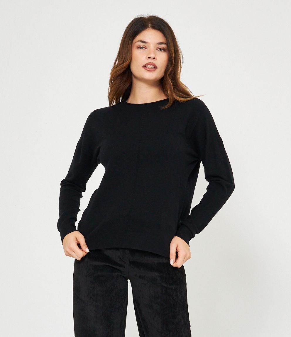 Maglia in viscosa modello comfy, scollo a taglio vivo.