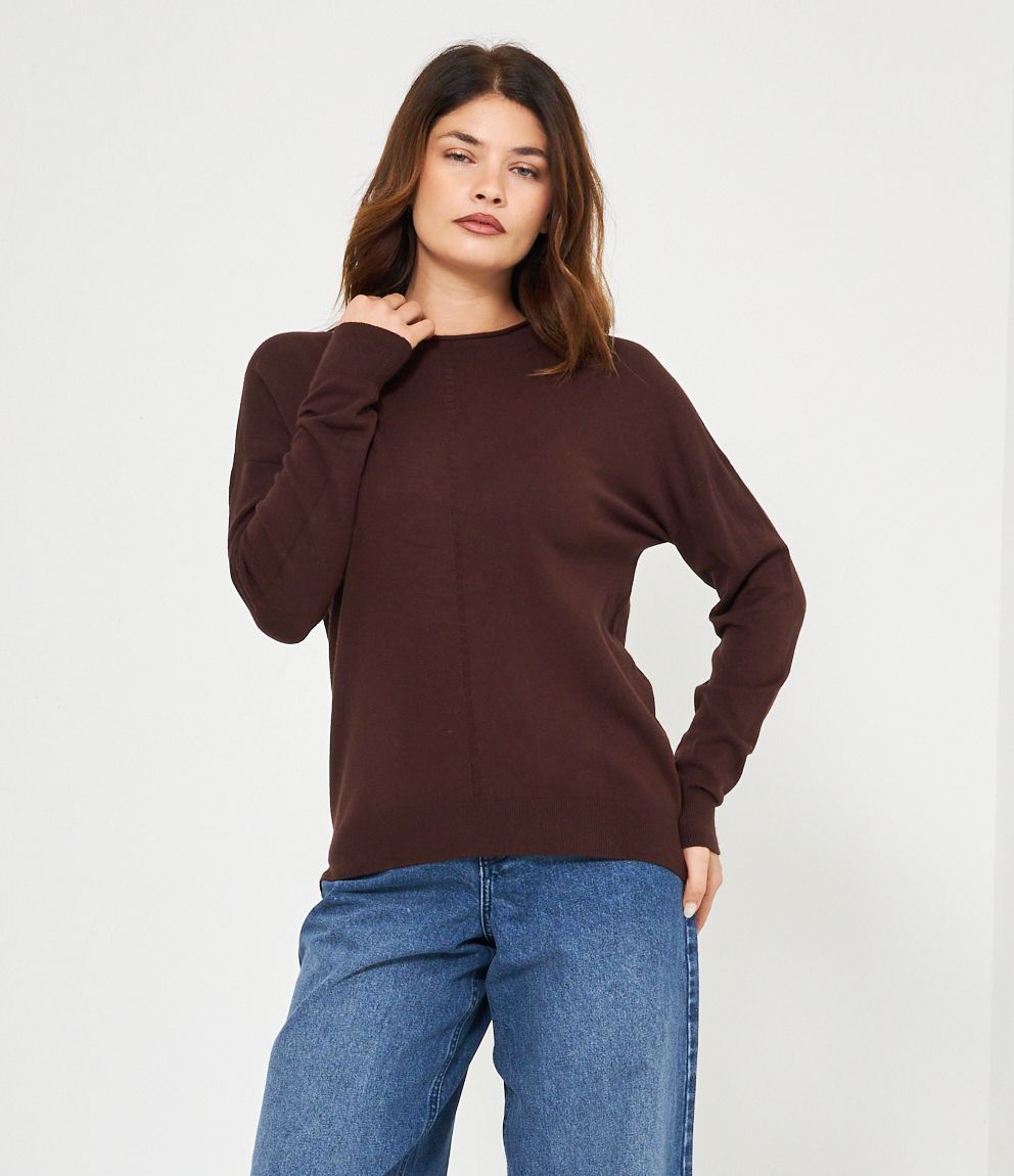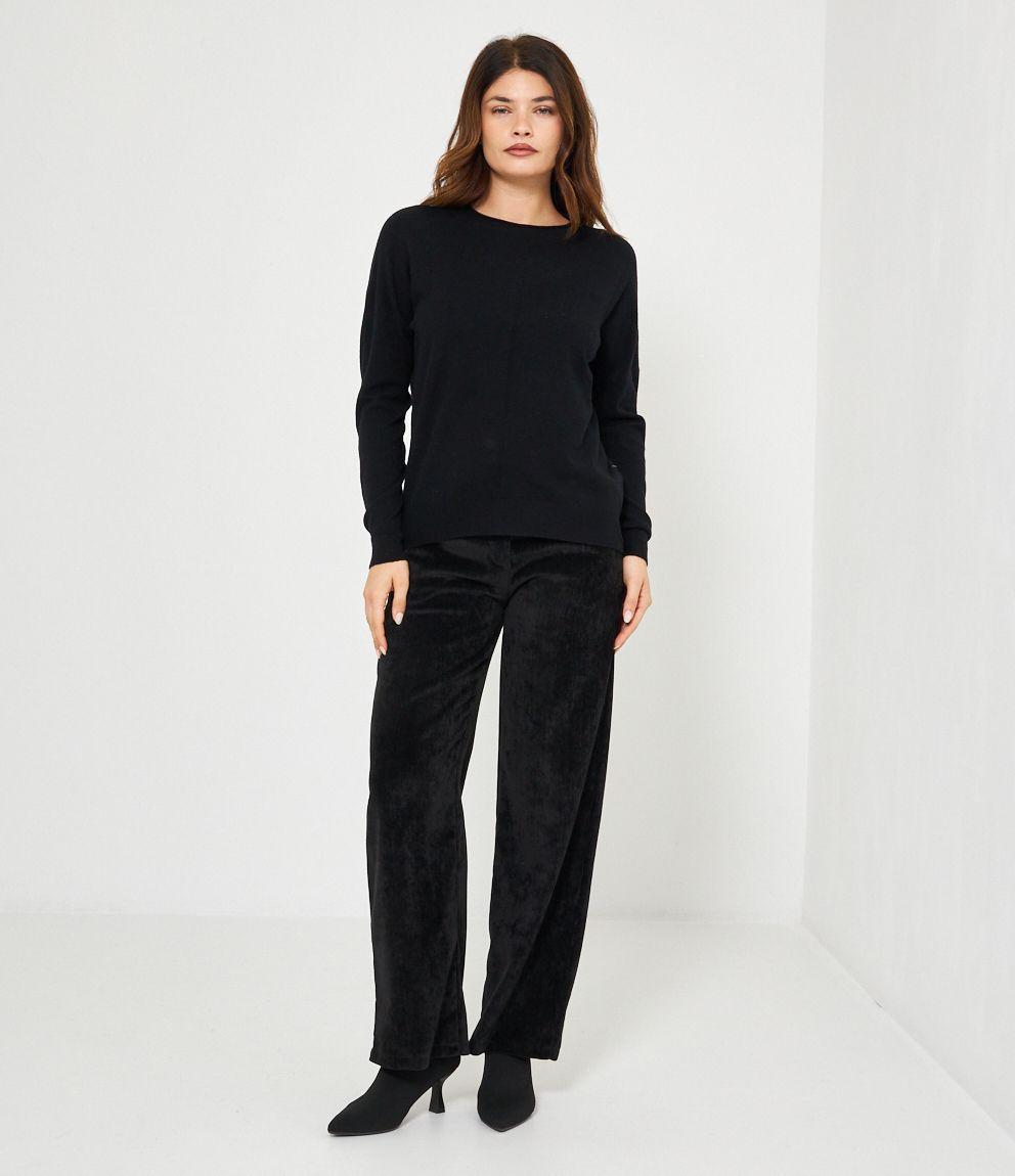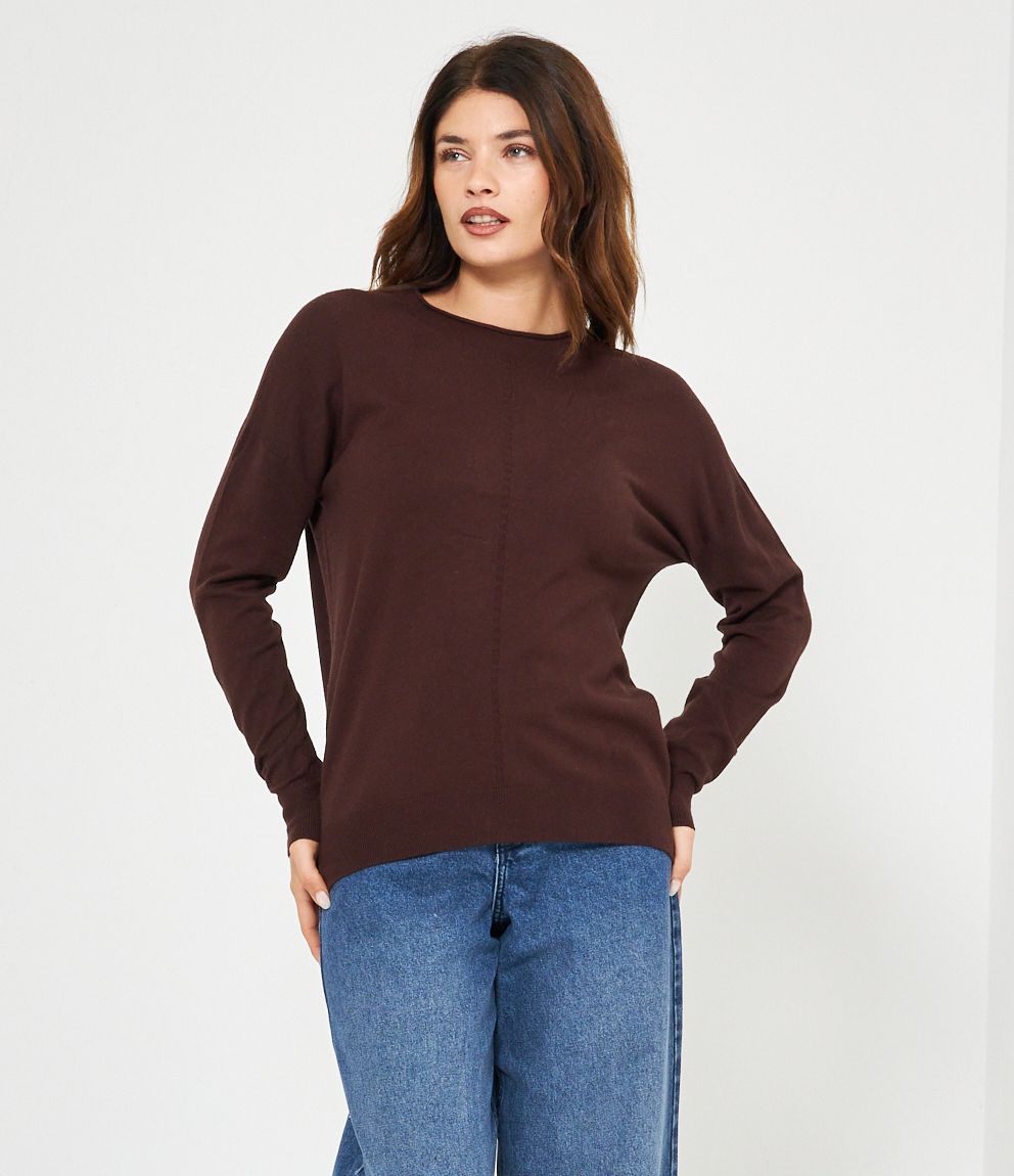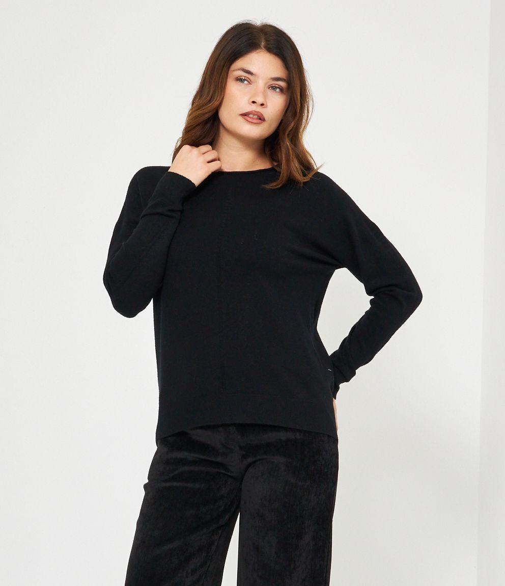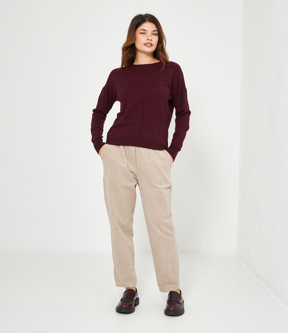 Maglia in viscosa modello comfy, scollo a taglio vivo.