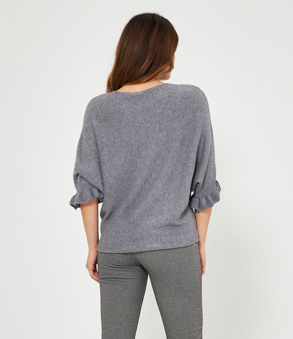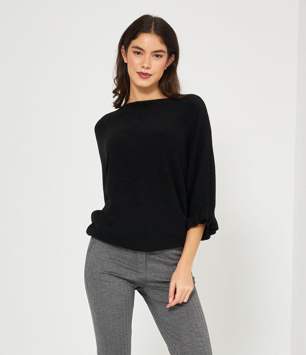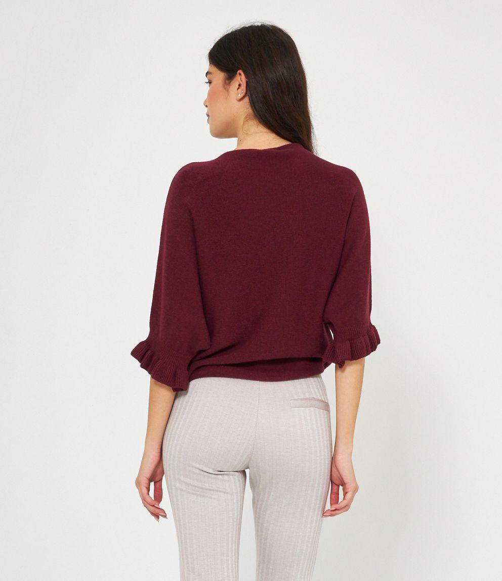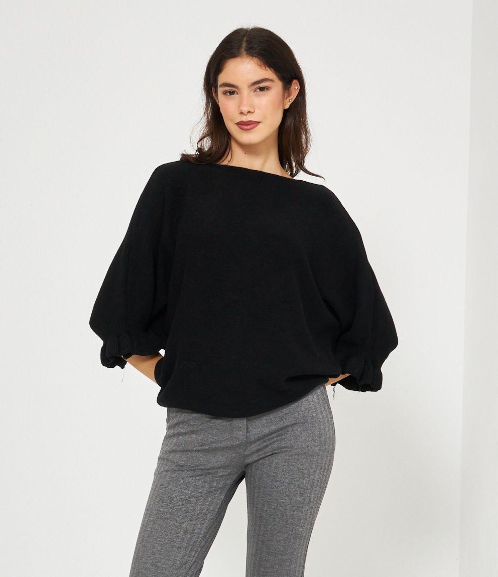 Maglia over in viscosa con maniche a tre quarti e rouches.