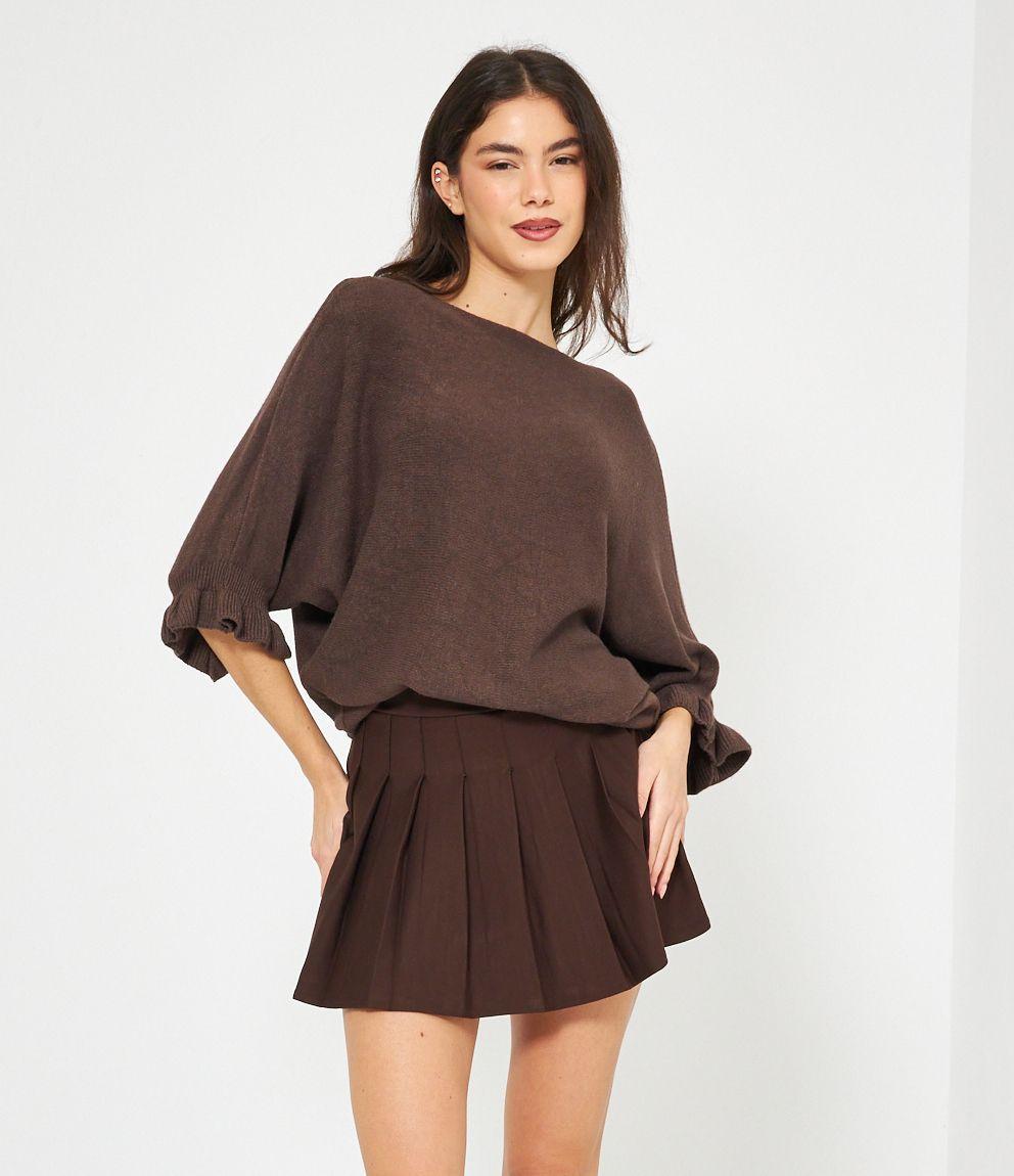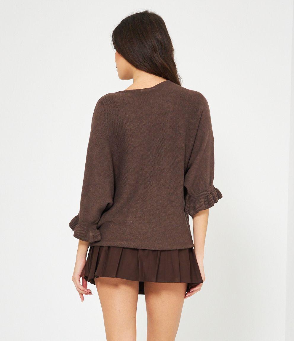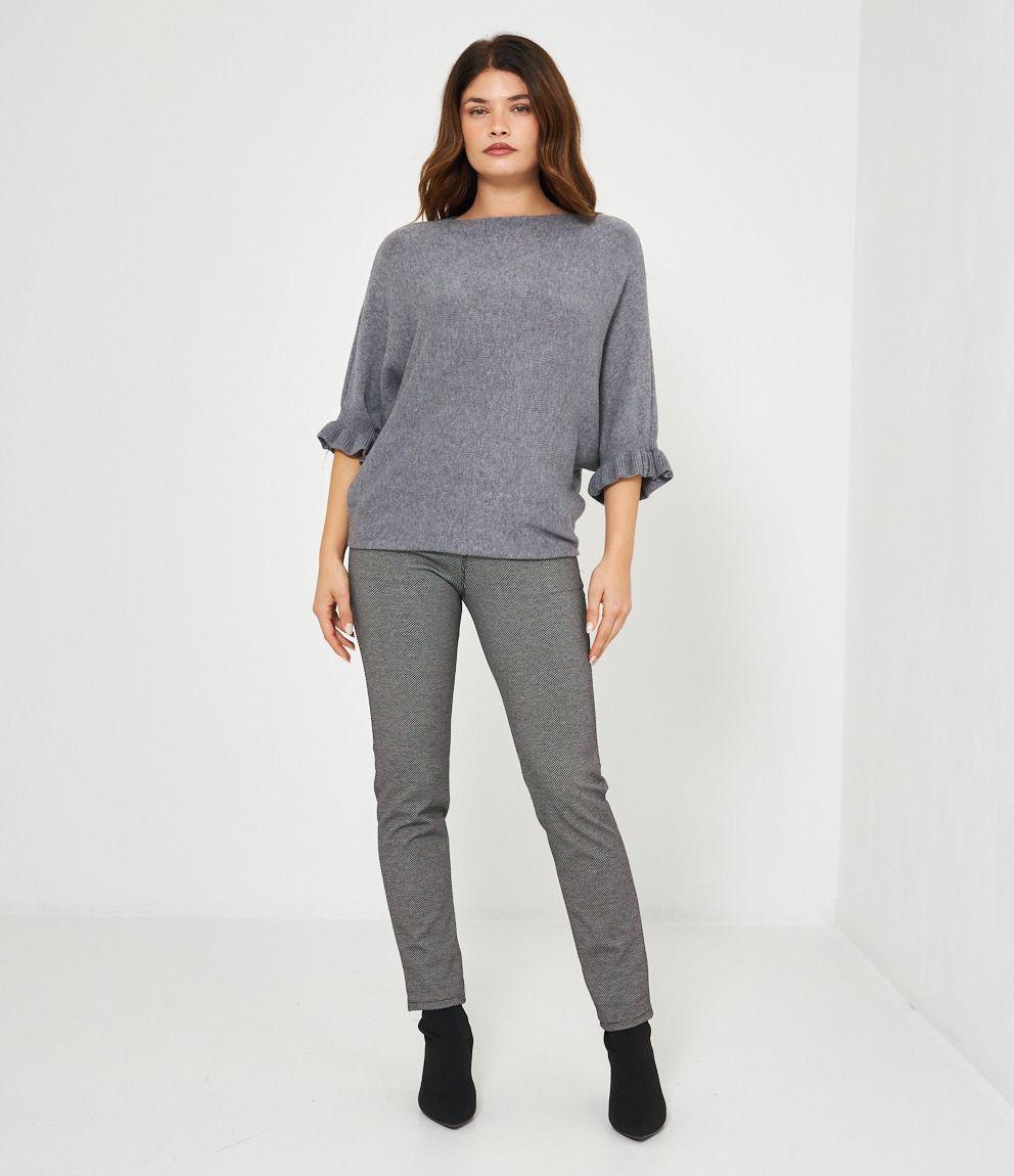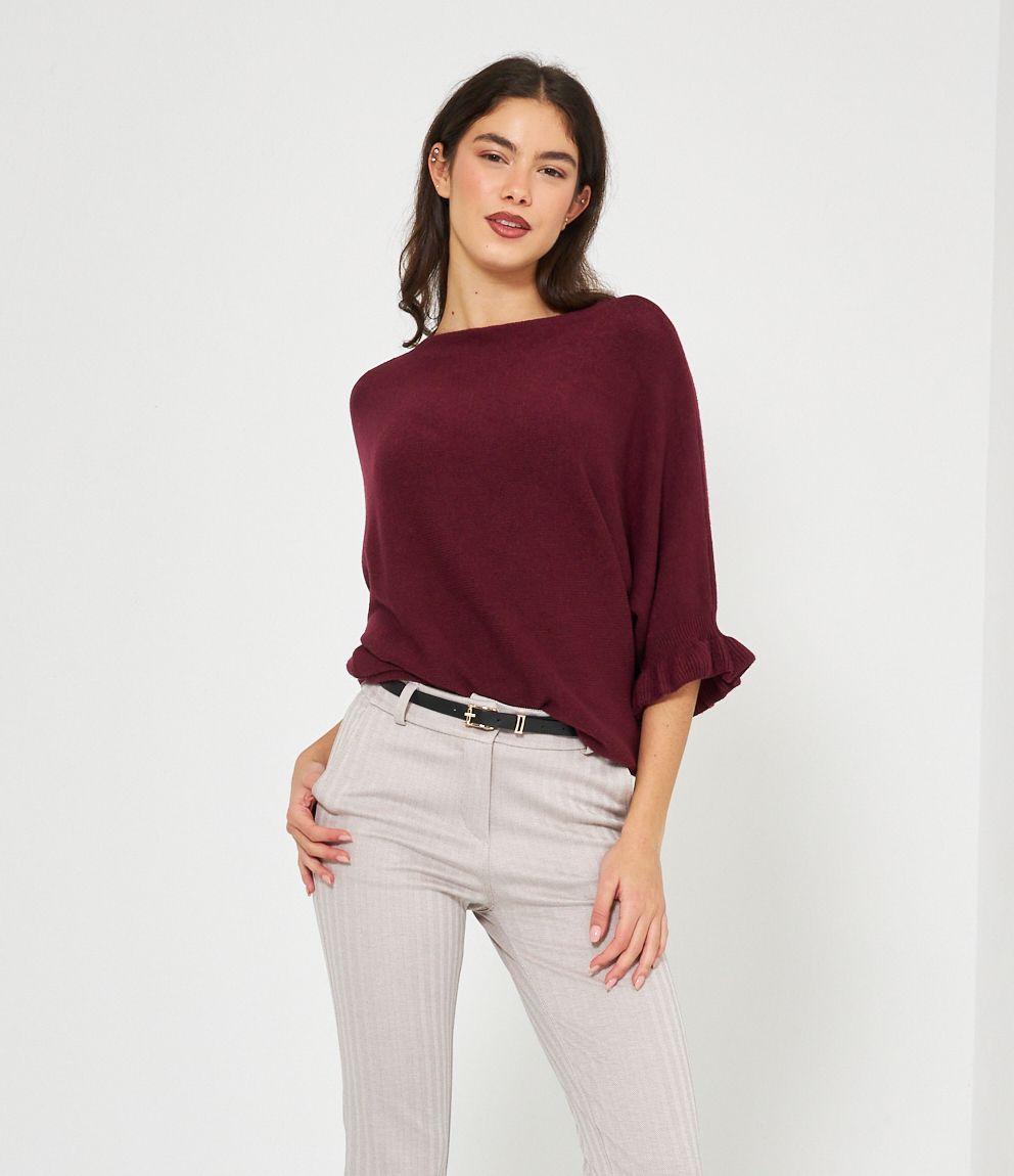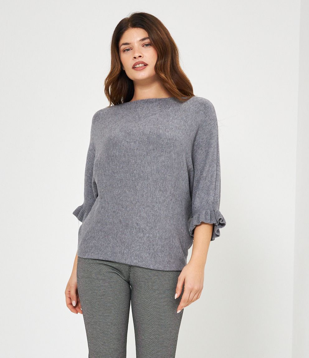 Maglia over in viscosa con maniche a tre quarti e rouches.
