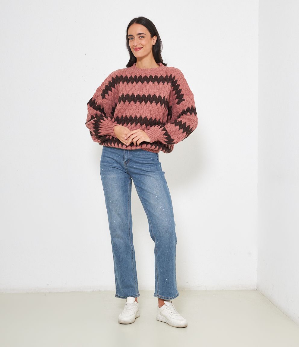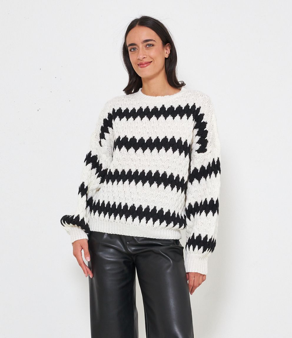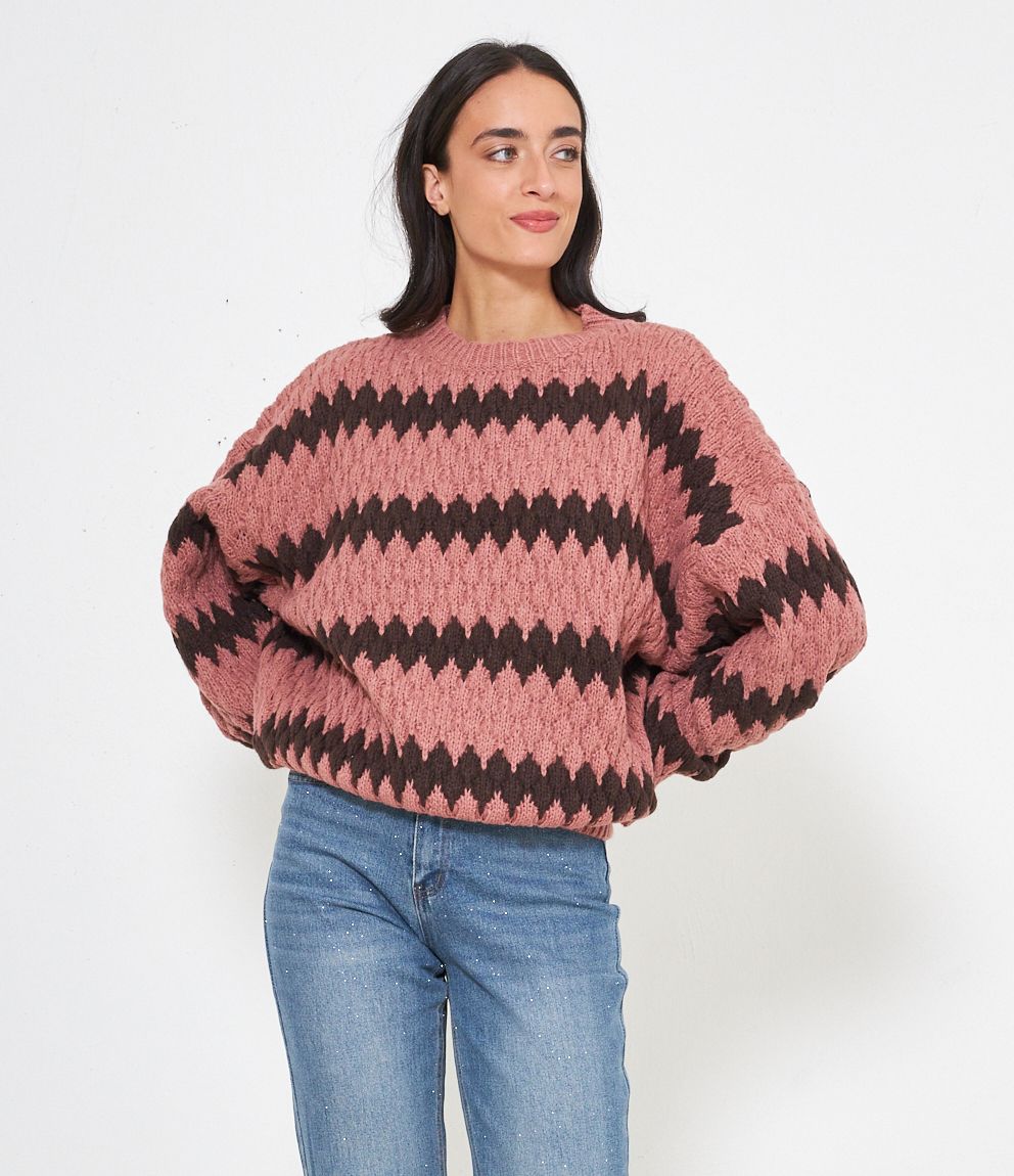 Maglia over con colori a contrasto, girocollo e bordi a costine.