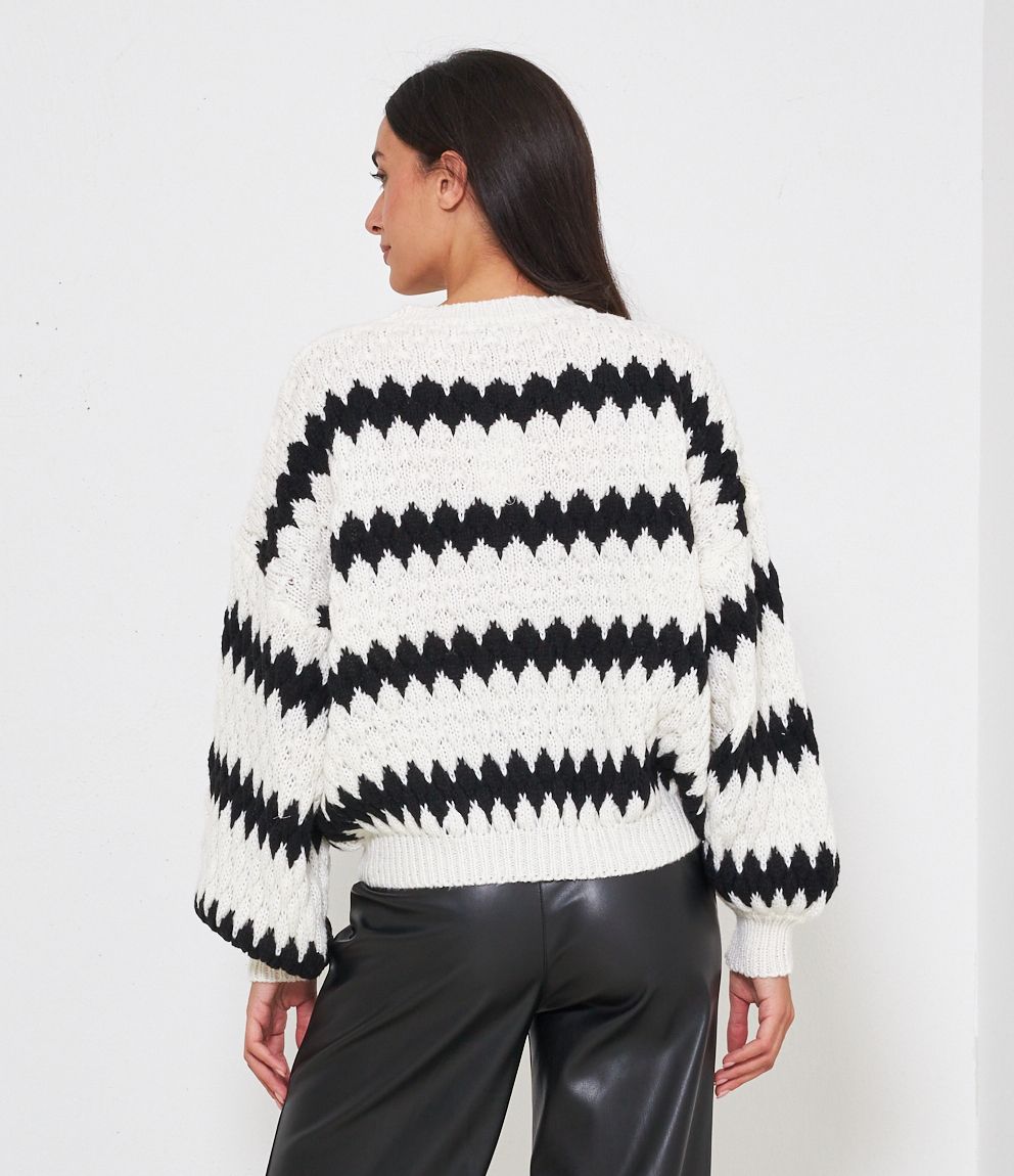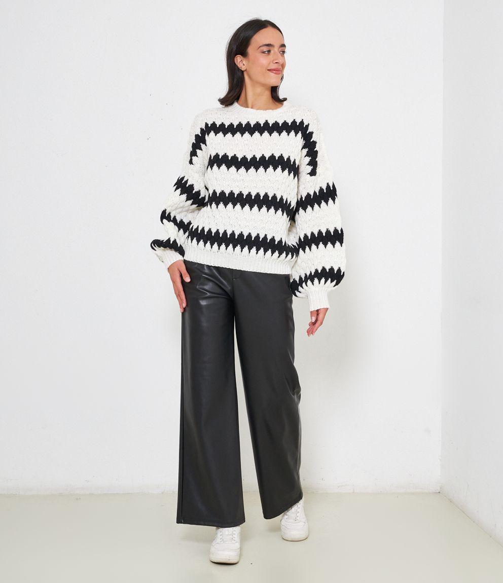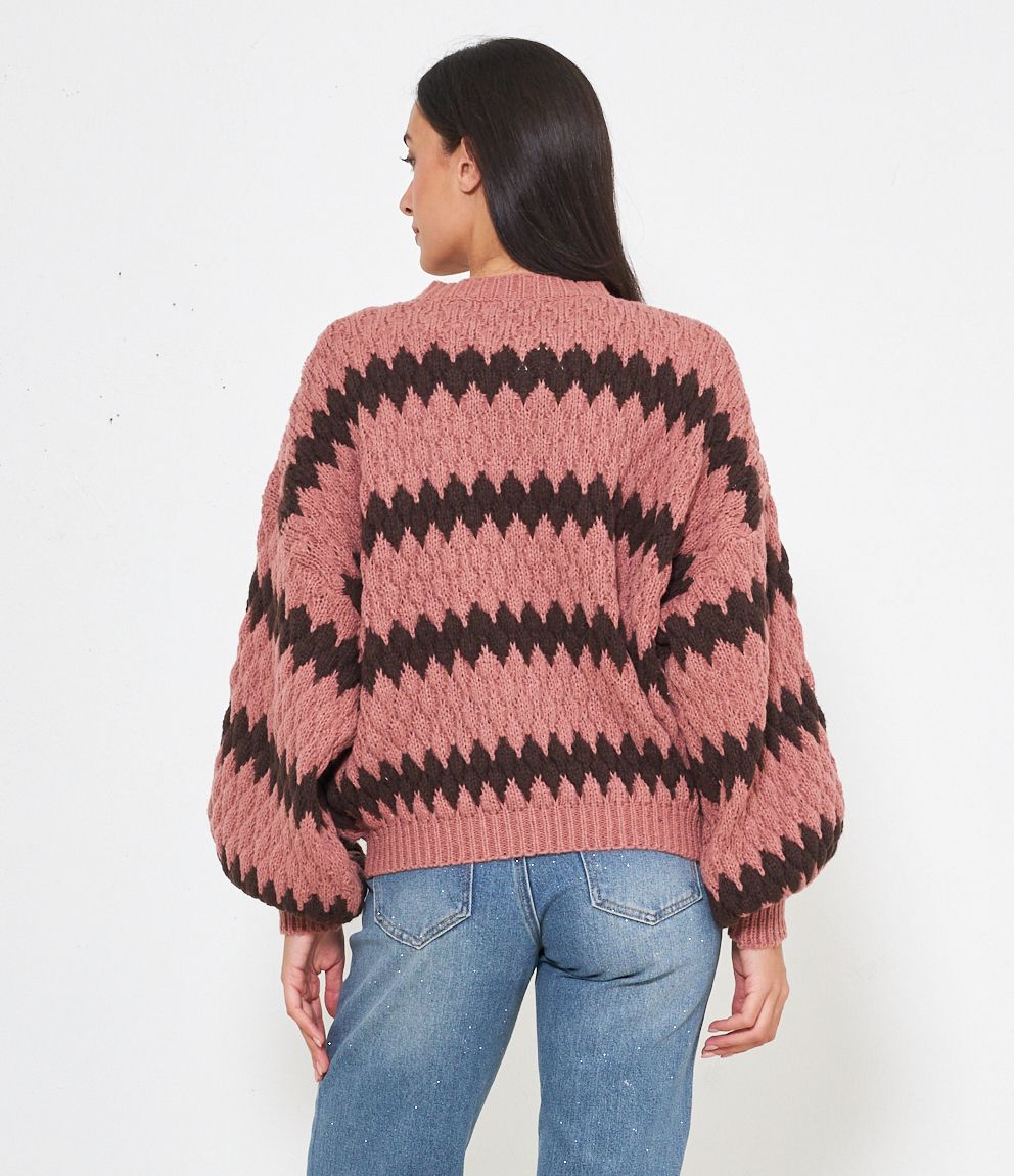 Maglia over con colori a contrasto, girocollo e bordi a costine.