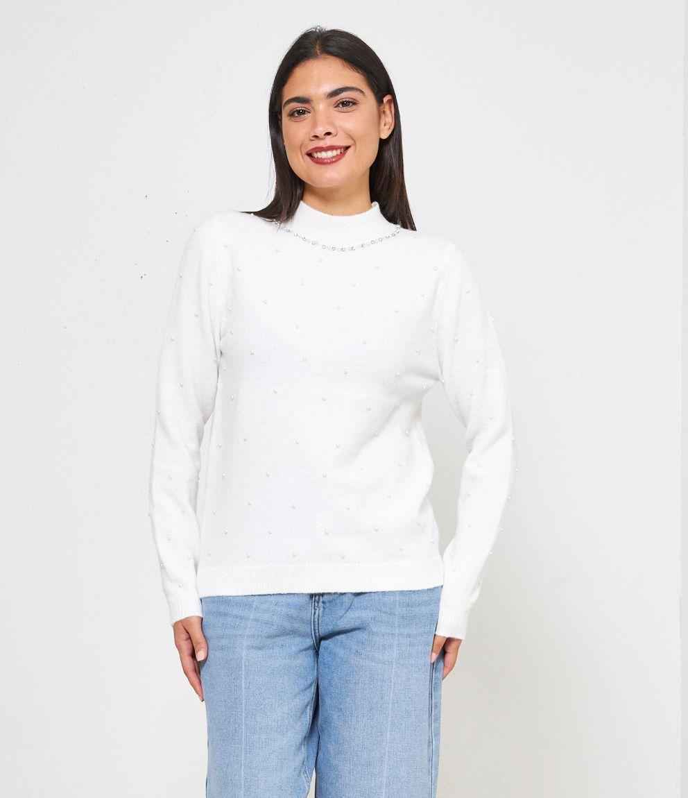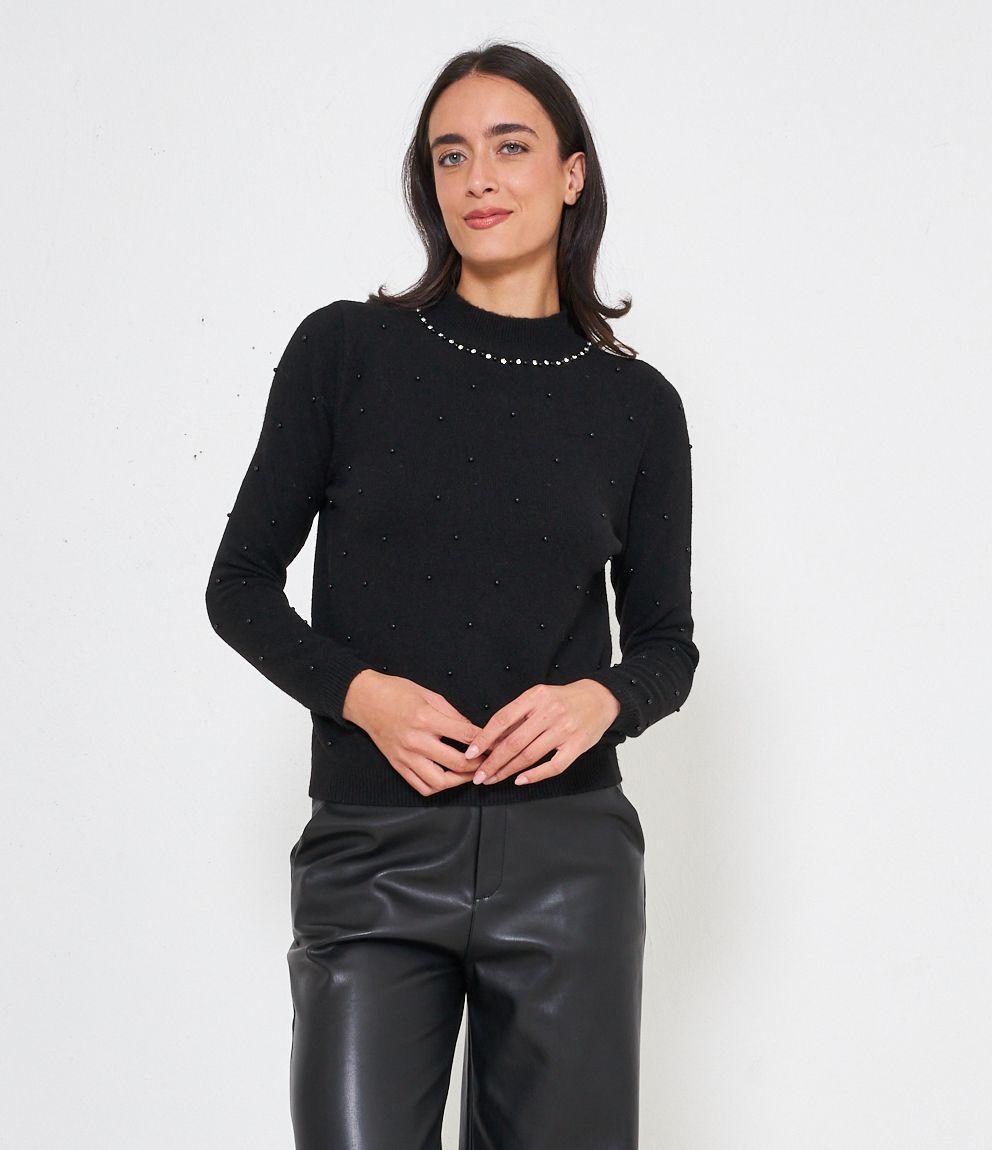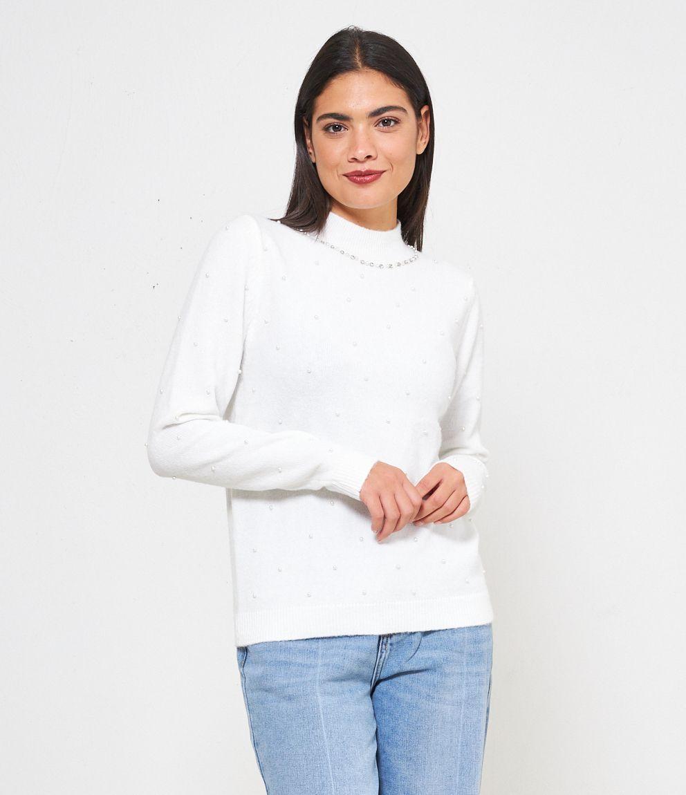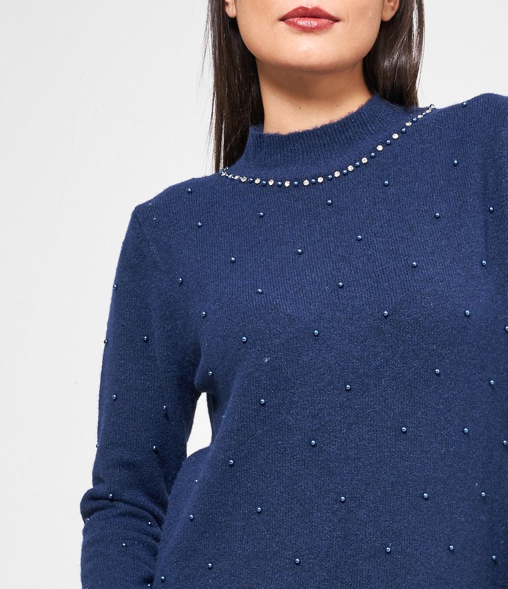 Maglia modello comfy a mezzo collo con dettagli perle.