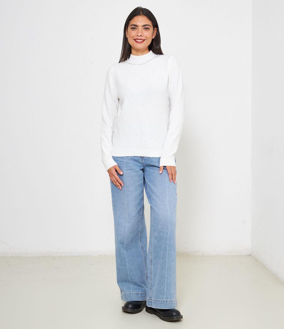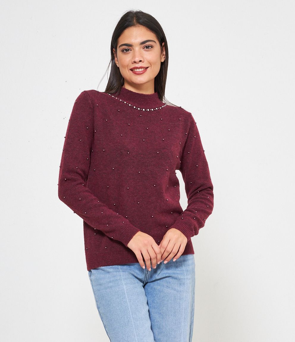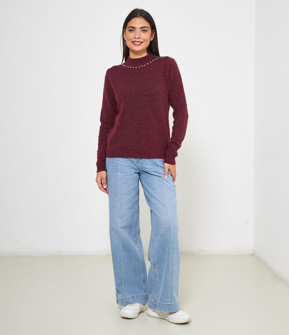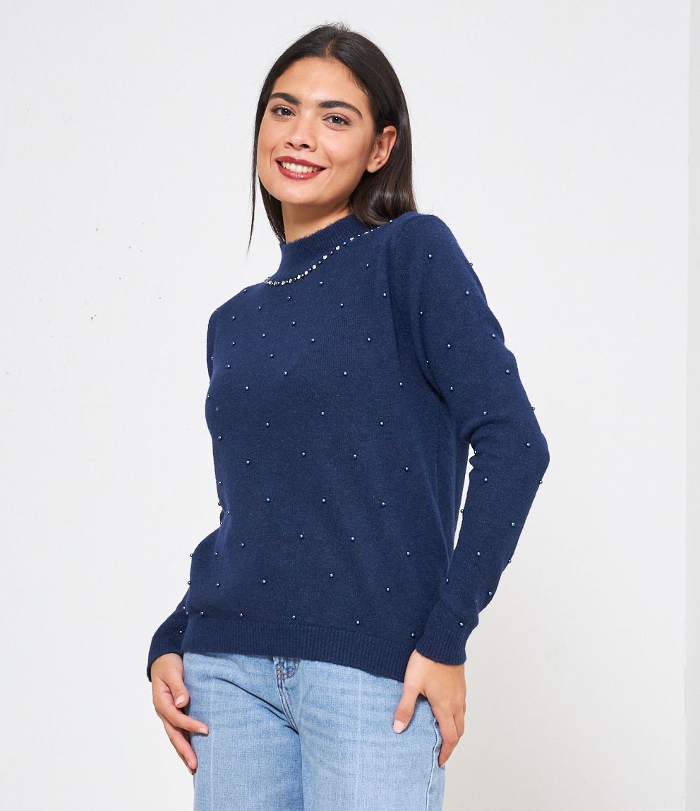 Maglia modello comfy a mezzo collo con dettagli perle.