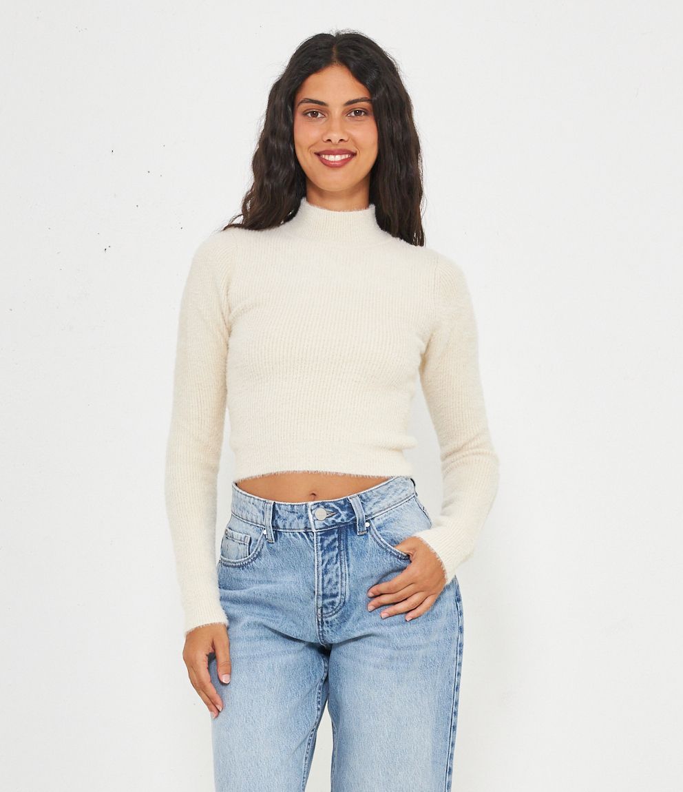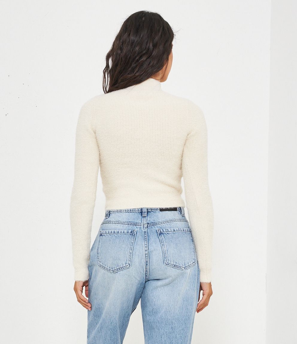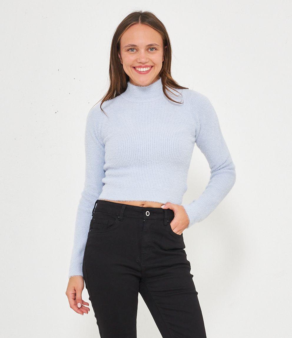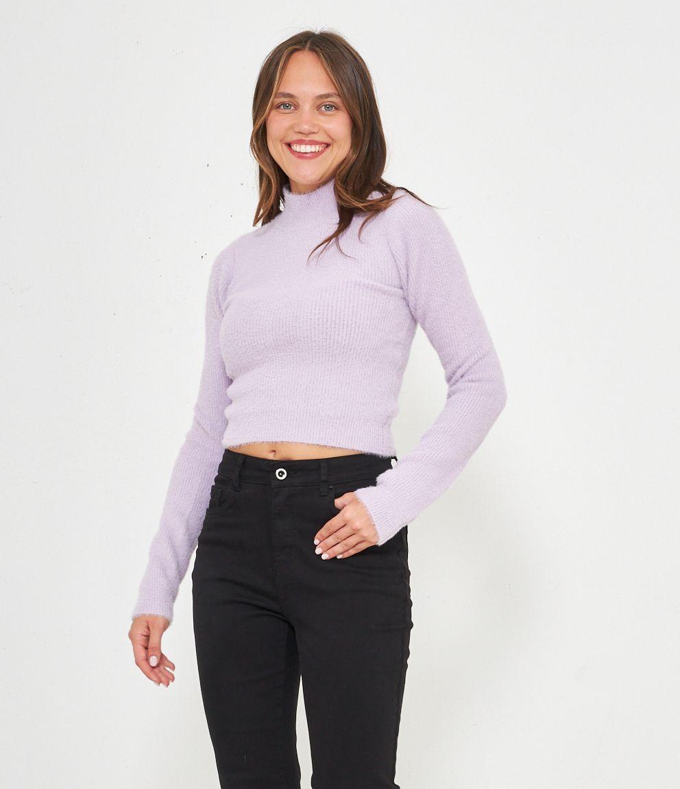 Maglia effetto peluche modello crop con mezzo collo.