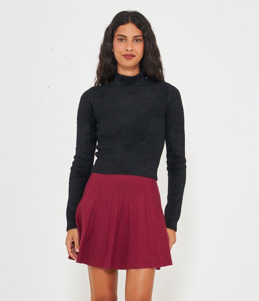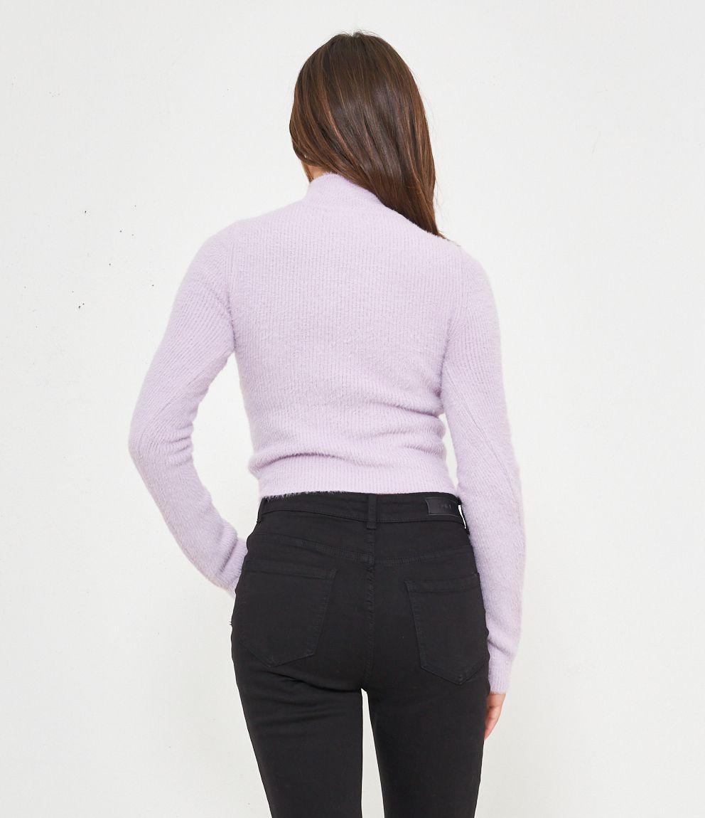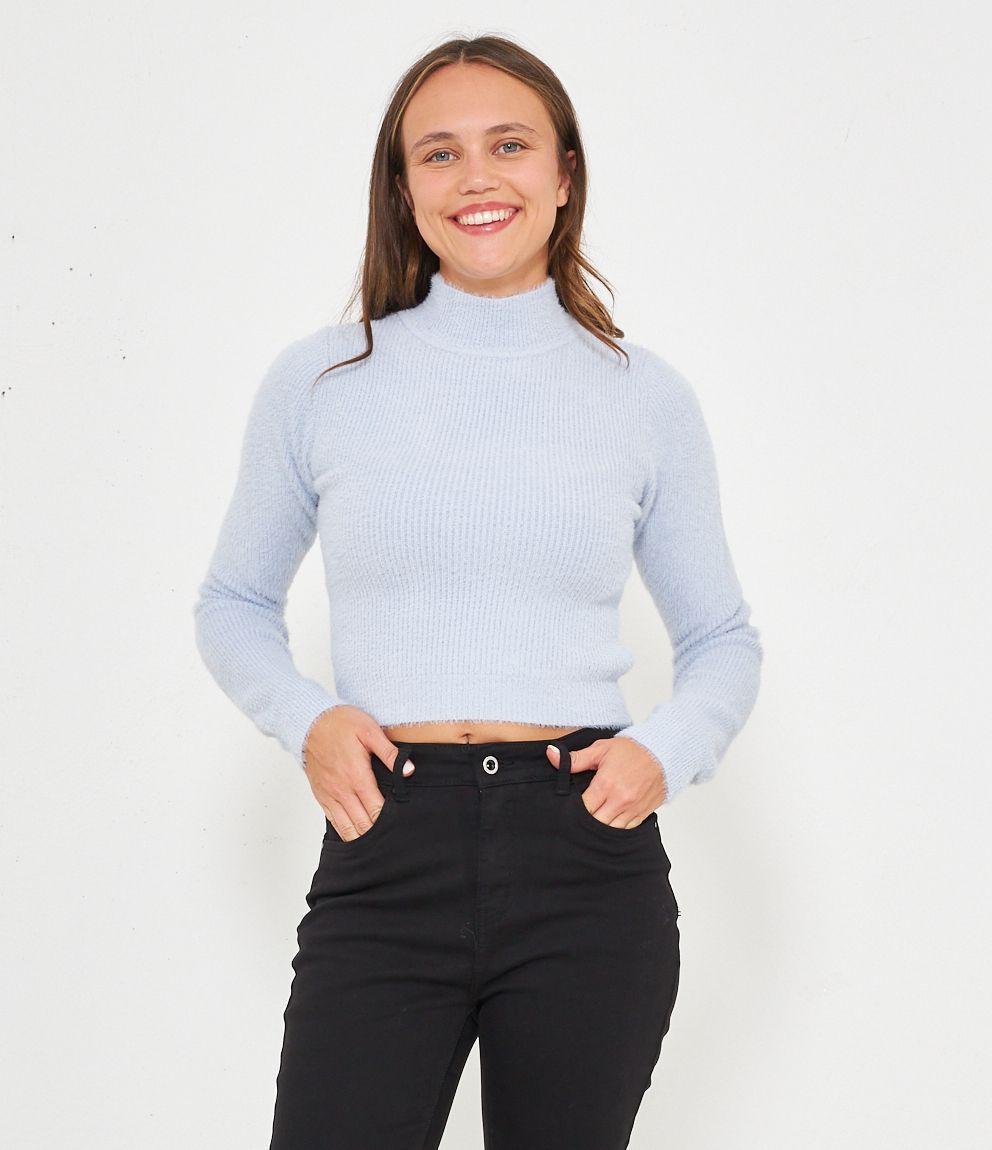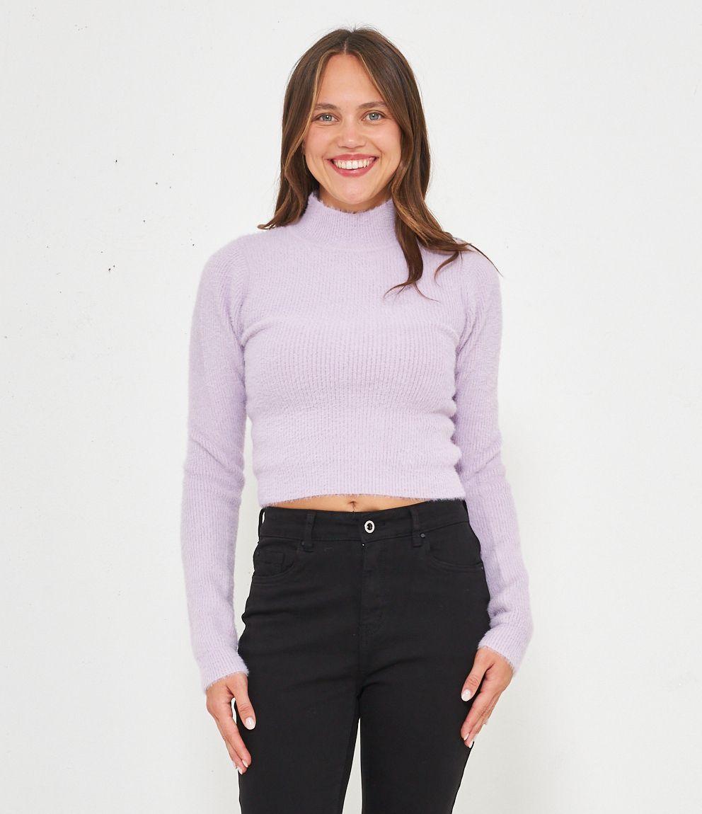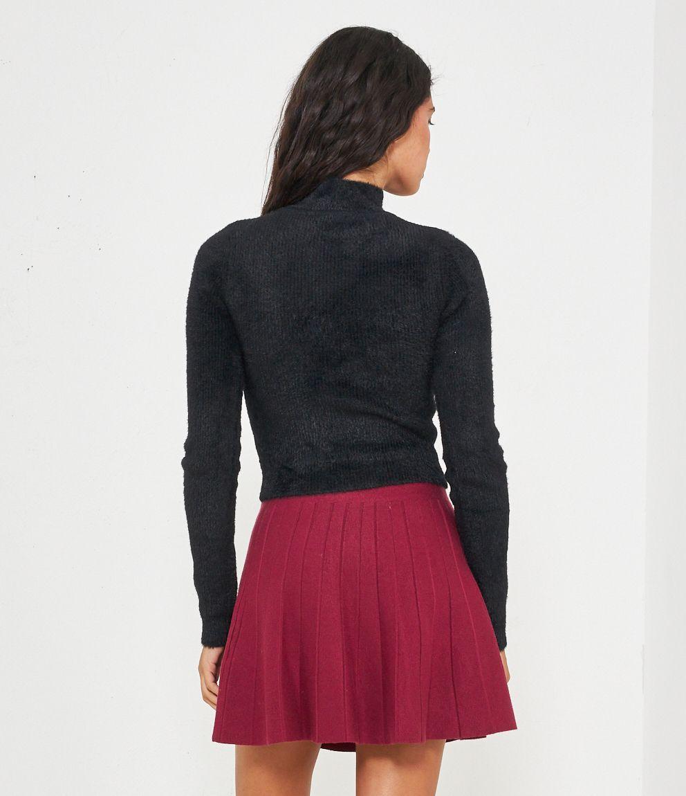 Maglia effetto peluche modello crop con mezzo collo.