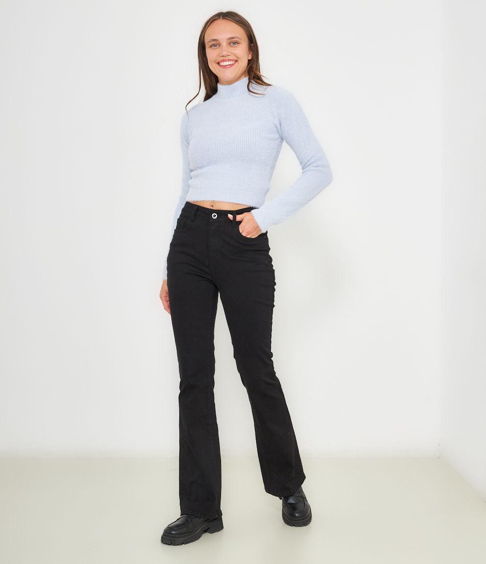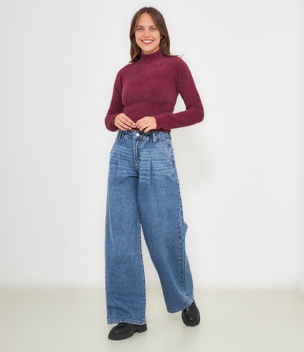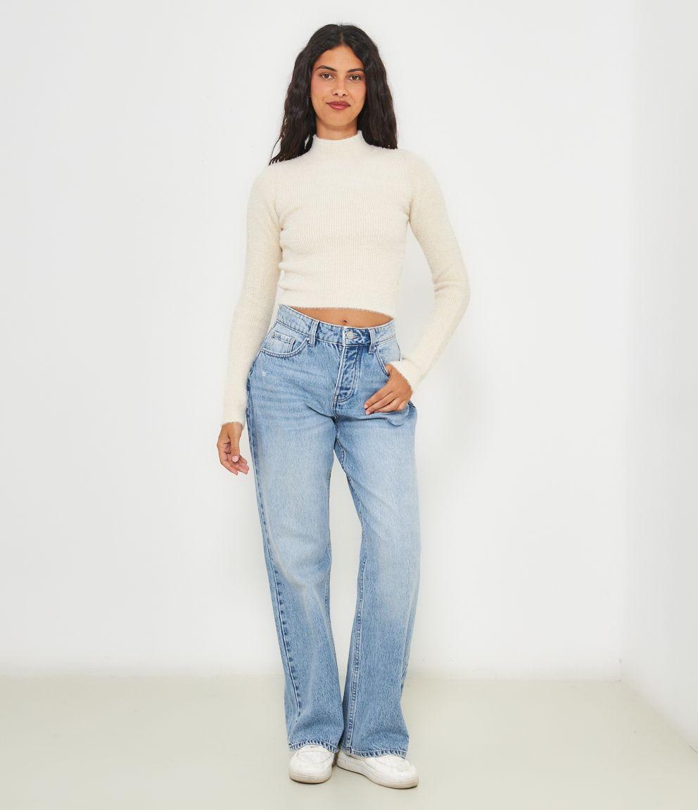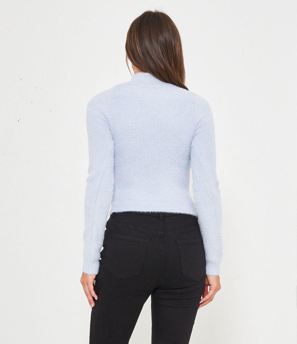 Maglia effetto peluche modello crop con mezzo collo.