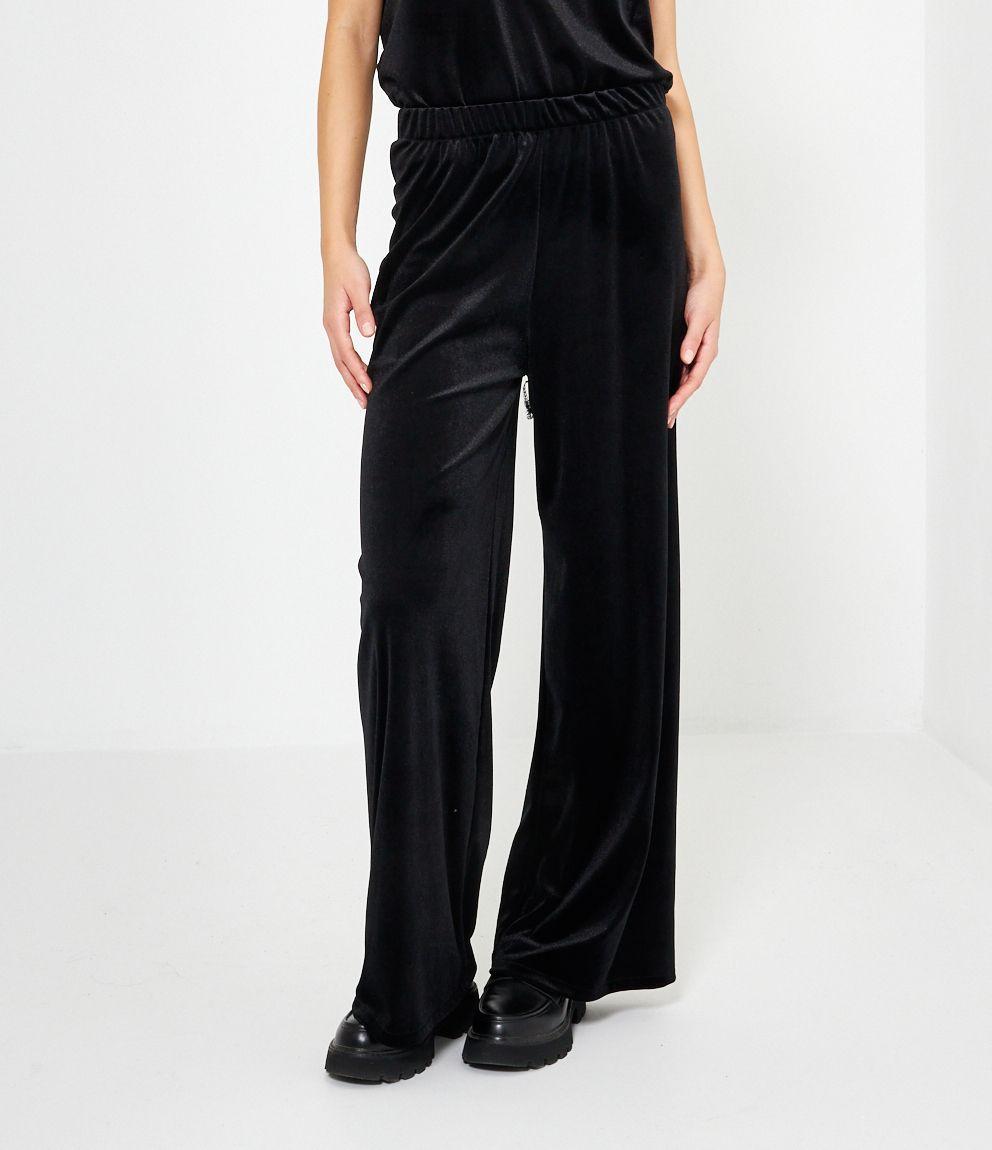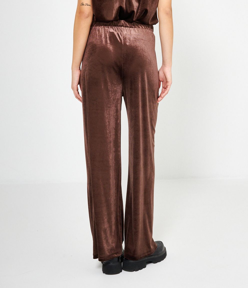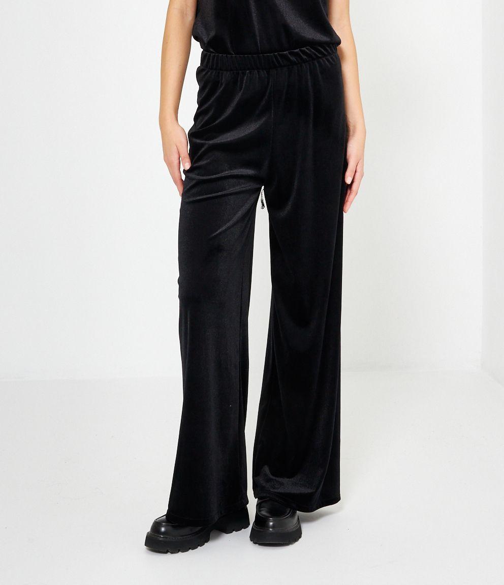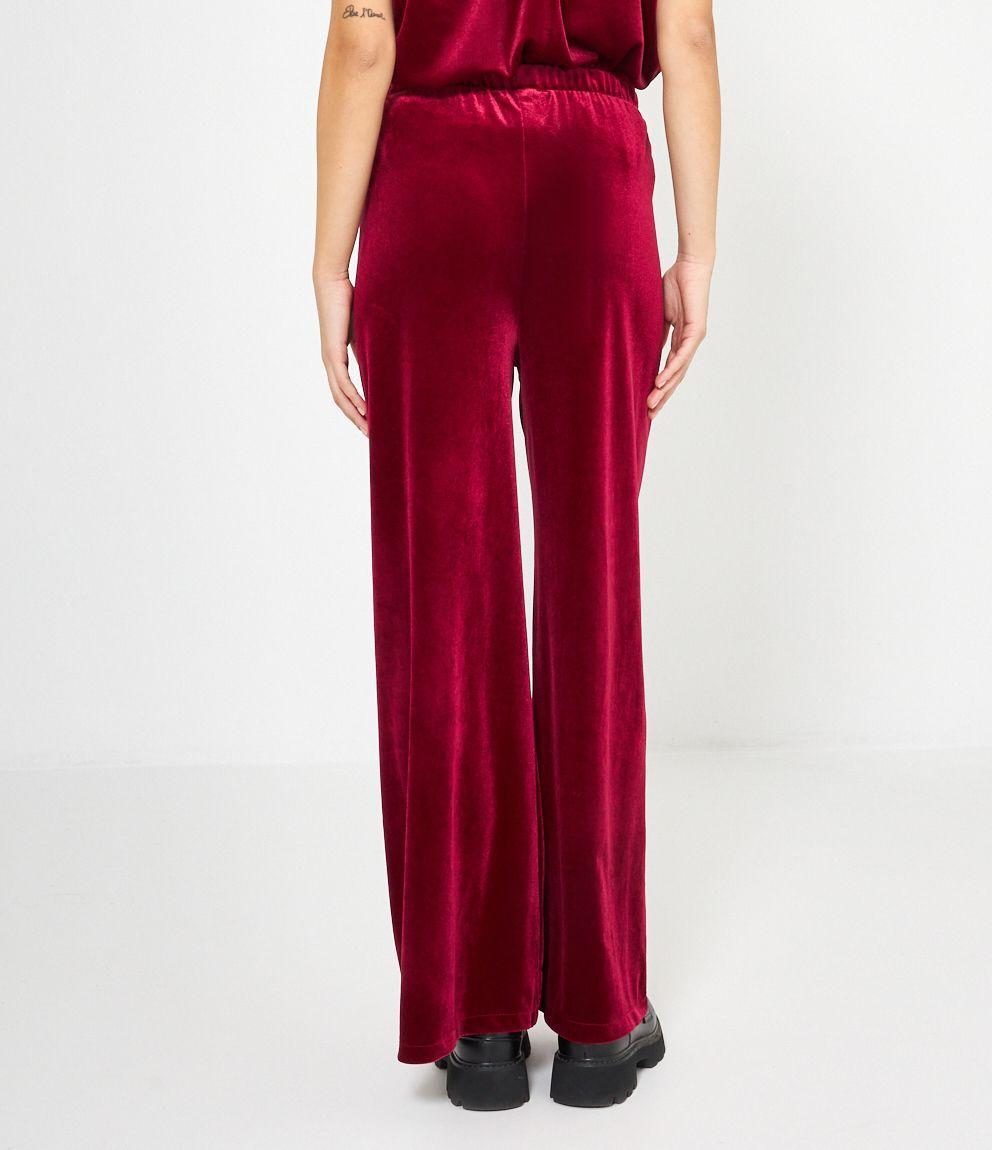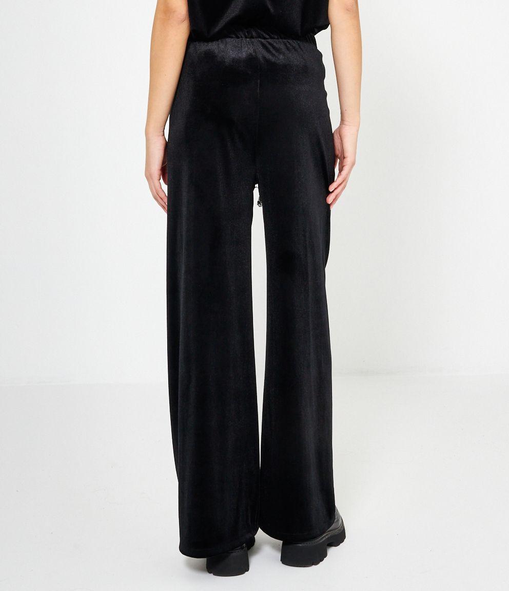 Pantaloni modello palazzo in ciniglia con elastico in vita.