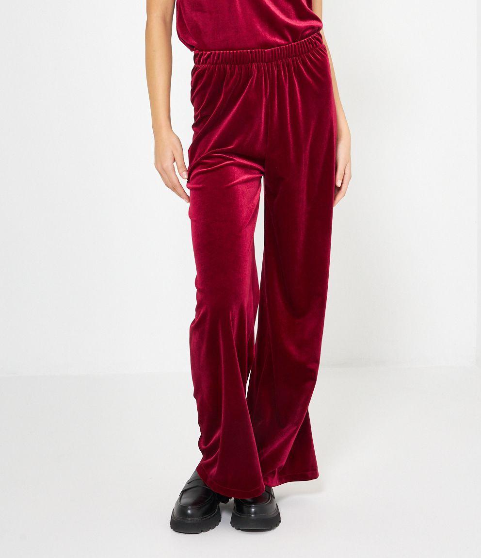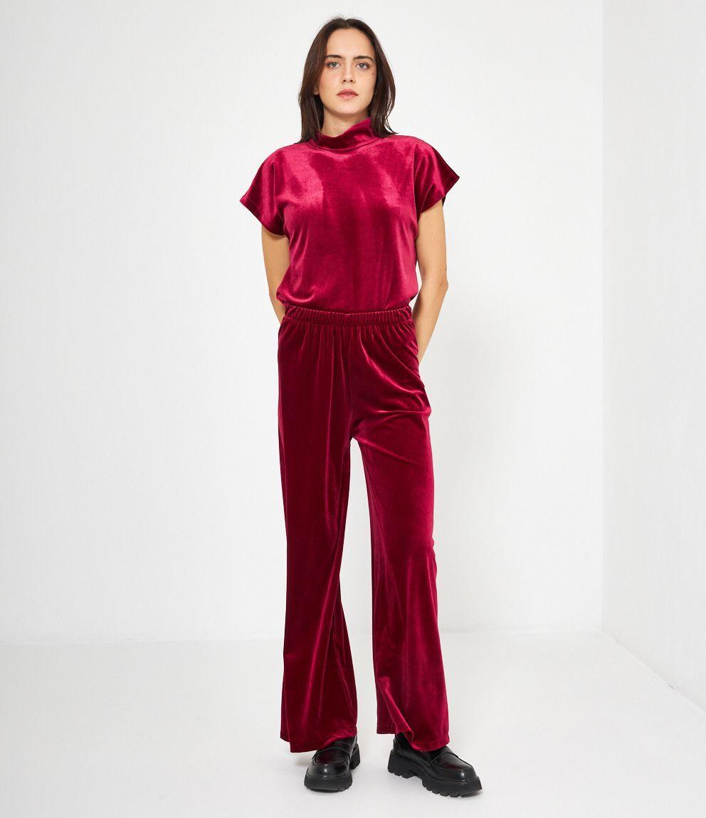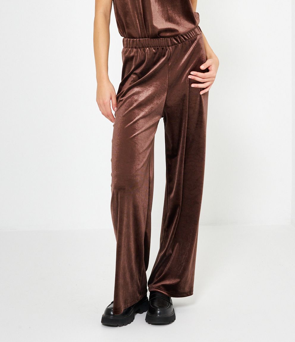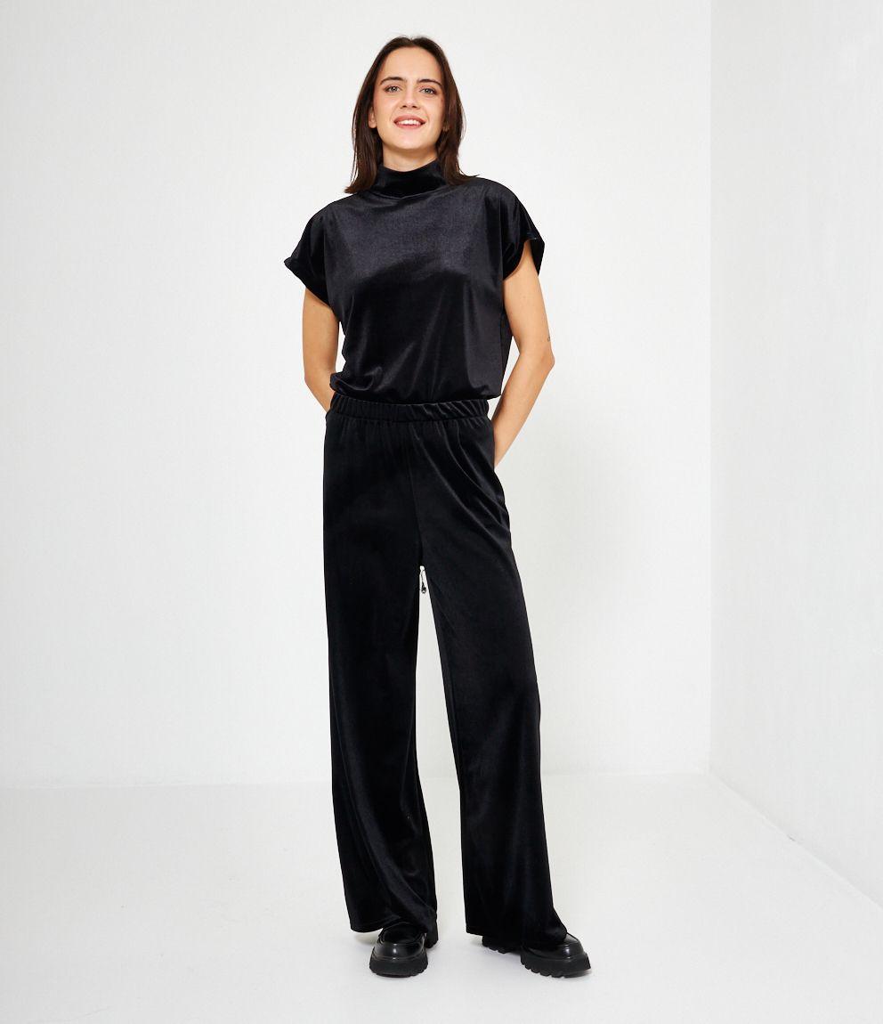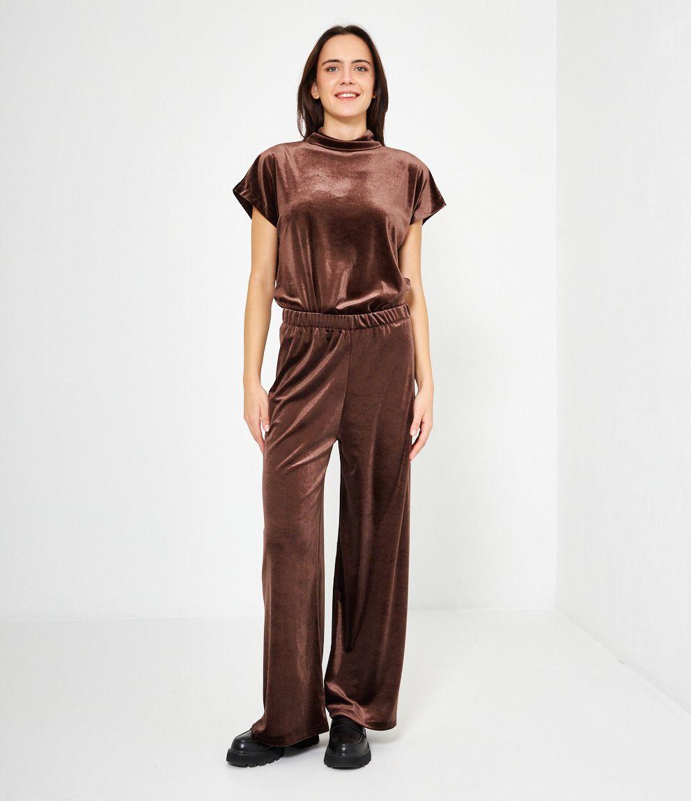 Pantaloni modello palazzo in ciniglia con elastico in vita.