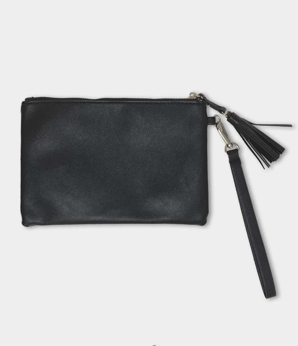 Pochette 'Wednesday' con stampa grafica , manico laterale rimovibile e chiusura con zip.