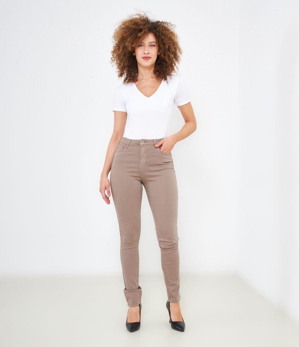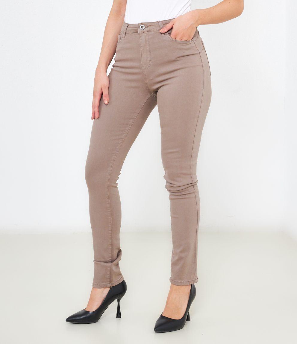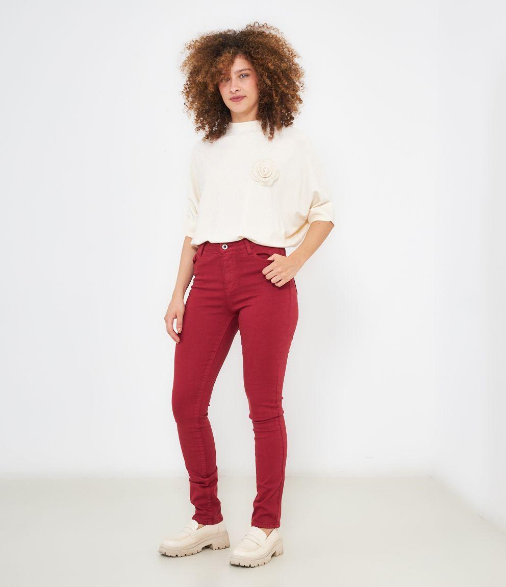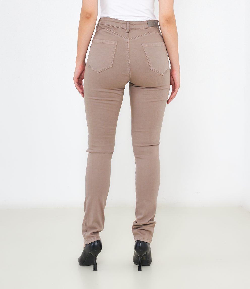 Pantaloni modello push up con 5 tasche e chiusura con zip e bottone.