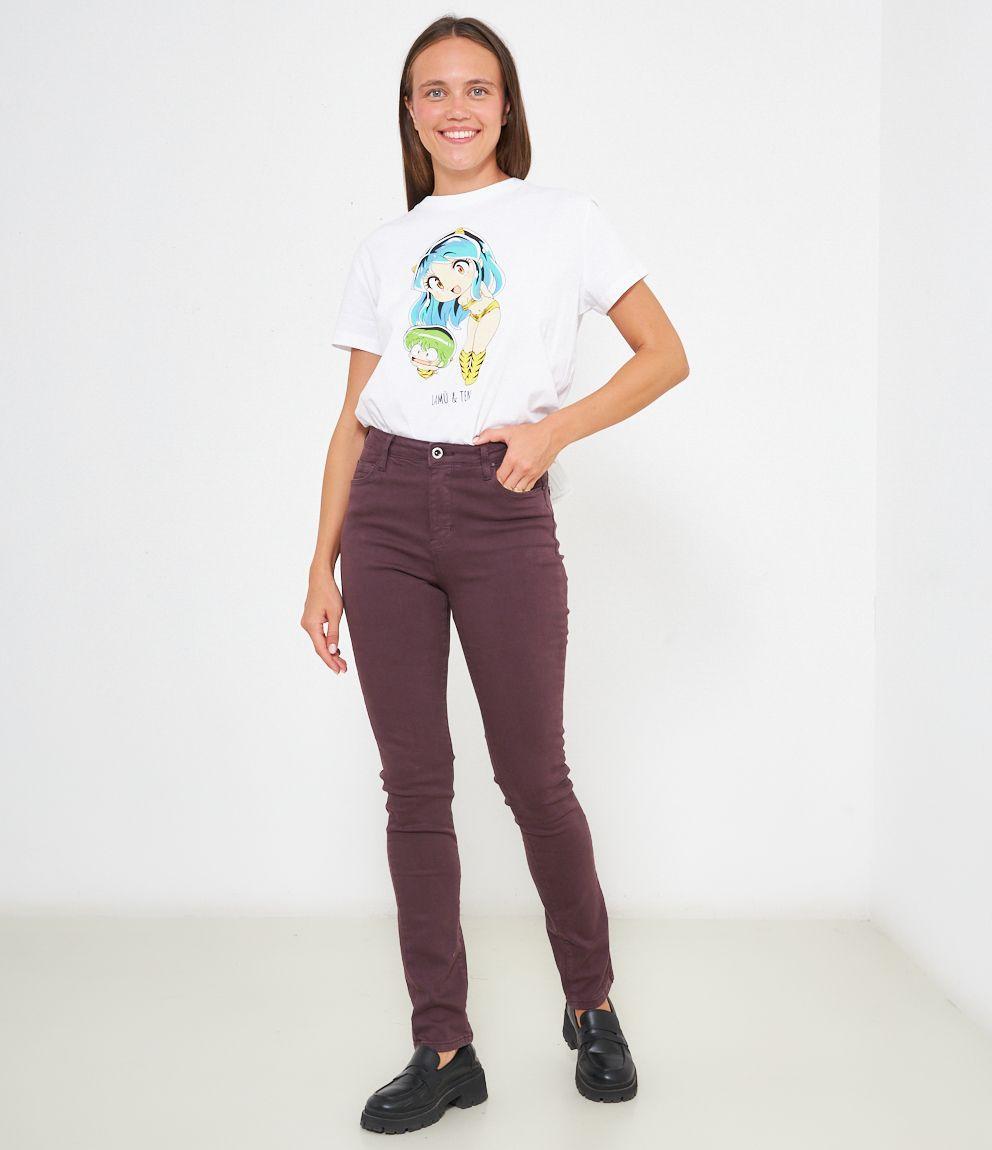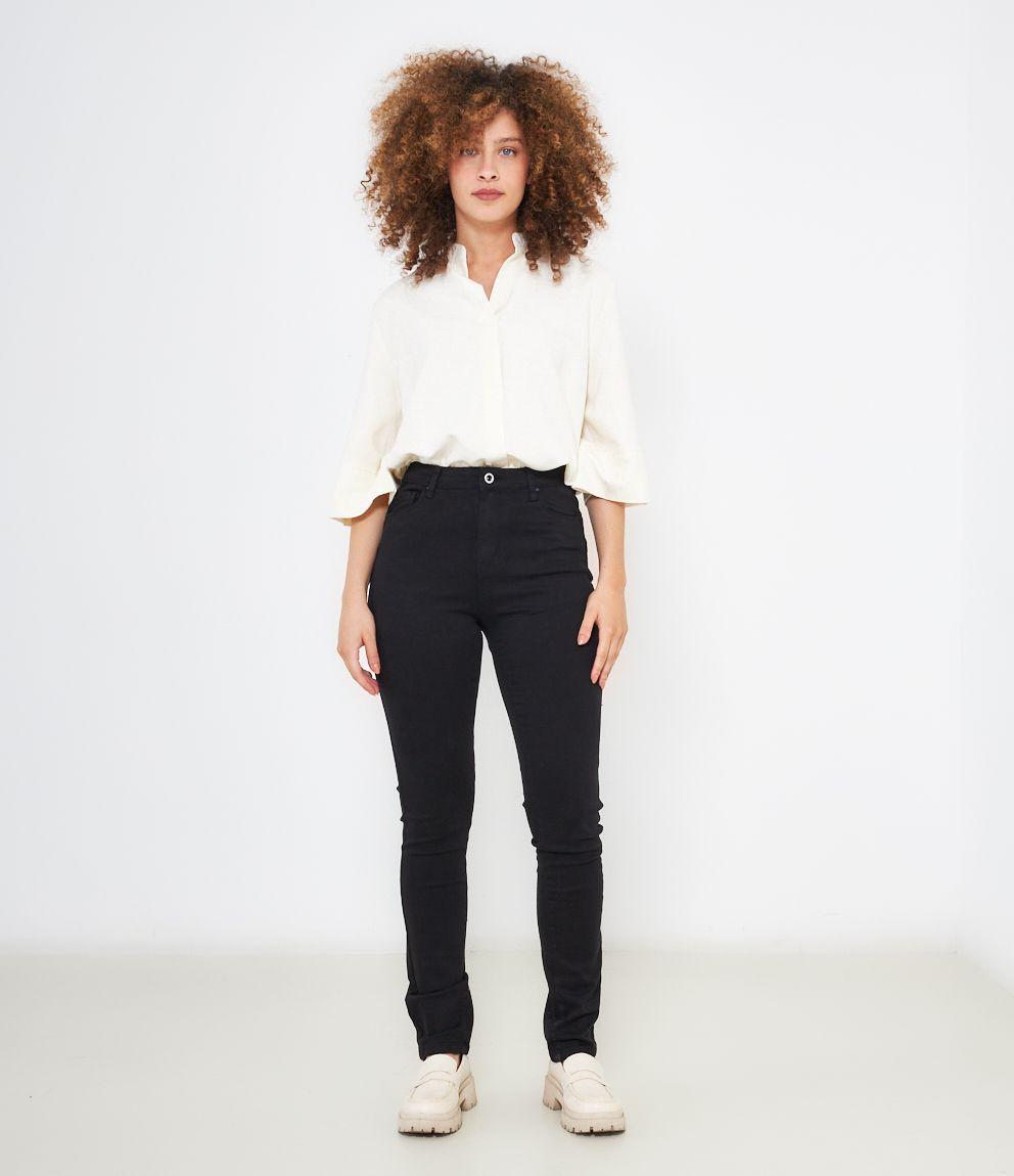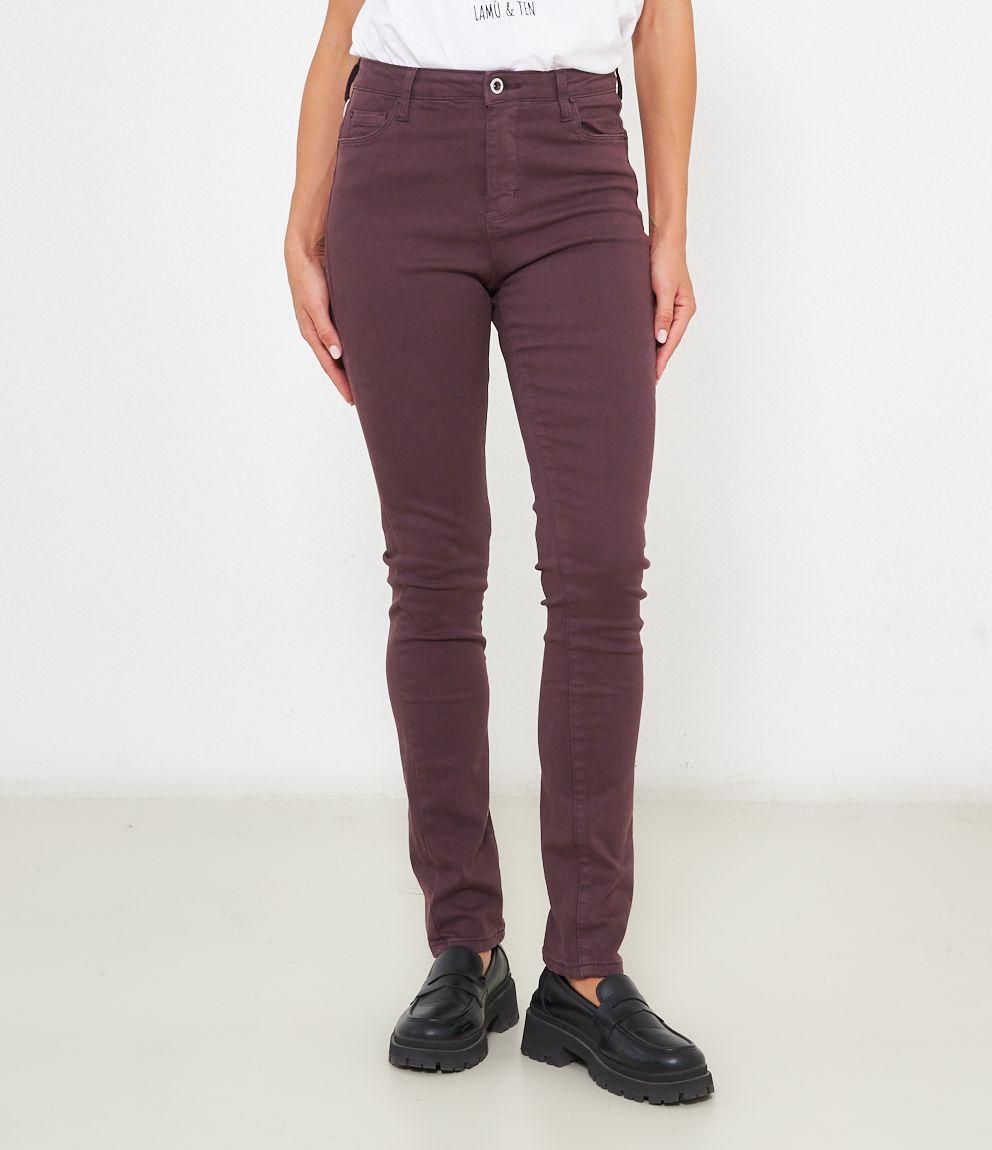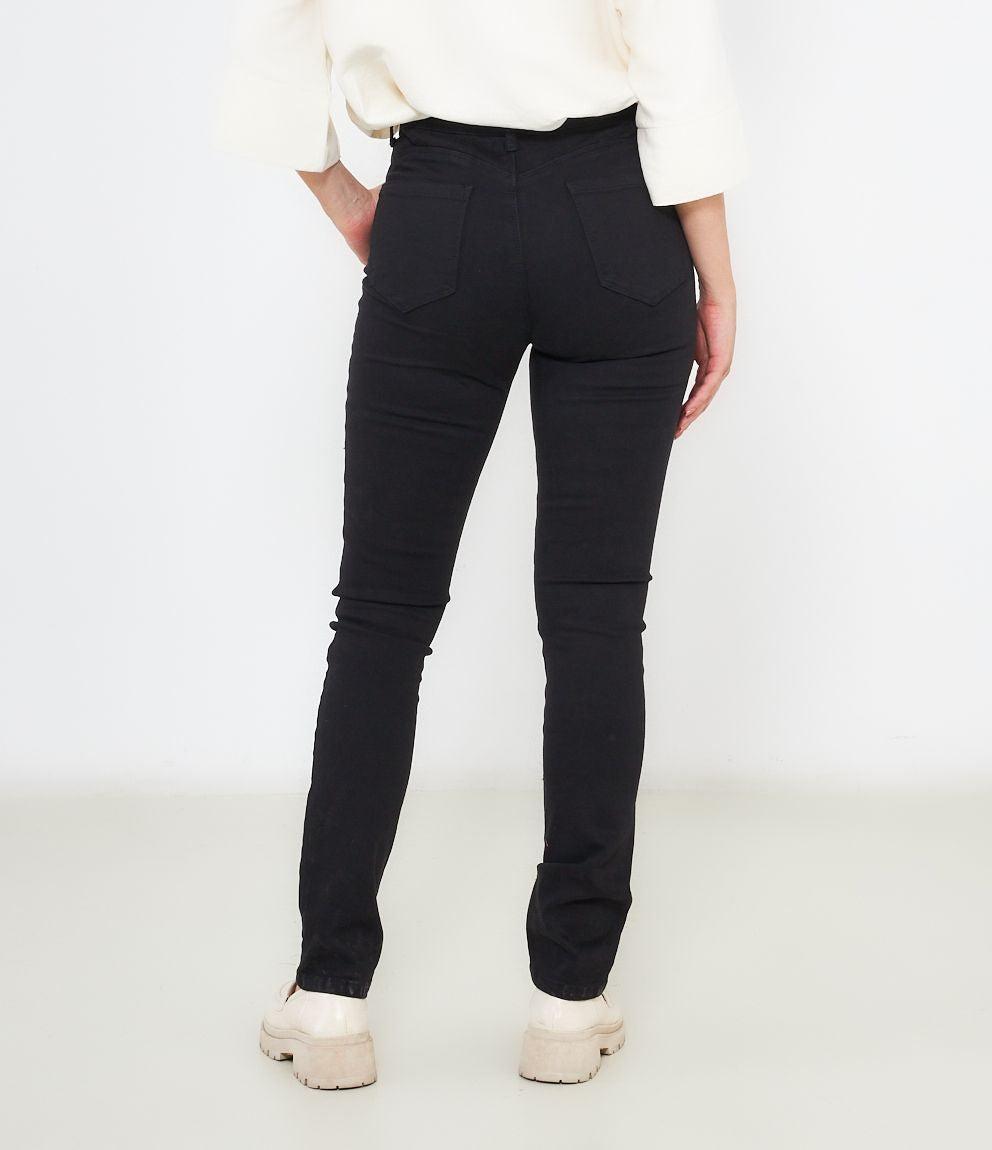 Pantaloni modello push up con 5 tasche e chiusura con zip e bottone.