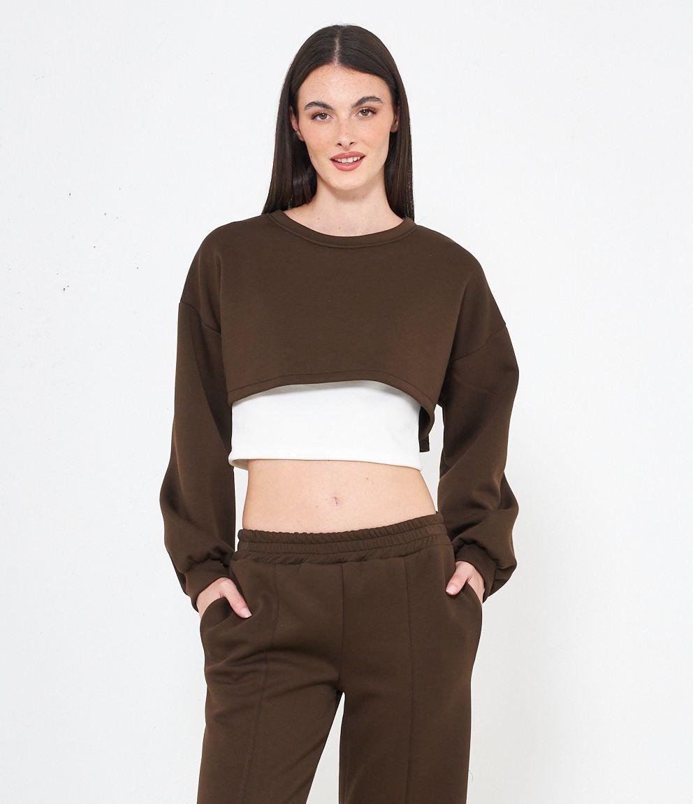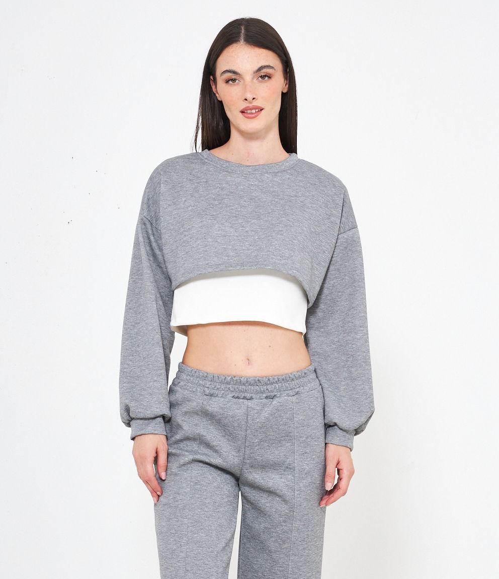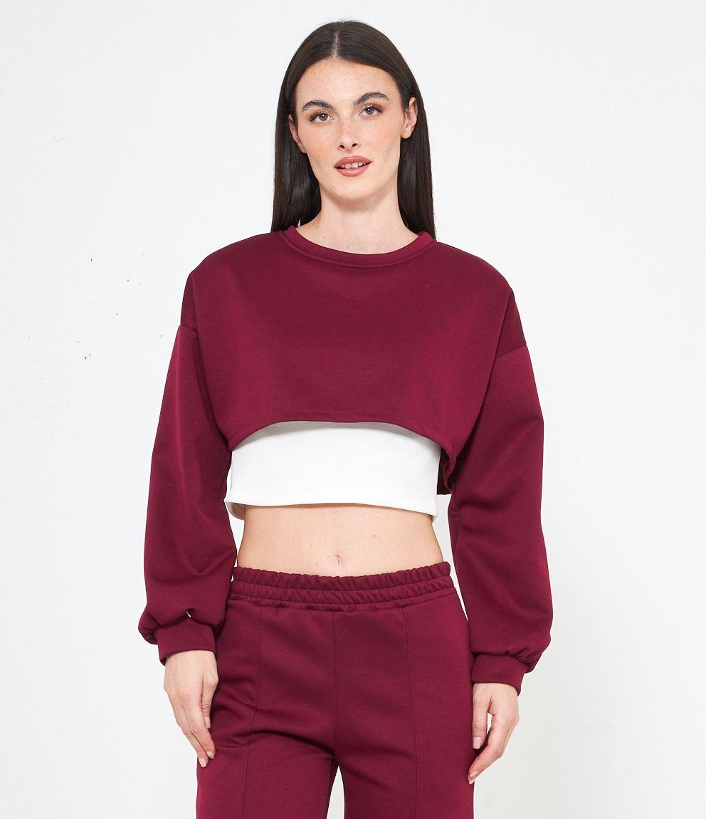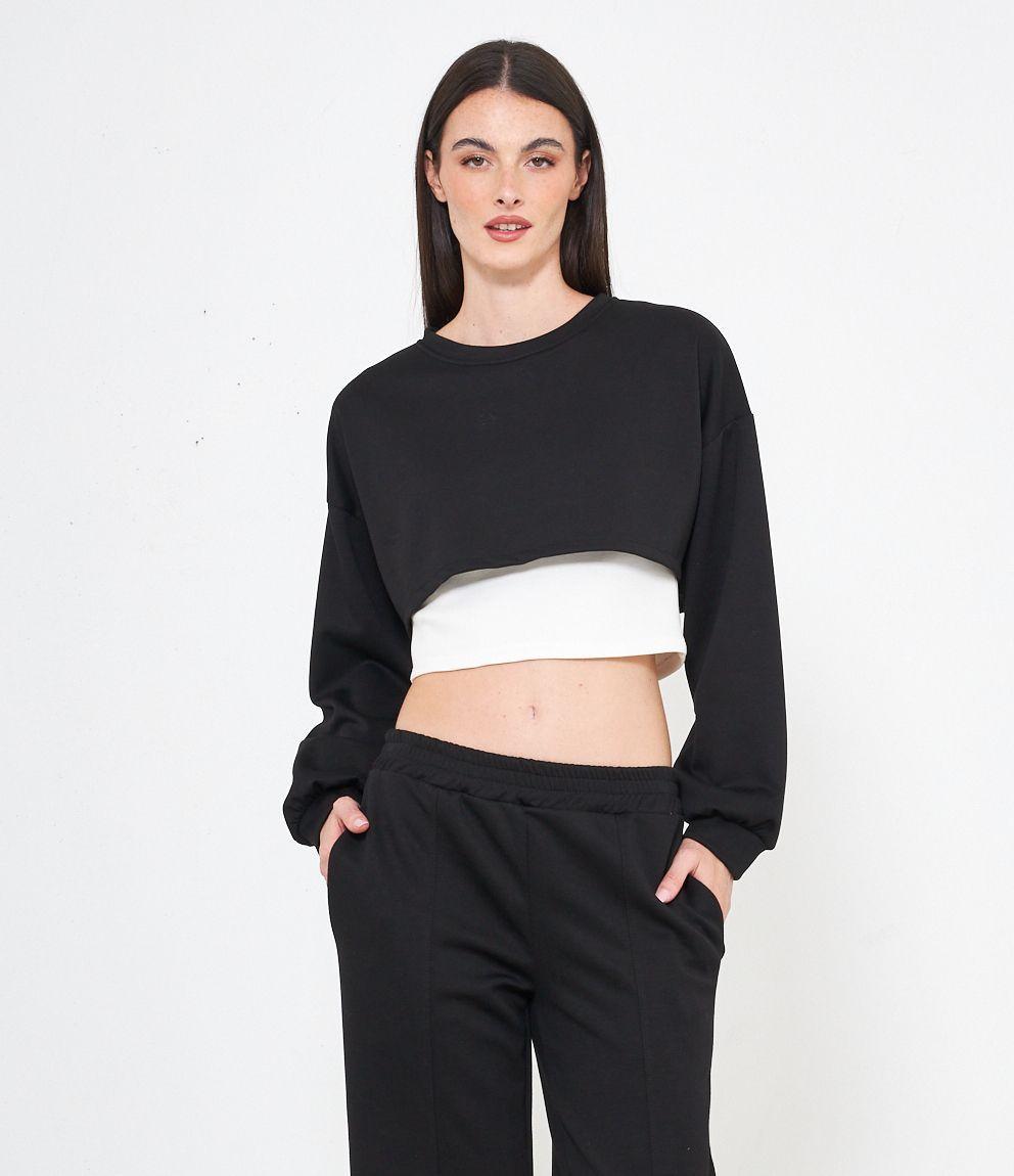 Maglia modello crop, doppio strato a contrasto.