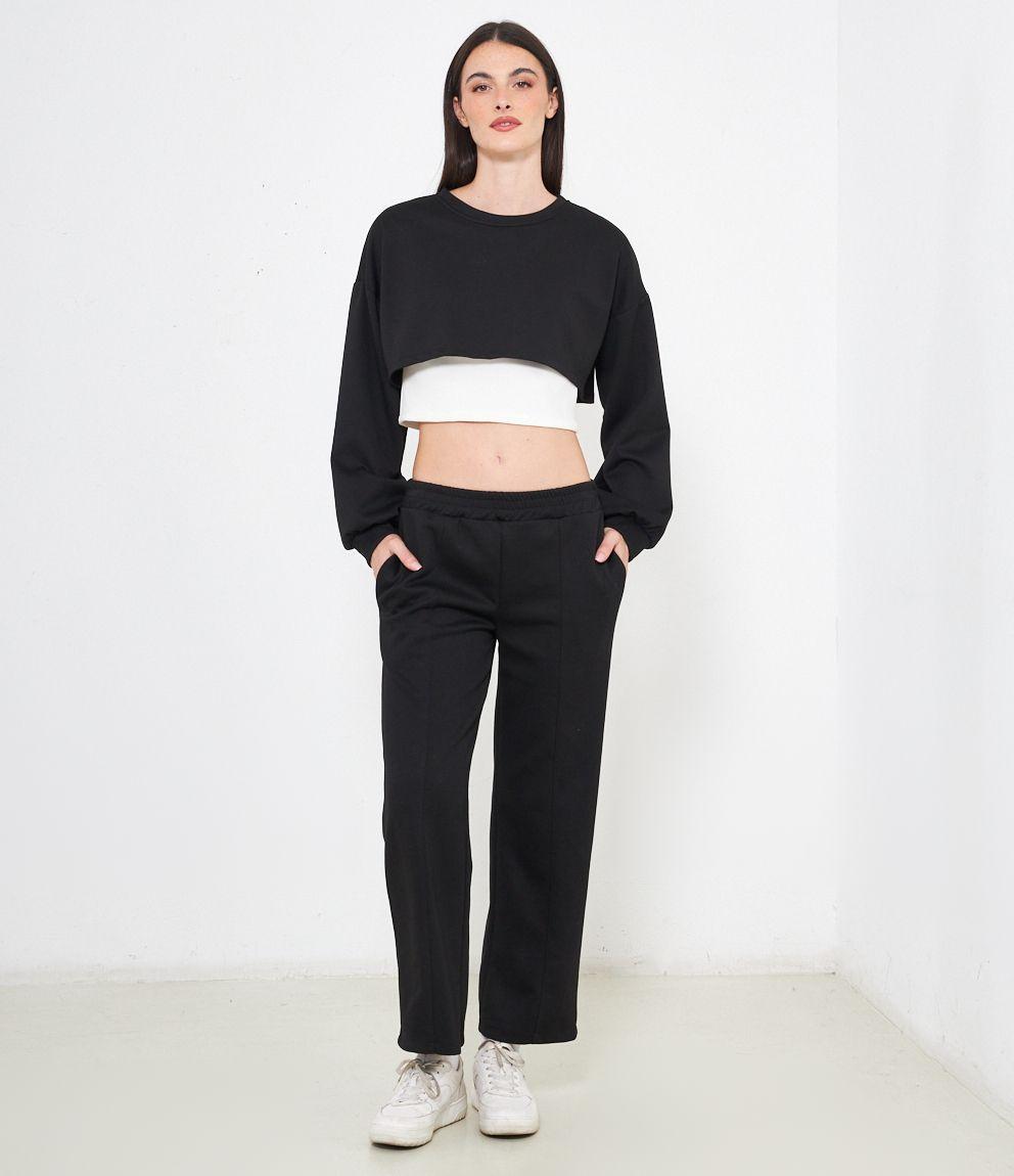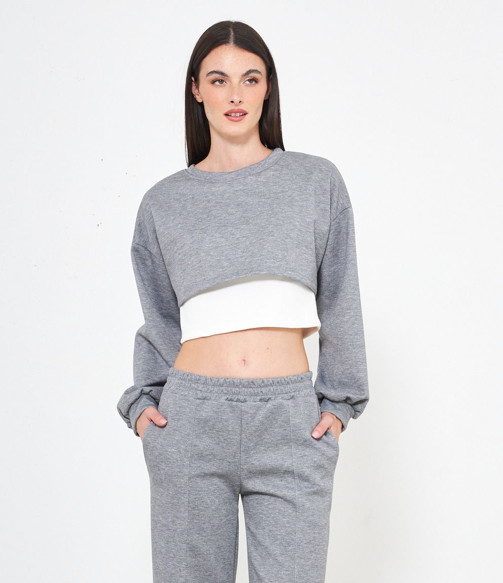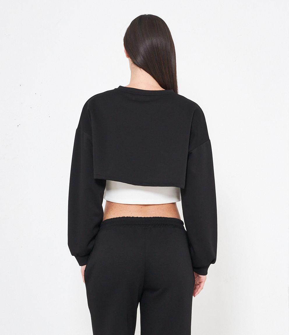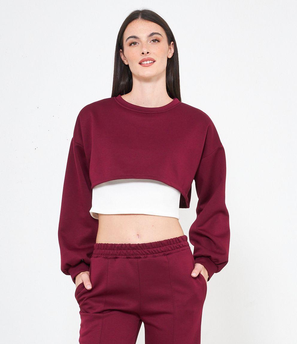 Maglia modello crop, doppio strato a contrasto.