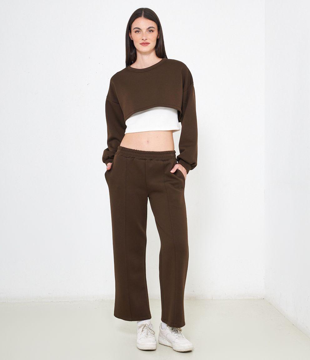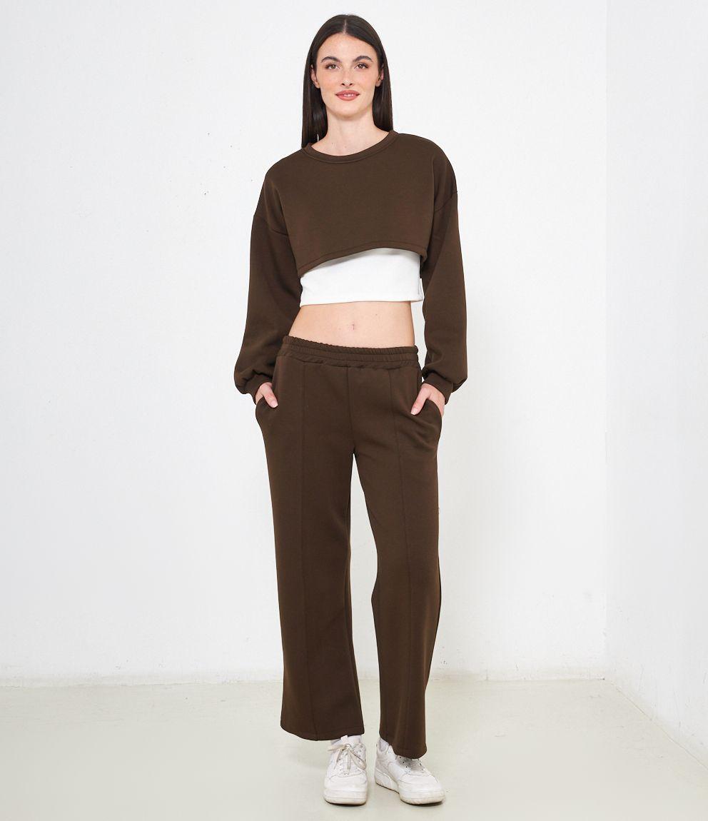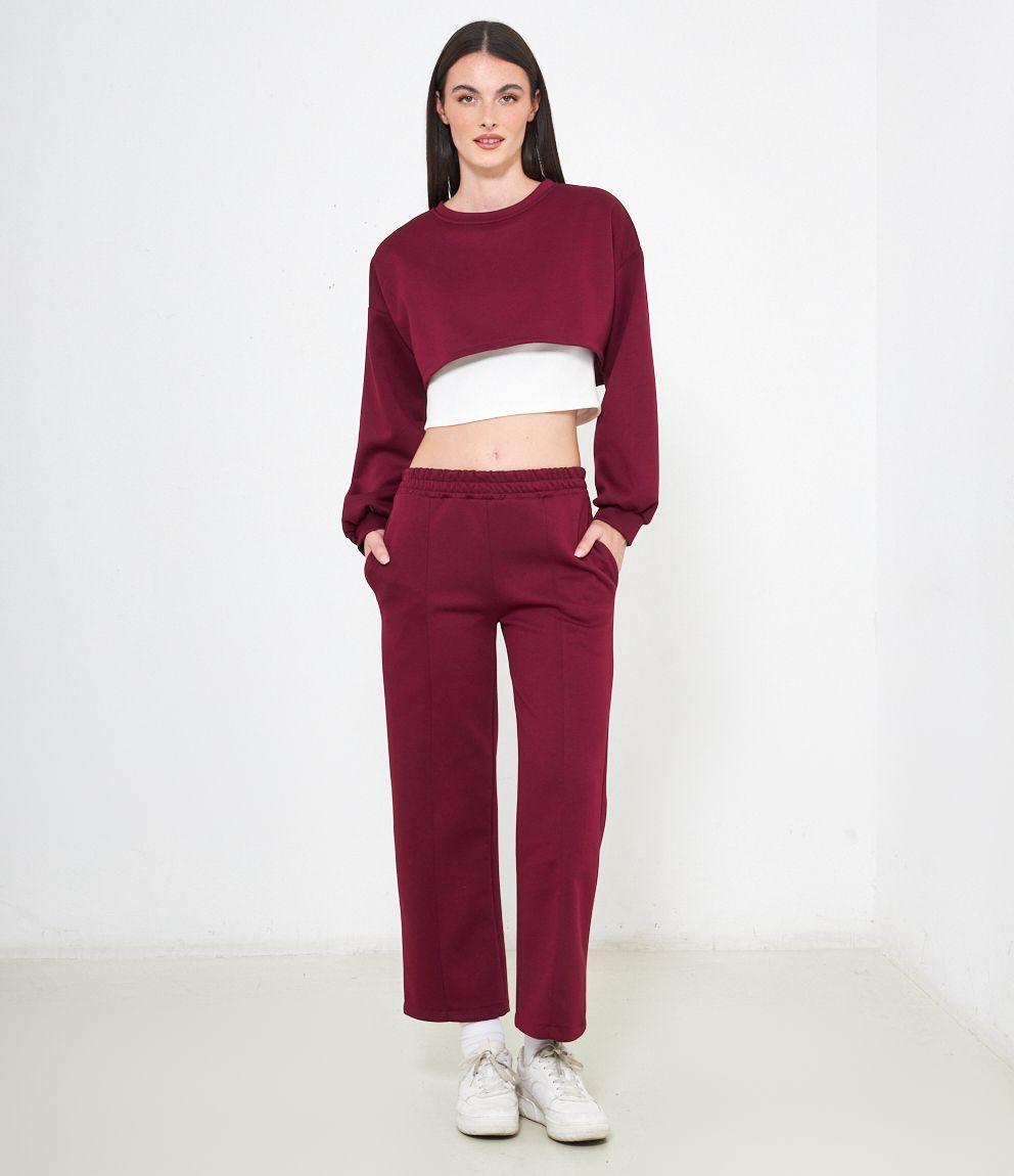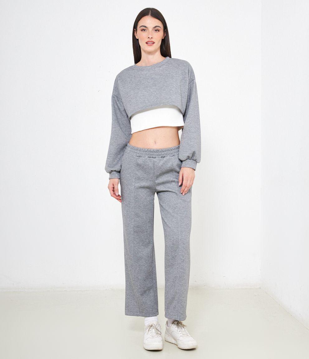 Maglia modello crop, doppio strato a contrasto.