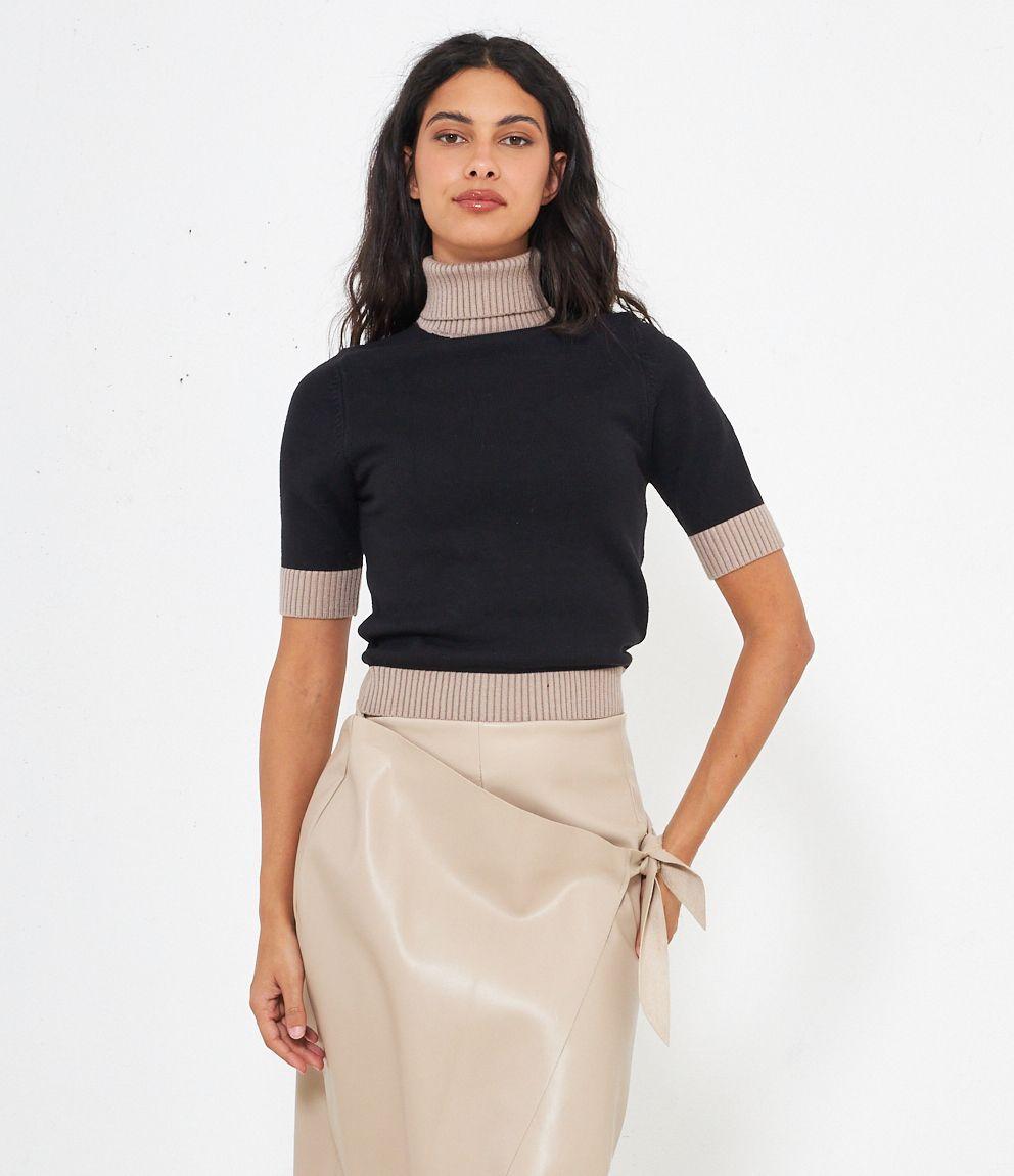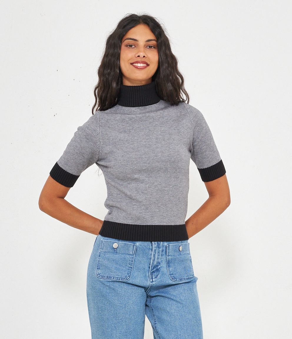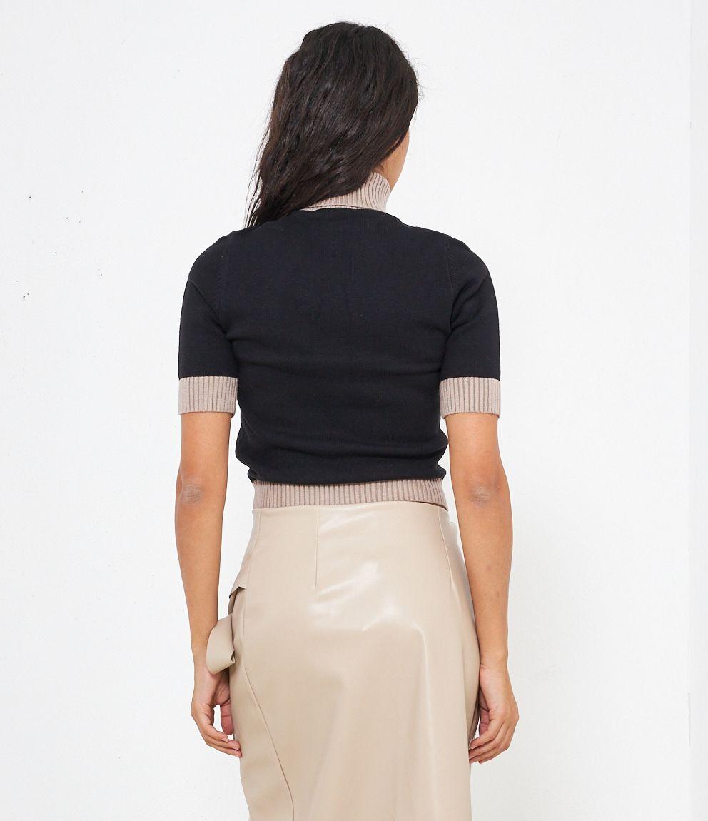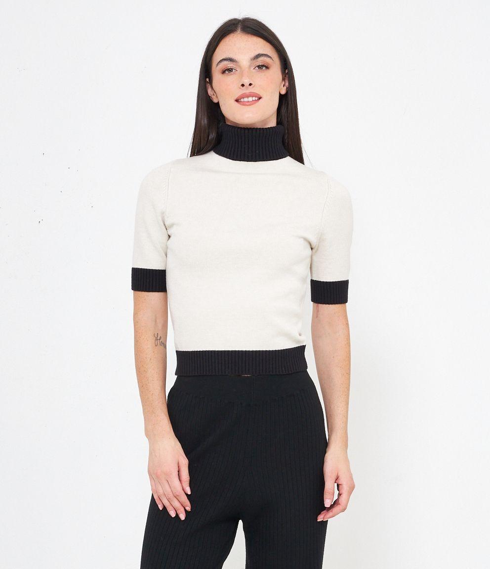 Maglia modello regular con collo alto e bordi a costine a contrasto.