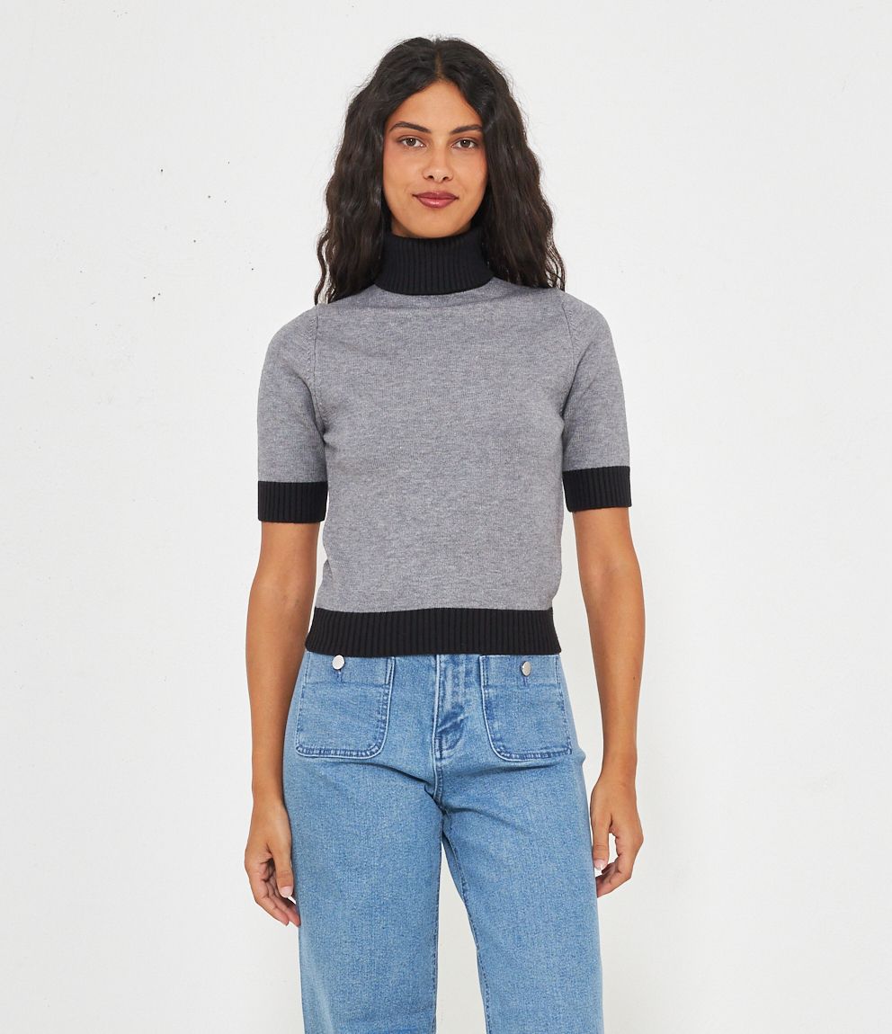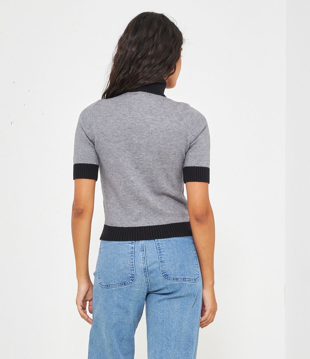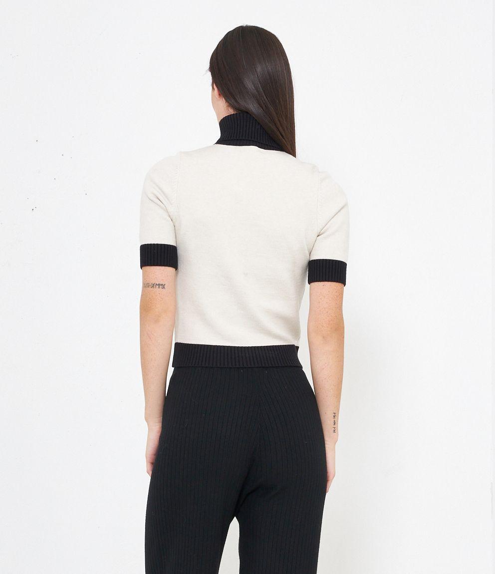 Maglia modello regular con collo alto e bordi a costine a contrasto.