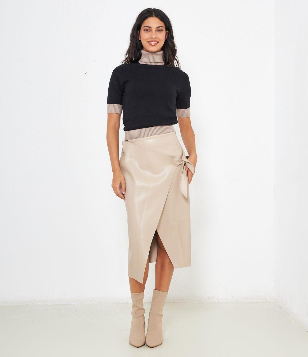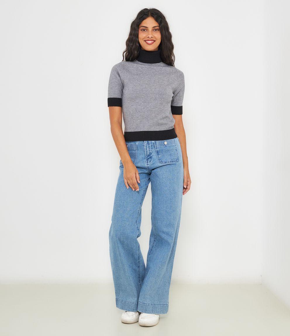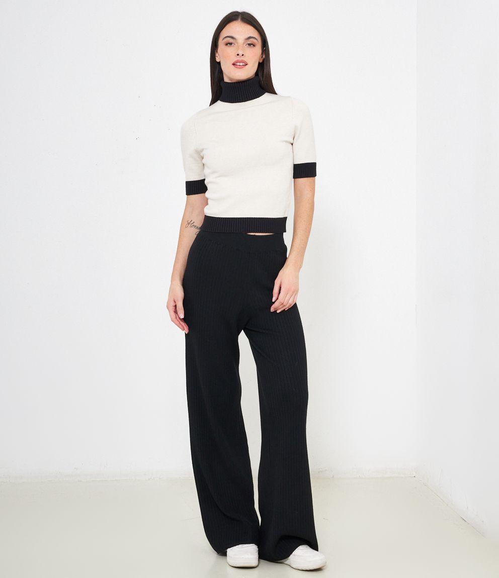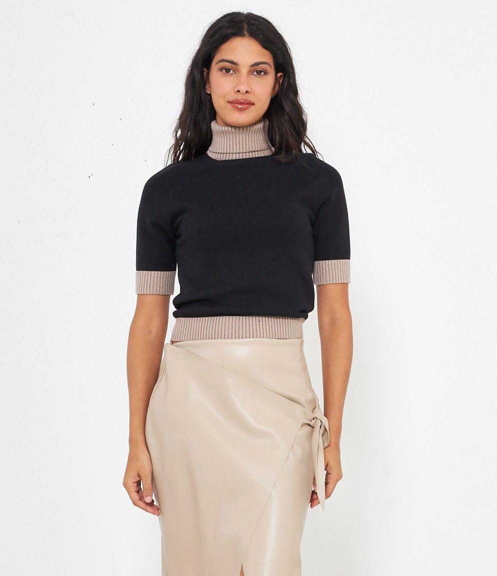 Maglia modello regular con collo alto e bordi a costine a contrasto.