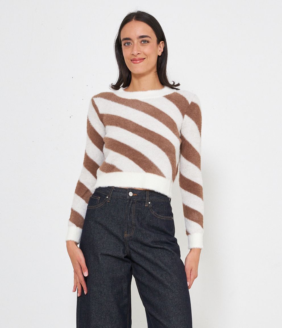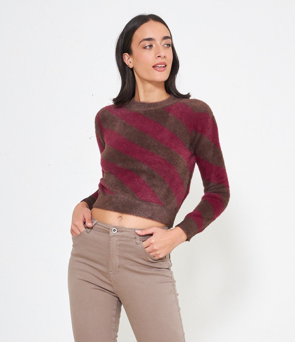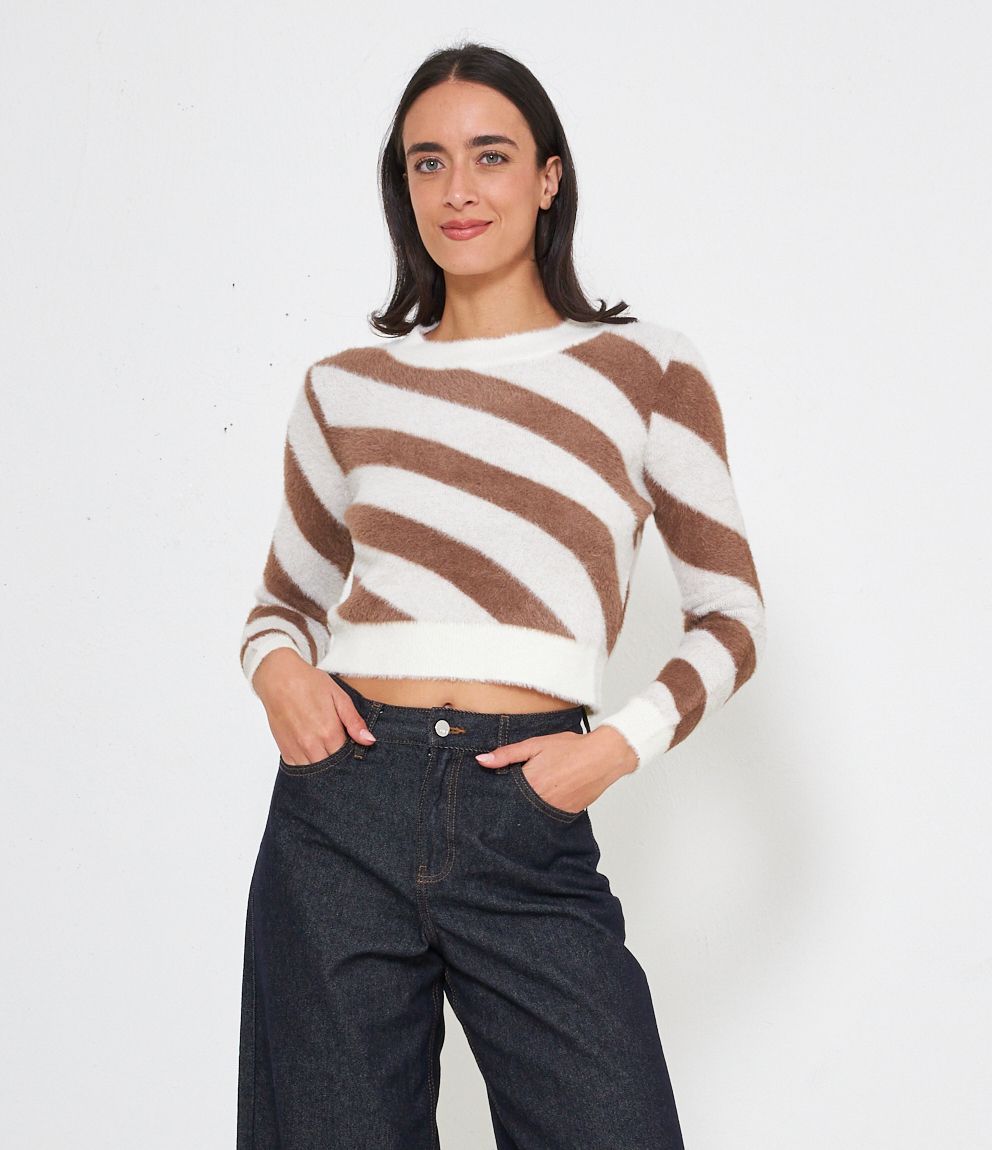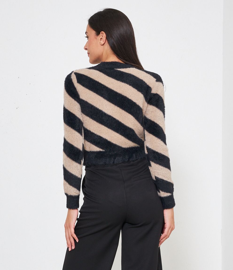 Maglia effetto peluche modello crop con fantasia righe.