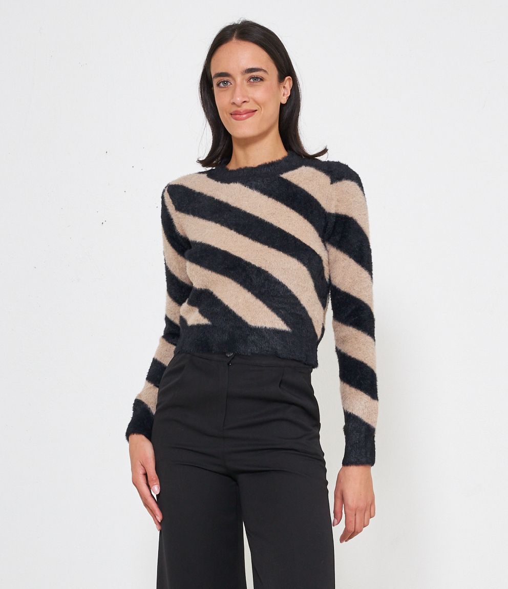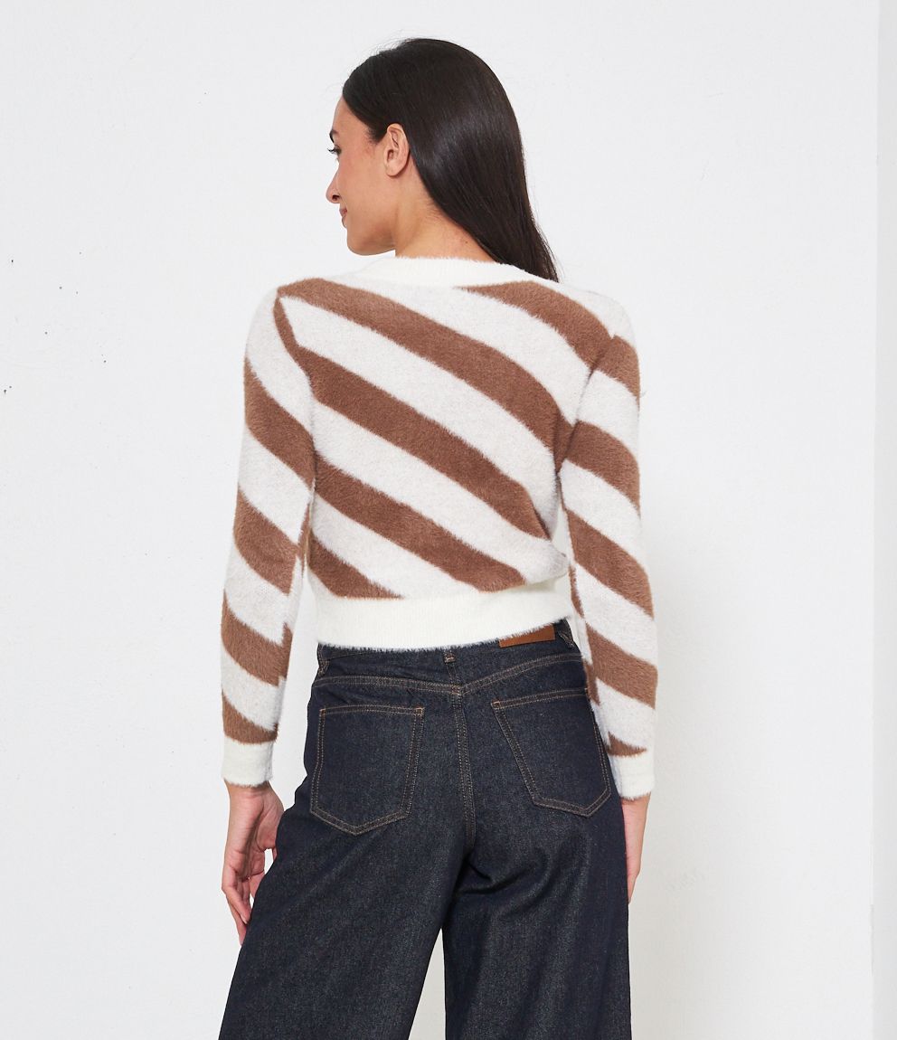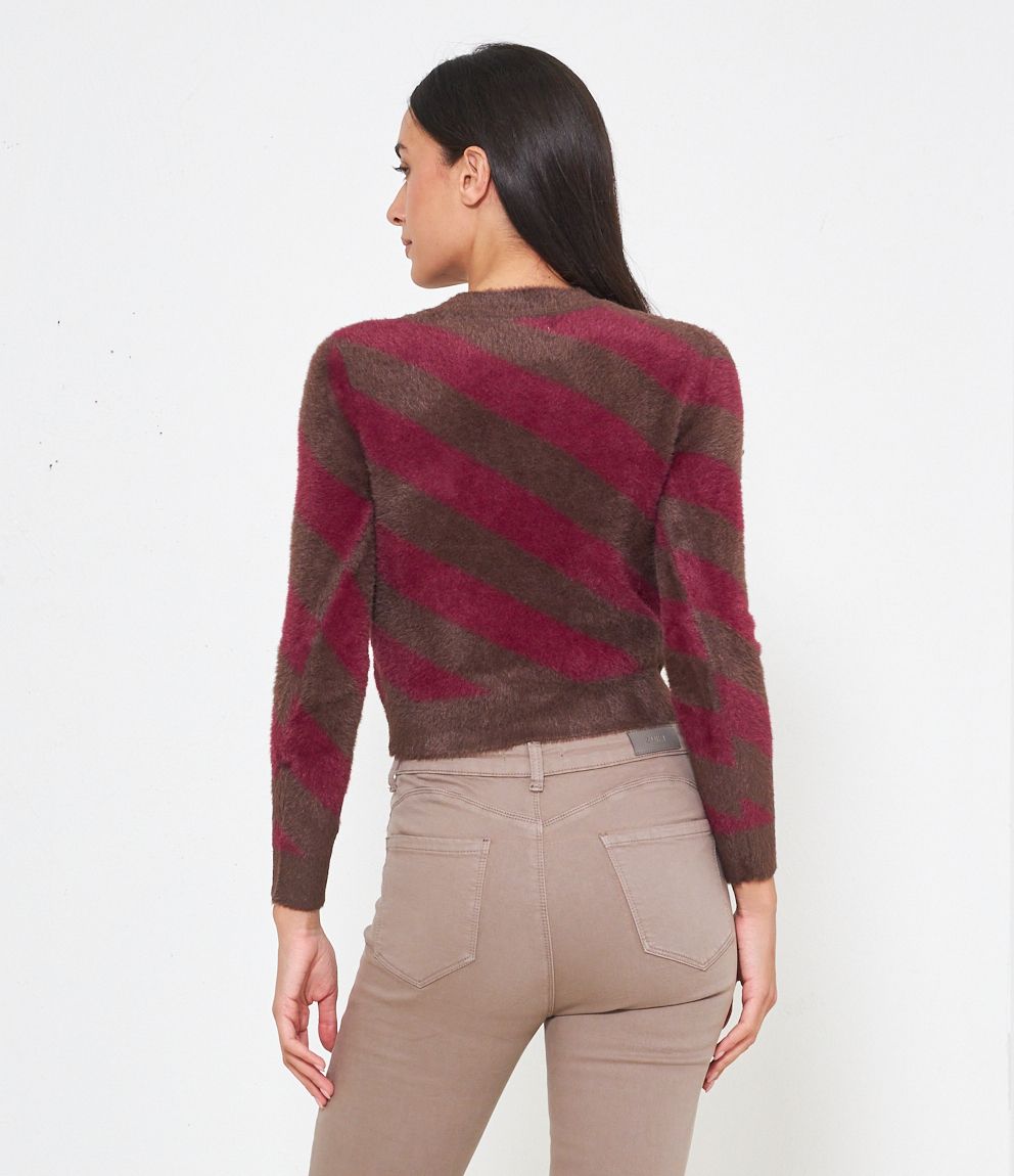 Maglia effetto peluche modello crop con fantasia righe.