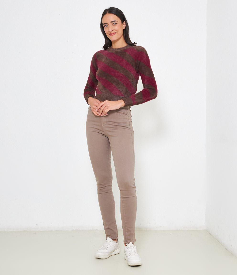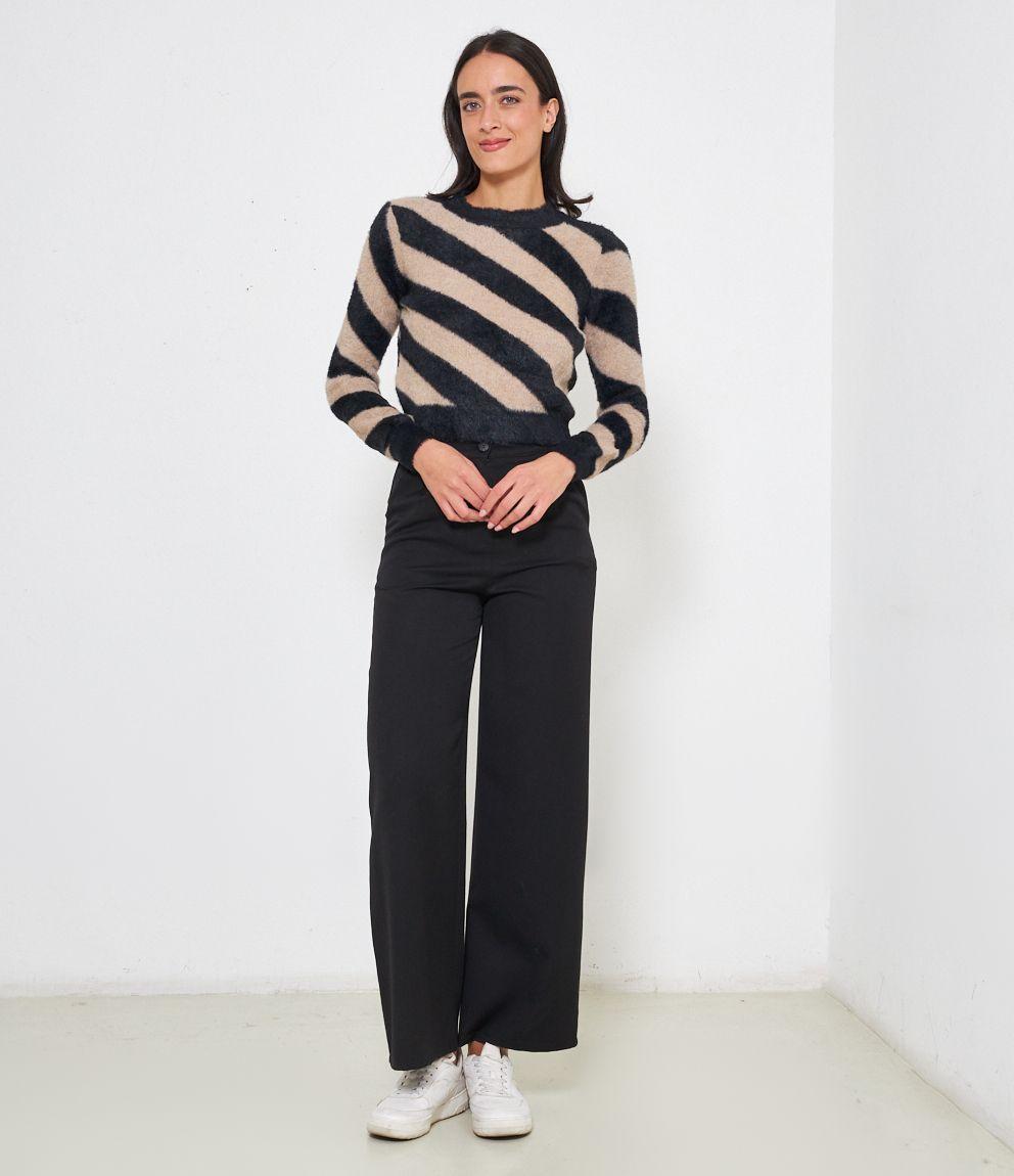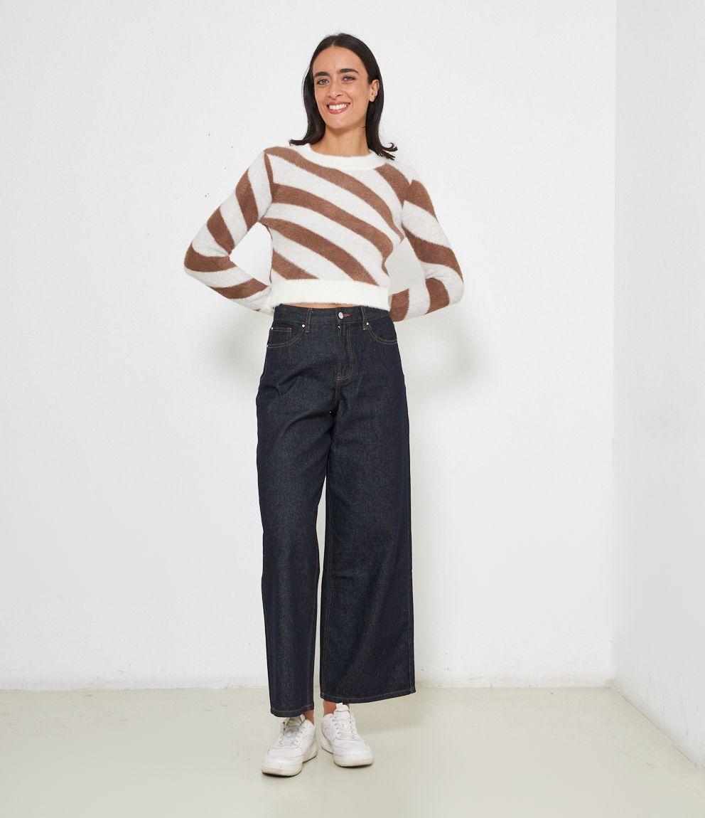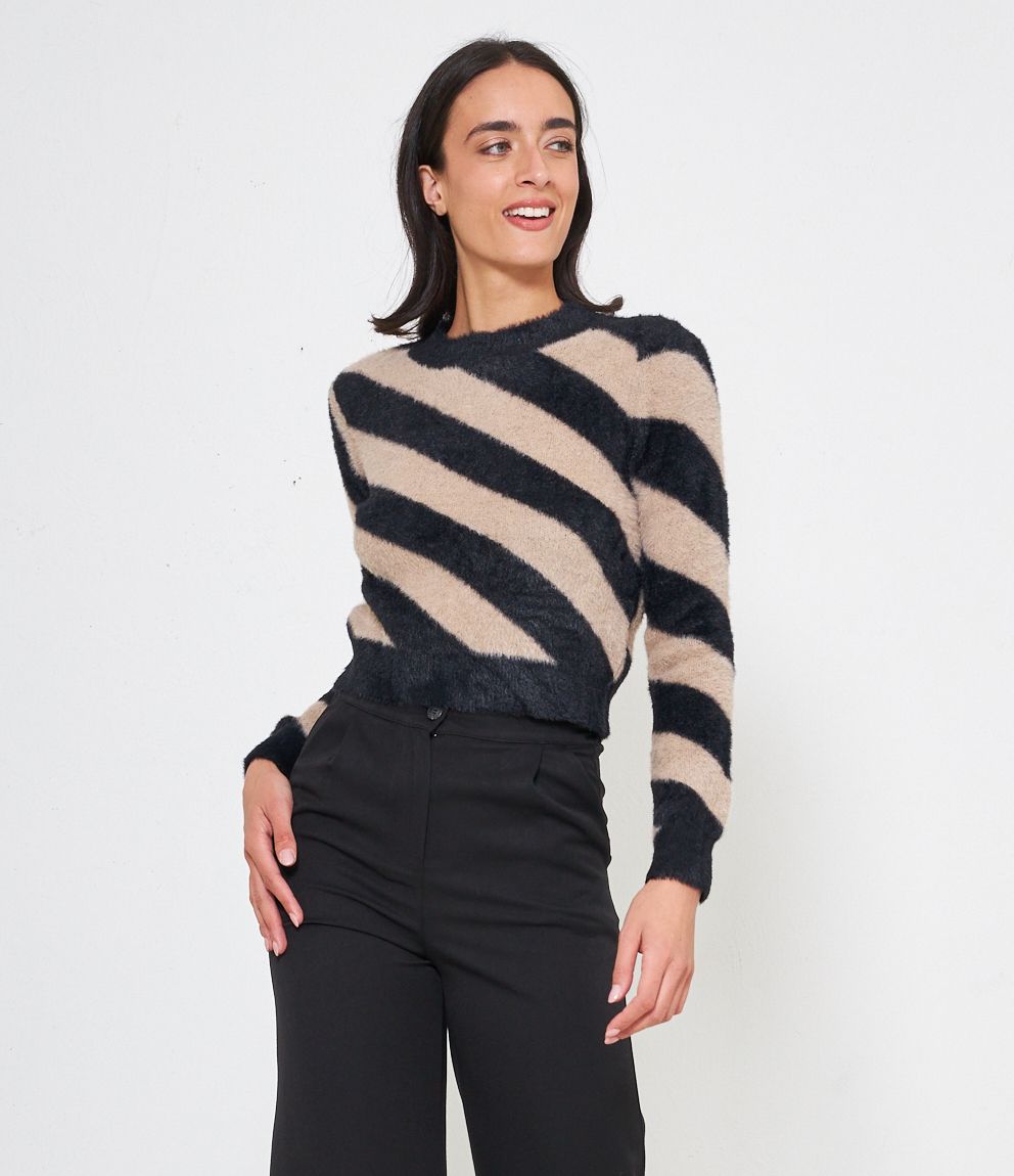 Maglia effetto peluche modello crop con fantasia righe.