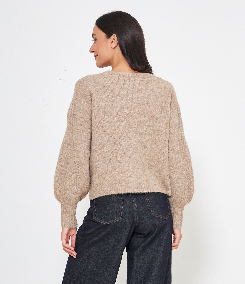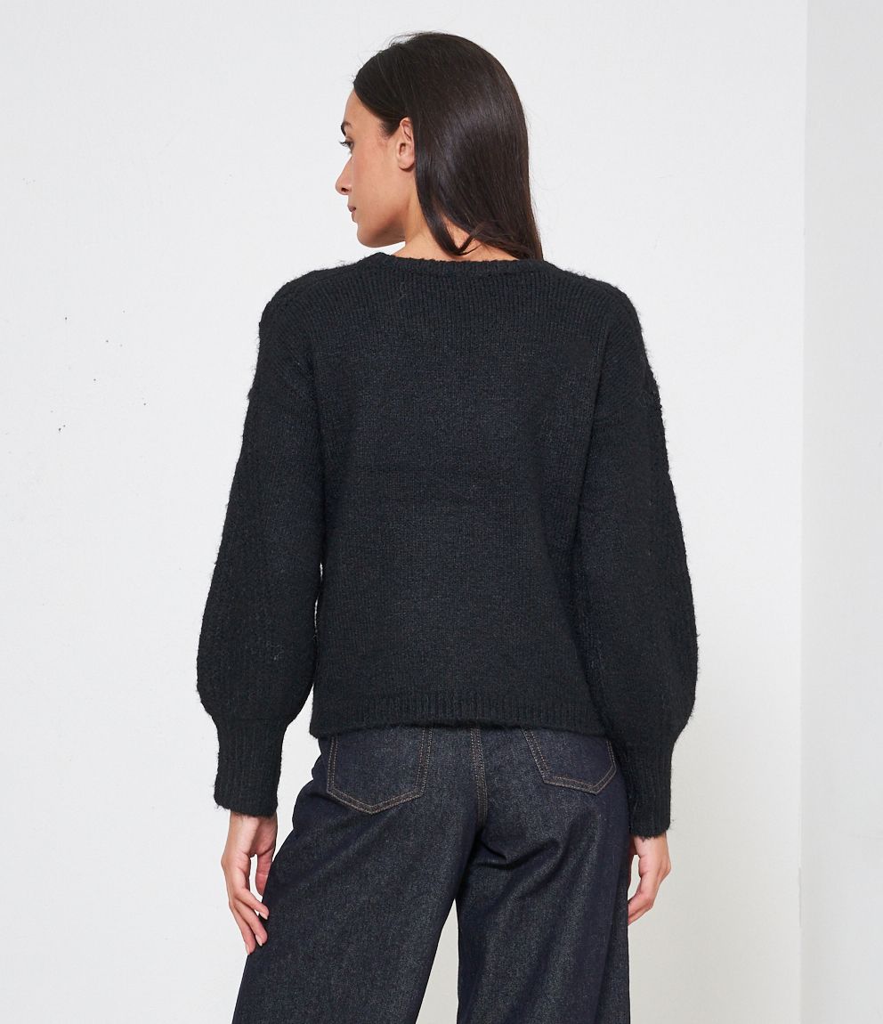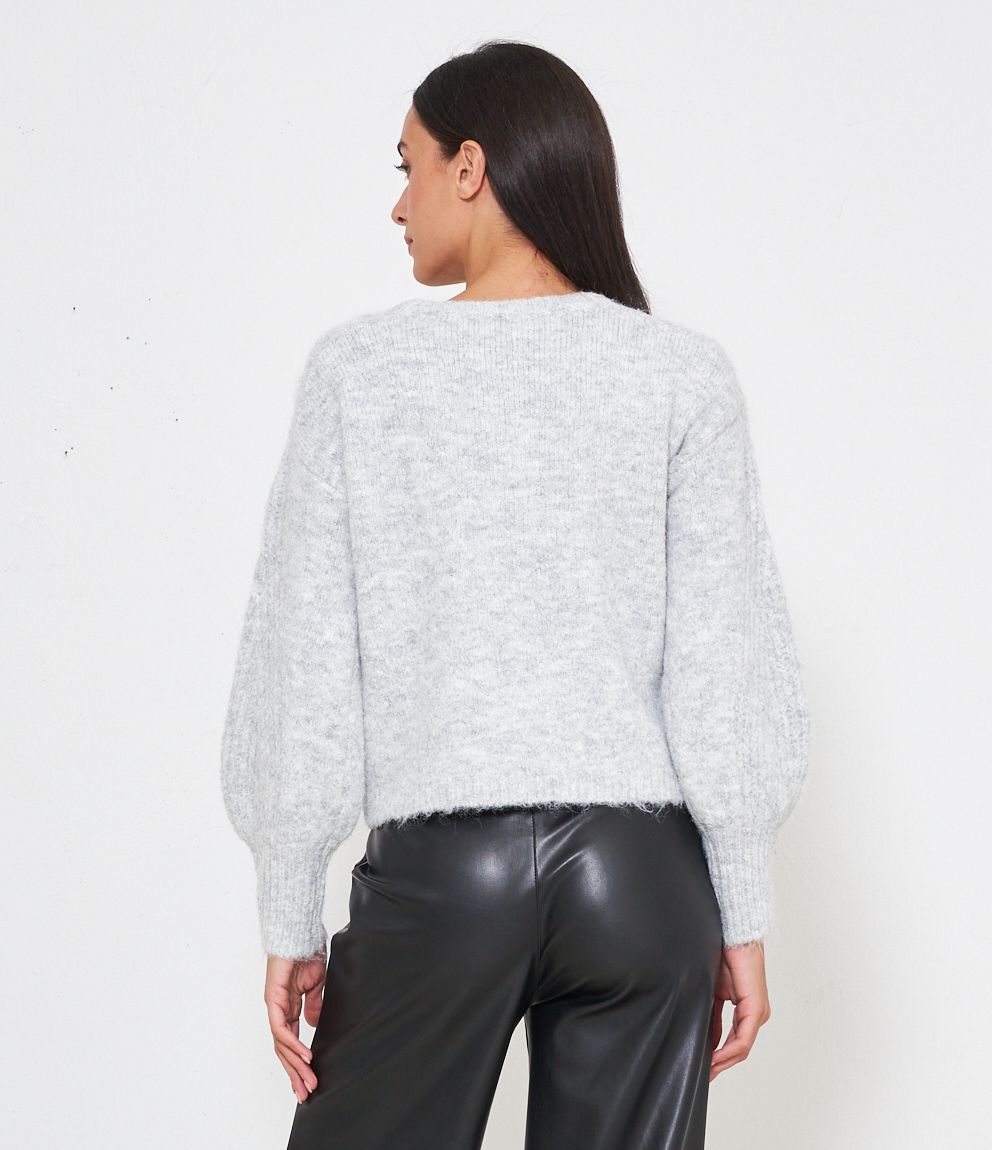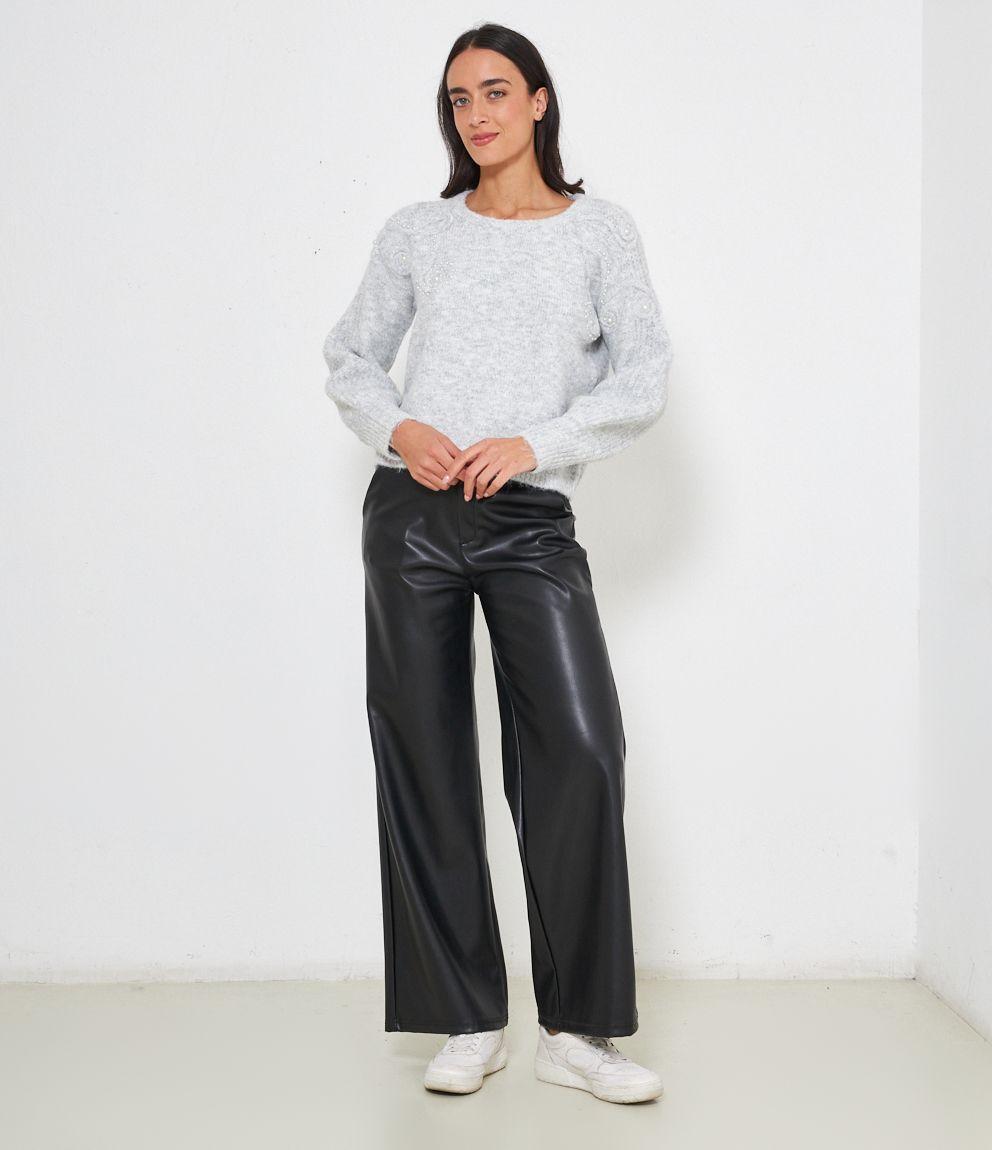 Maglia comfy con trama a rilievo e perle, scollo tondo e bordi a costine.