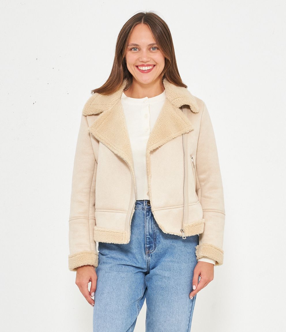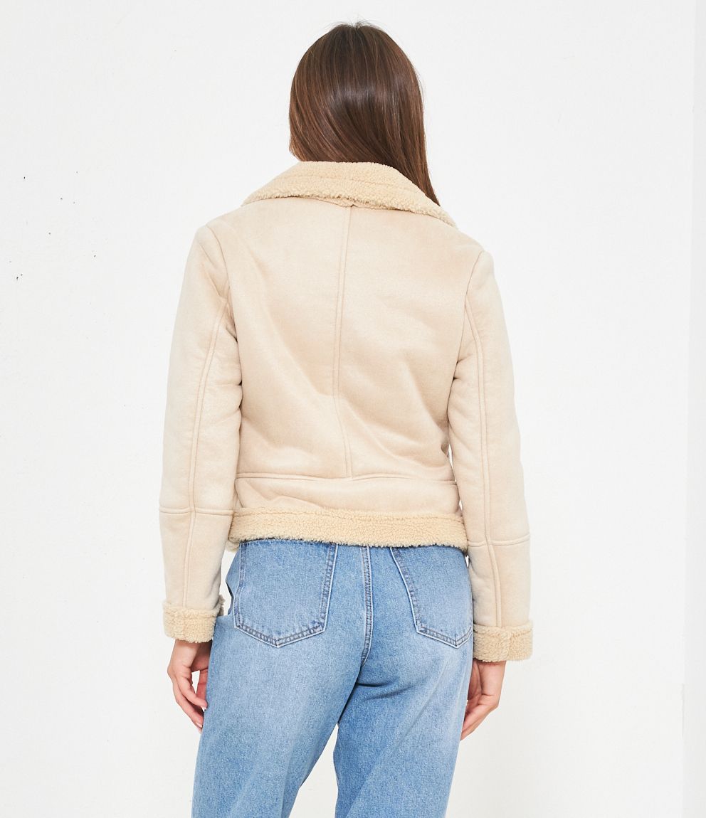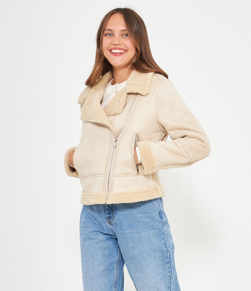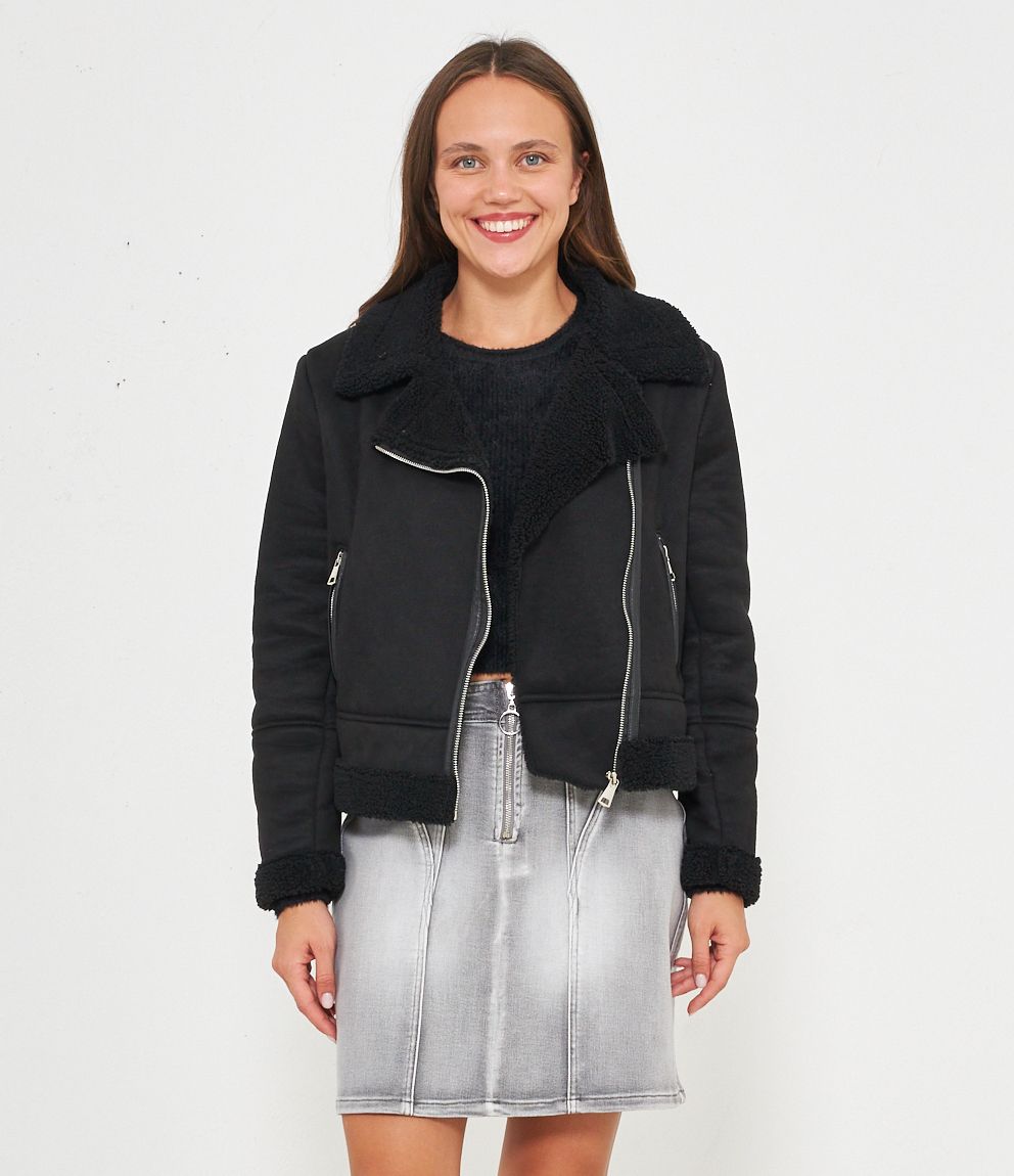 Giubbino modello comfy con interno in teddy, tasche laterali e chiusura con zip.