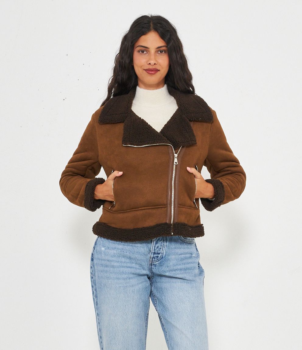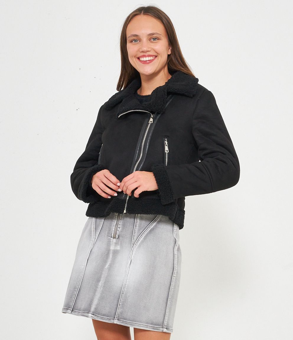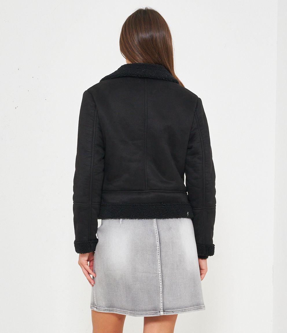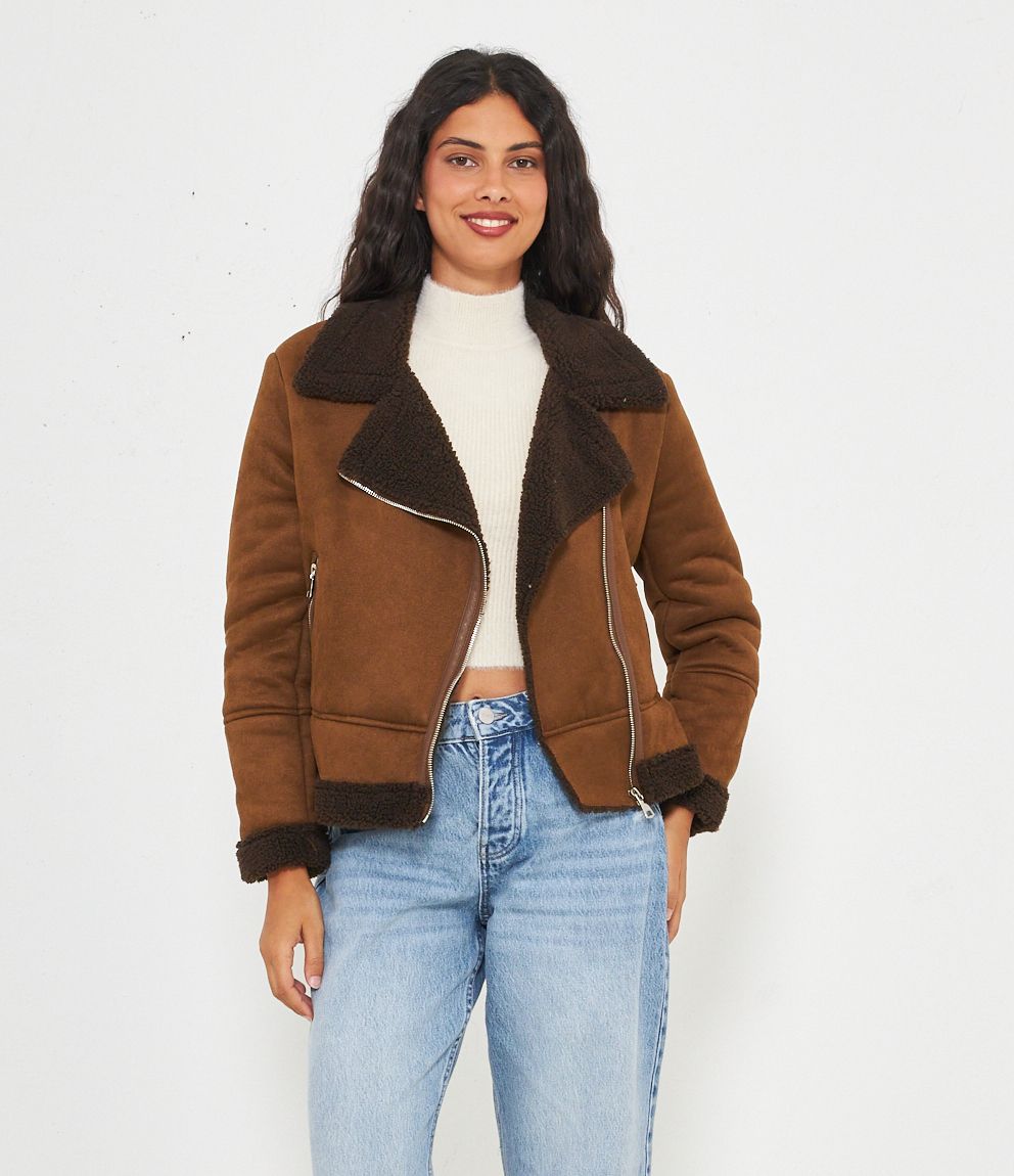 Giubbino modello comfy con interno in teddy, tasche laterali e chiusura con zip.