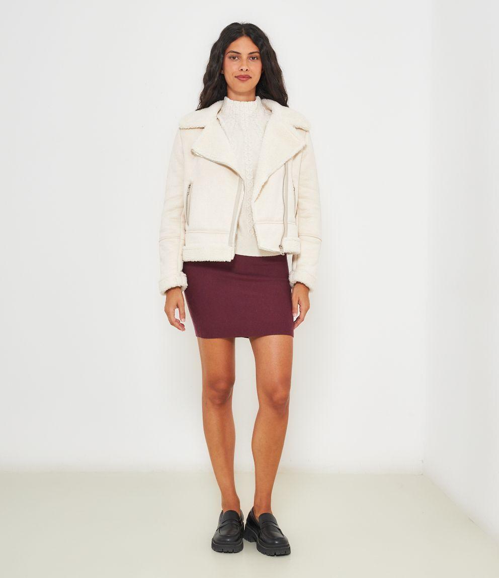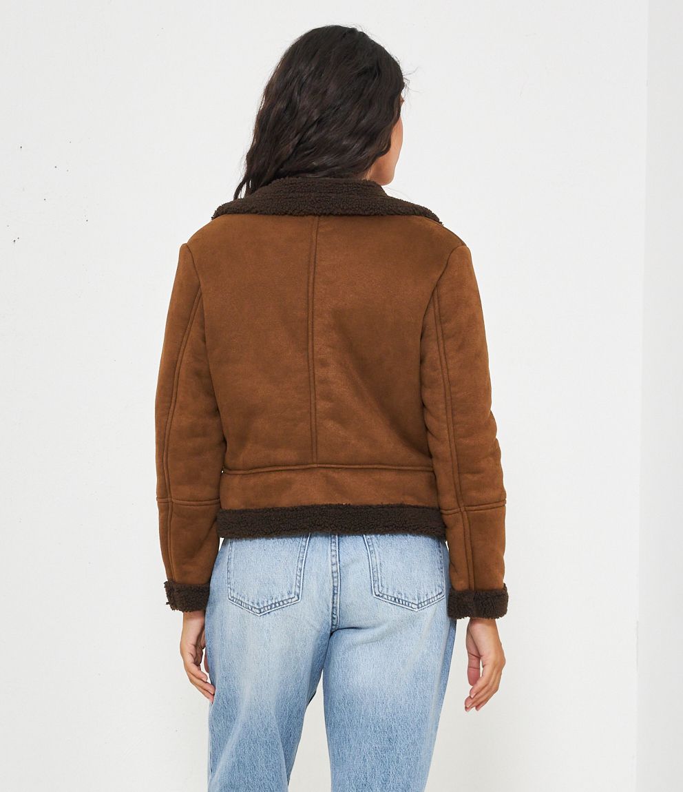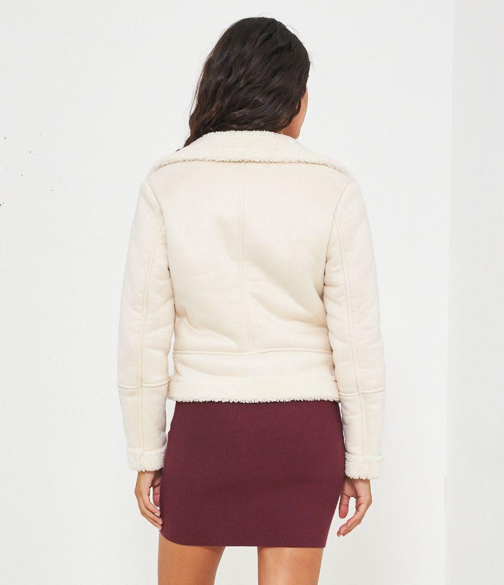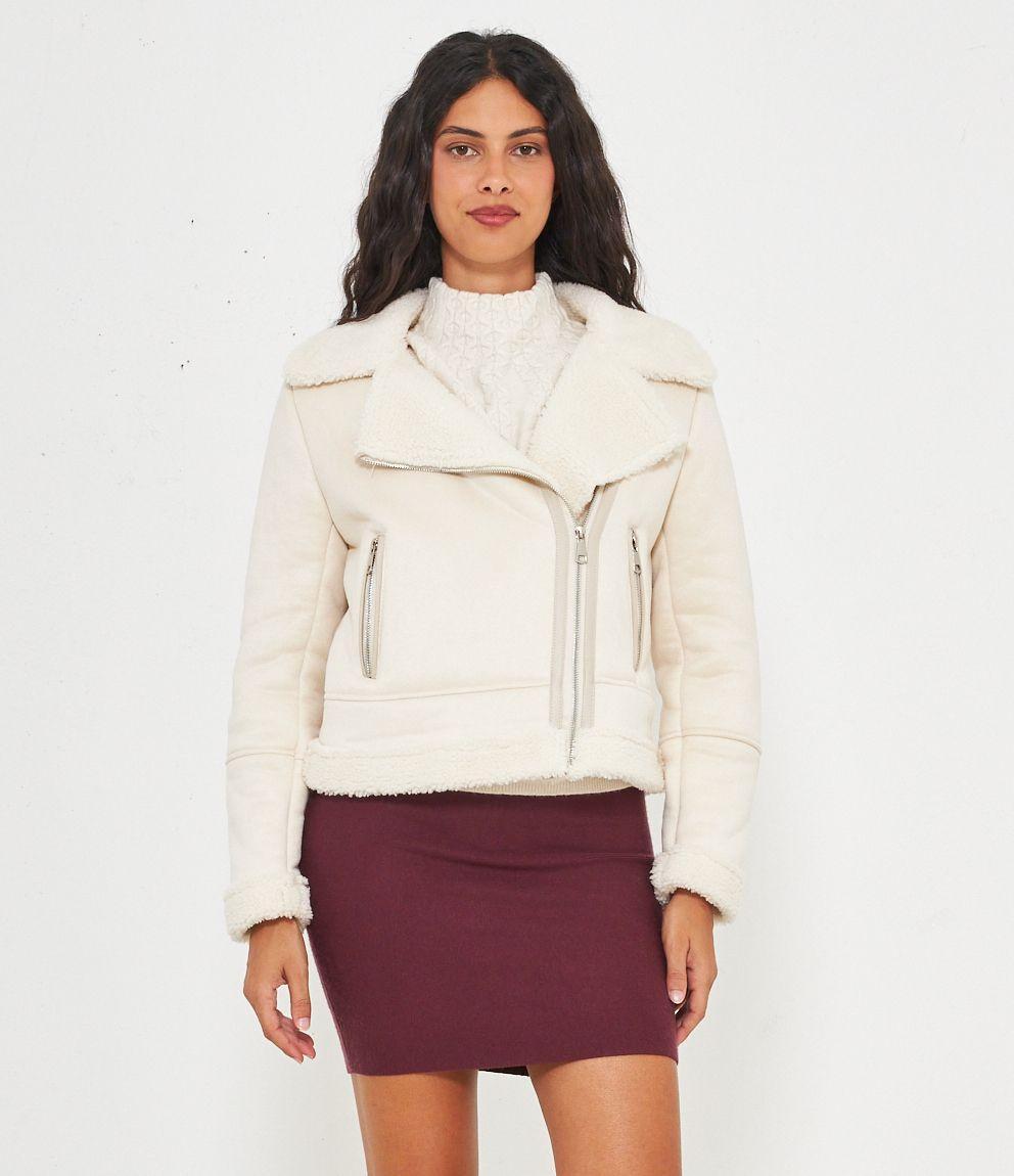 Giubbino modello comfy con interno in teddy, tasche laterali e chiusura con zip.