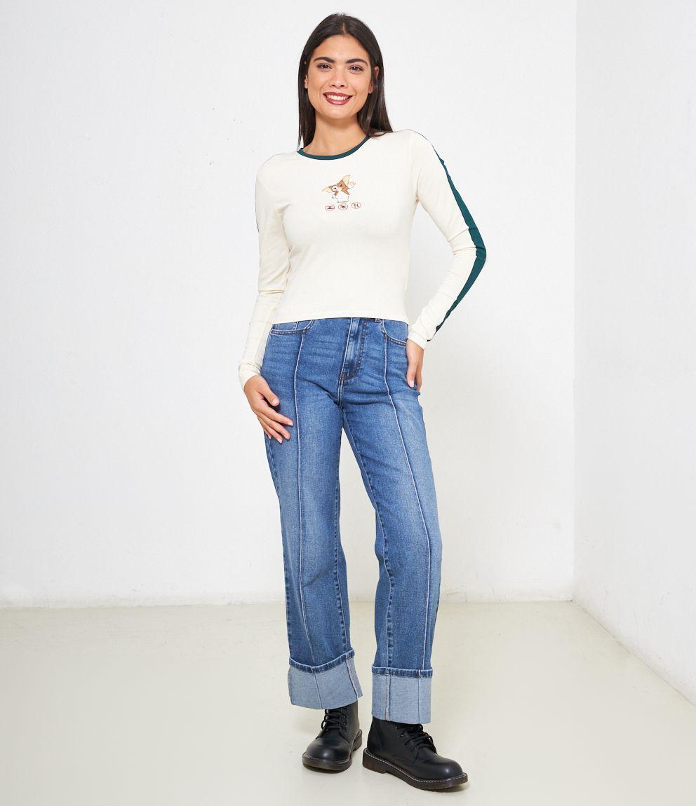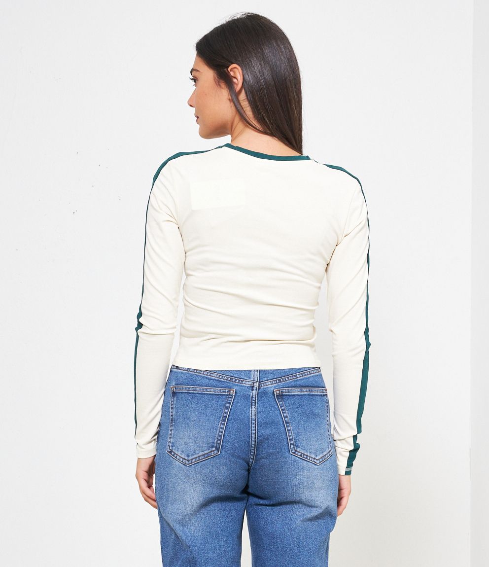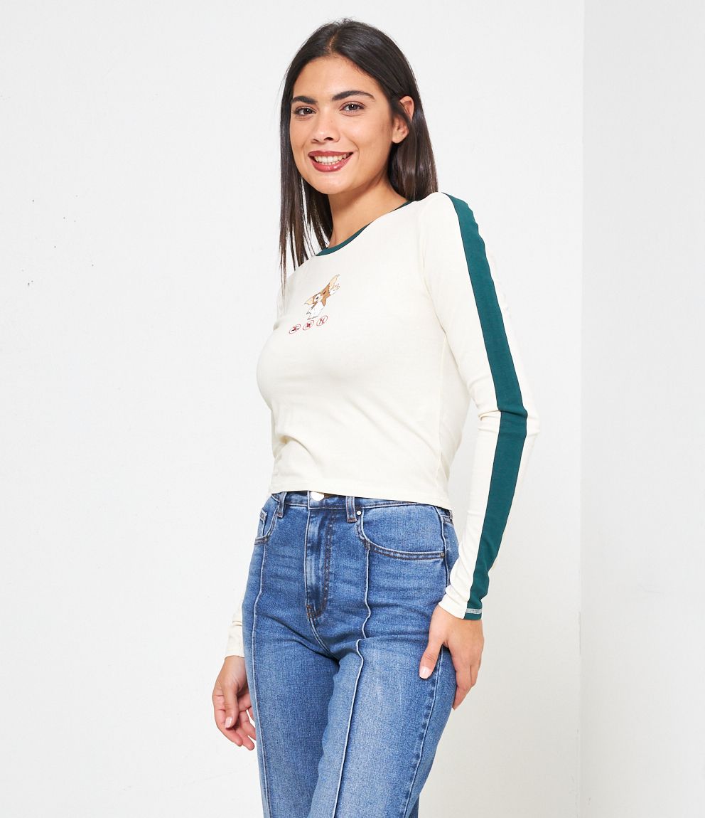 Maglia modello slim fit crop con stampa grafica frontale.
