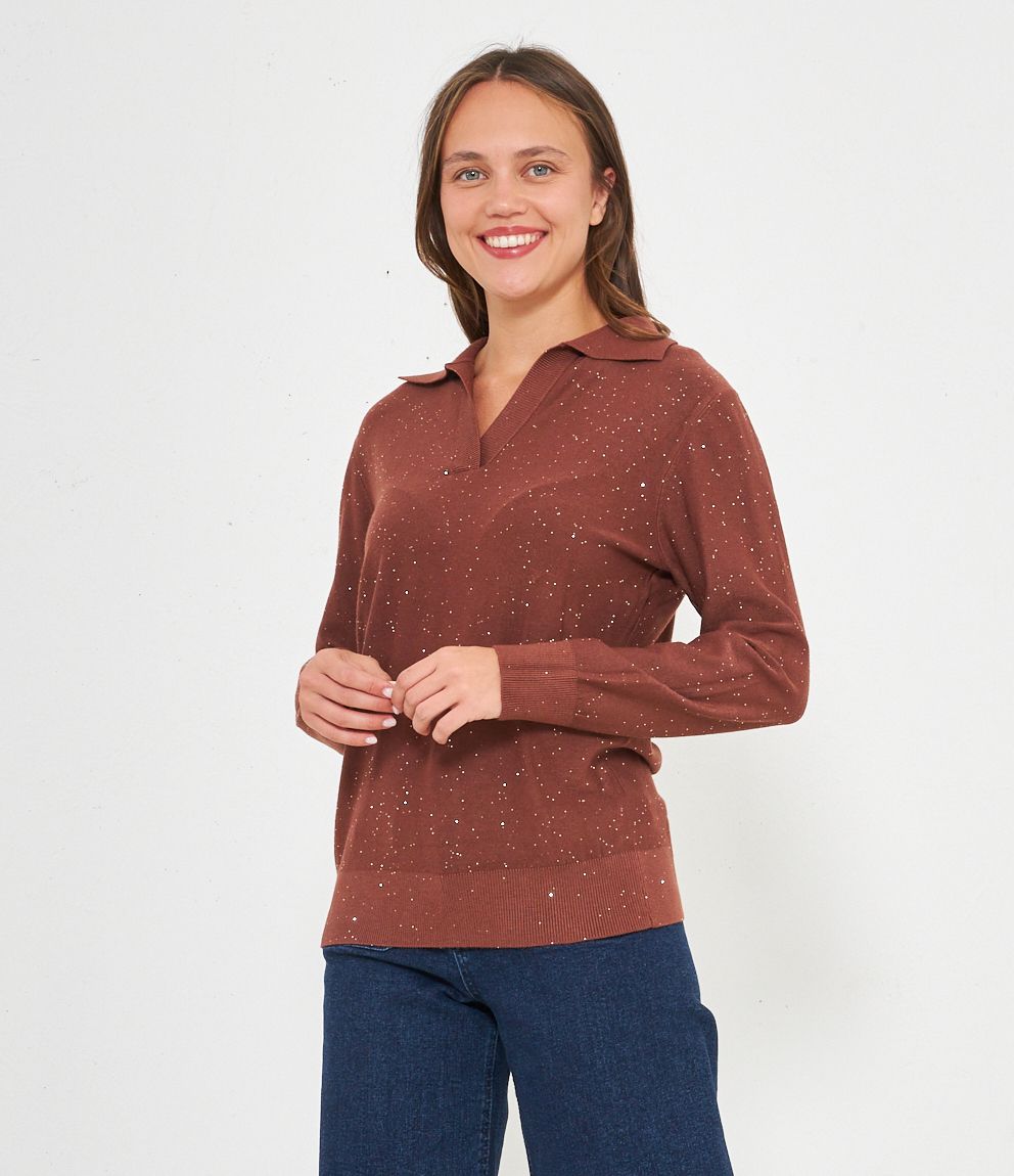 Maglia lurex con colletto, modello comfy.