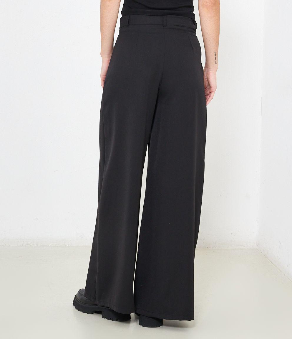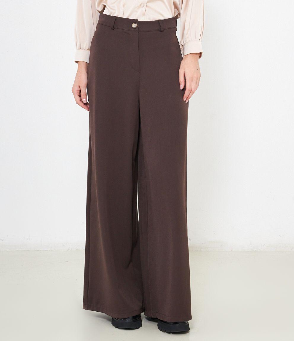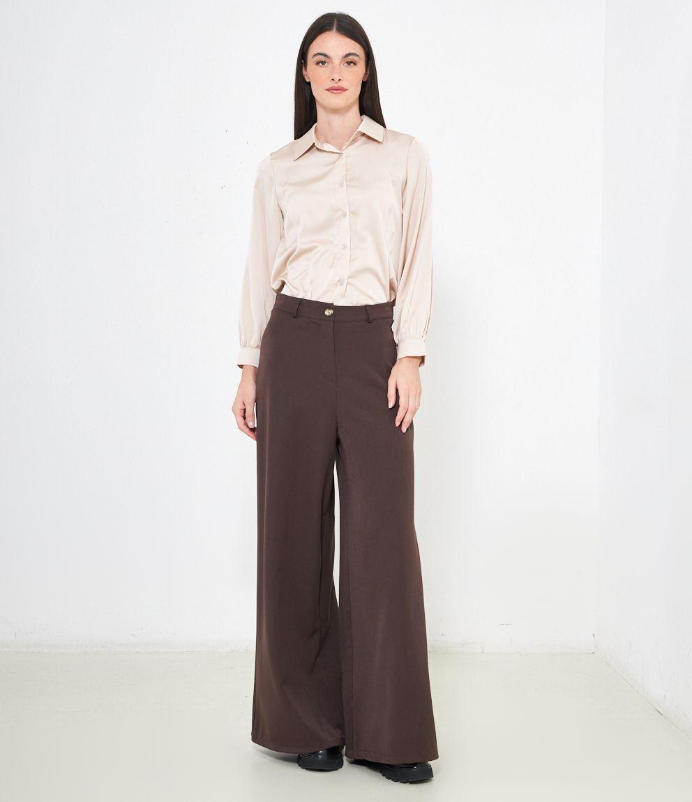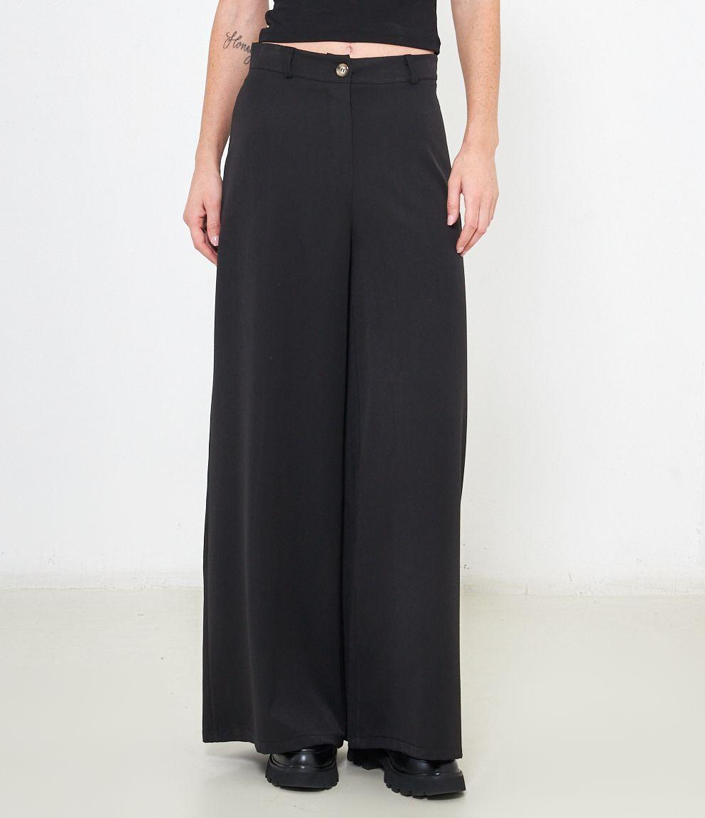 Pantaloni a gamba larga, chiusura con zip e bottone e tasche laterali.