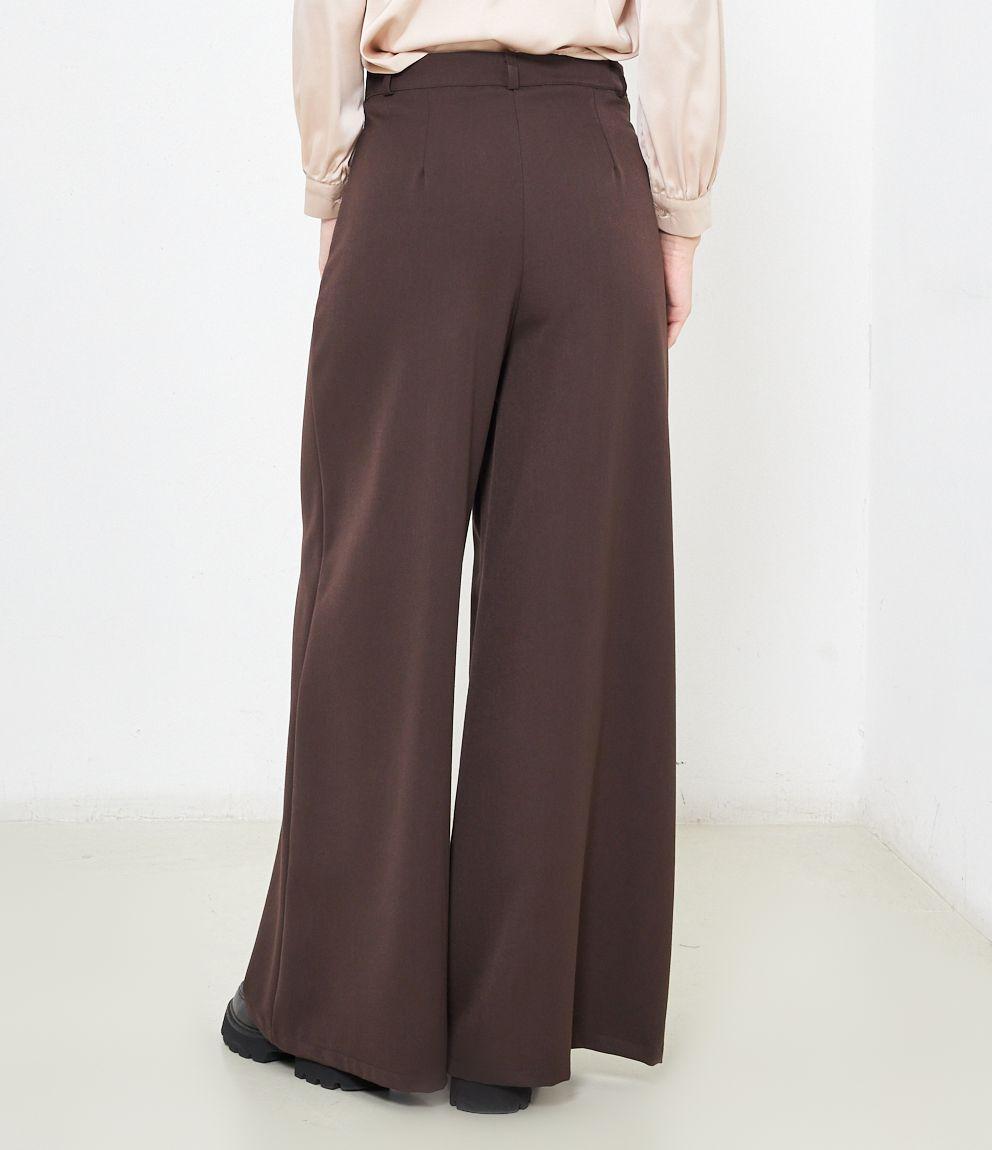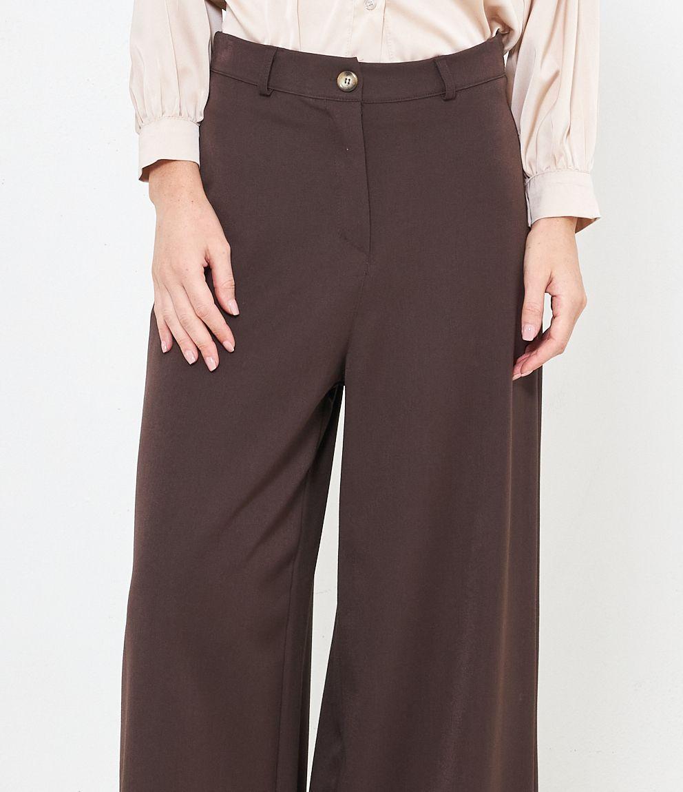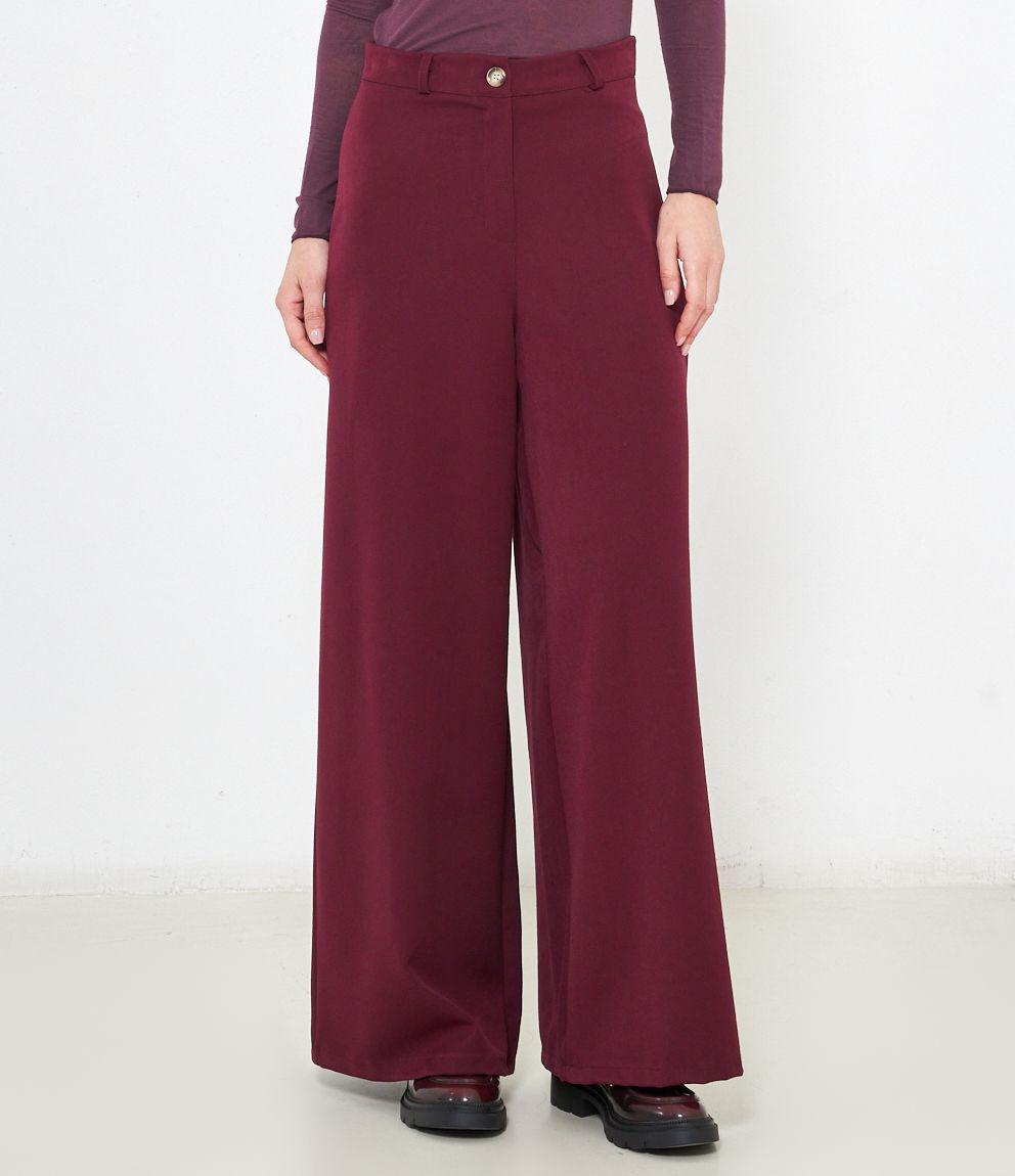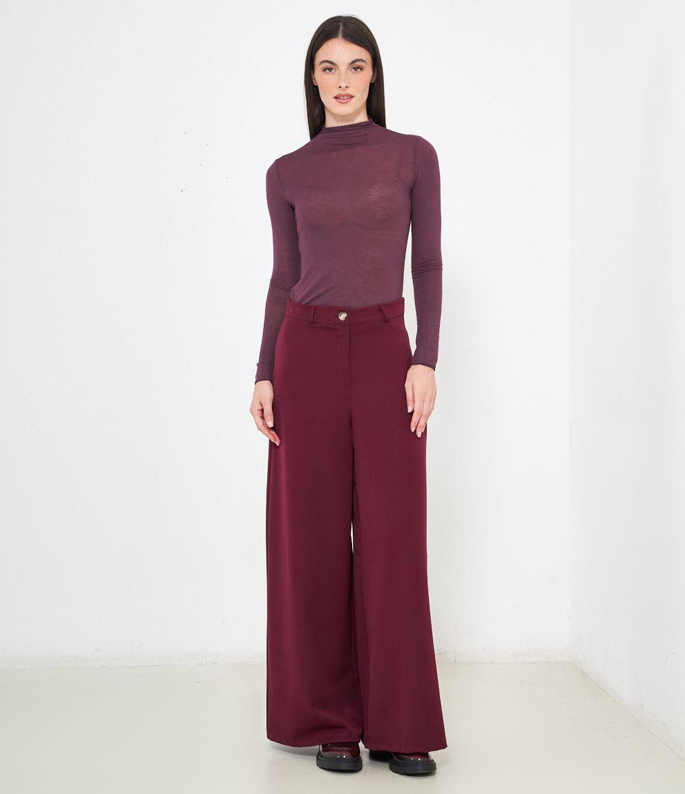 Pantaloni a gamba larga, chiusura con zip e bottone e tasche laterali.